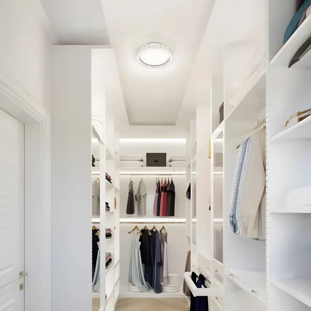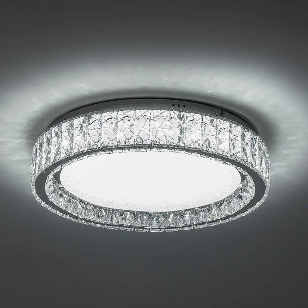 Real K9 crystal surround the low profile ceiling light, allowing light to through the clear beveled crystal, refracting dazzling shadow; inside the acrylic lampshade, glitter emits charming halo of bling; combined with polished stainless steel base and circular mirror stainless, the entire ceiling fixture sparkles like diamond in the sky—bright and elegant—making it the most attractive decoration in the home, immersing in the clean, modern ceiling fixture
