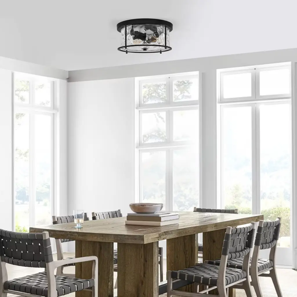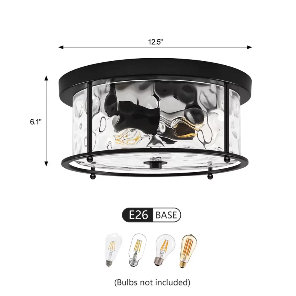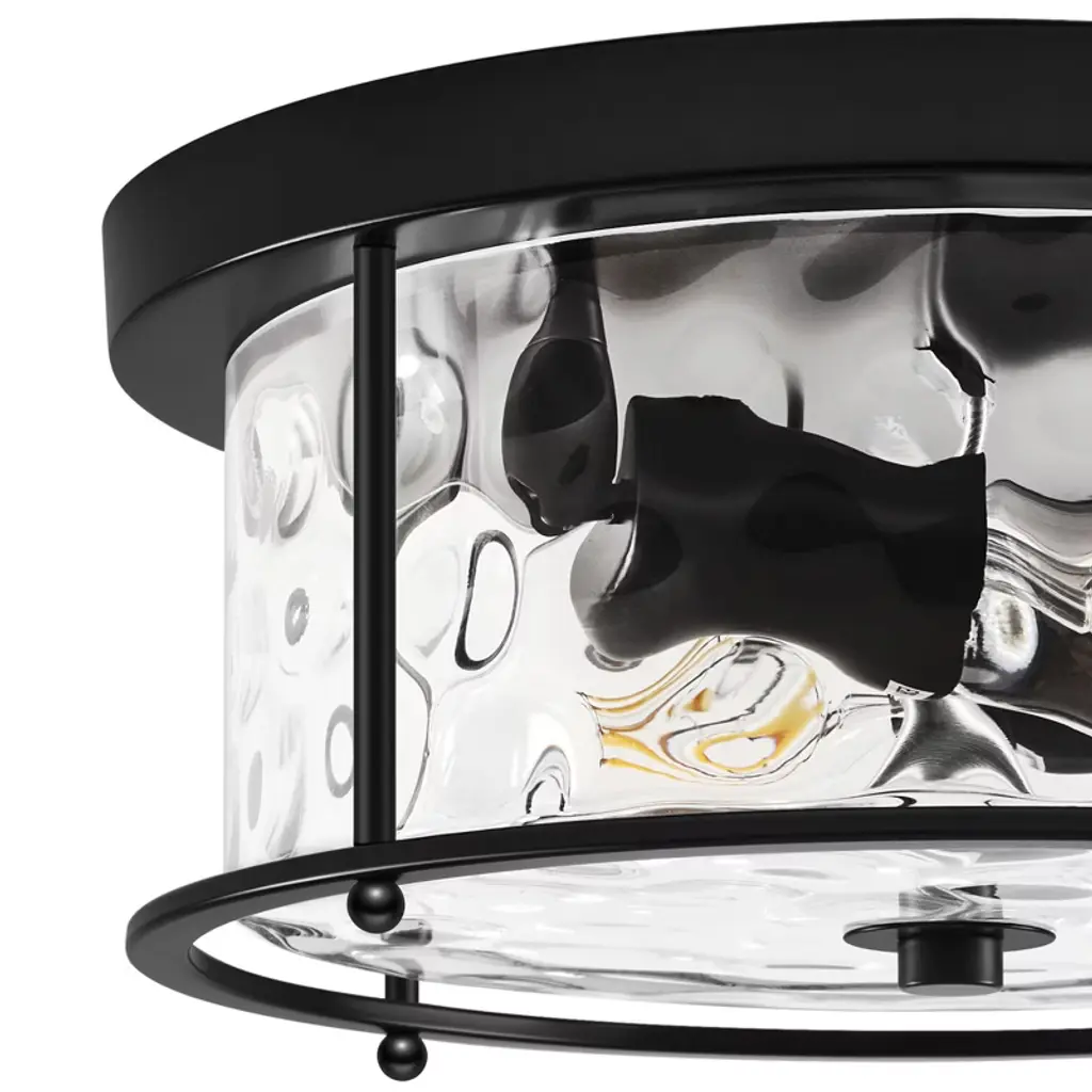 Lamqee Flush Mount Ceiling Light Black With Clear Hammered Glass Industrial 2-lights Farmhouse Close To Ceiling Light Fixtures