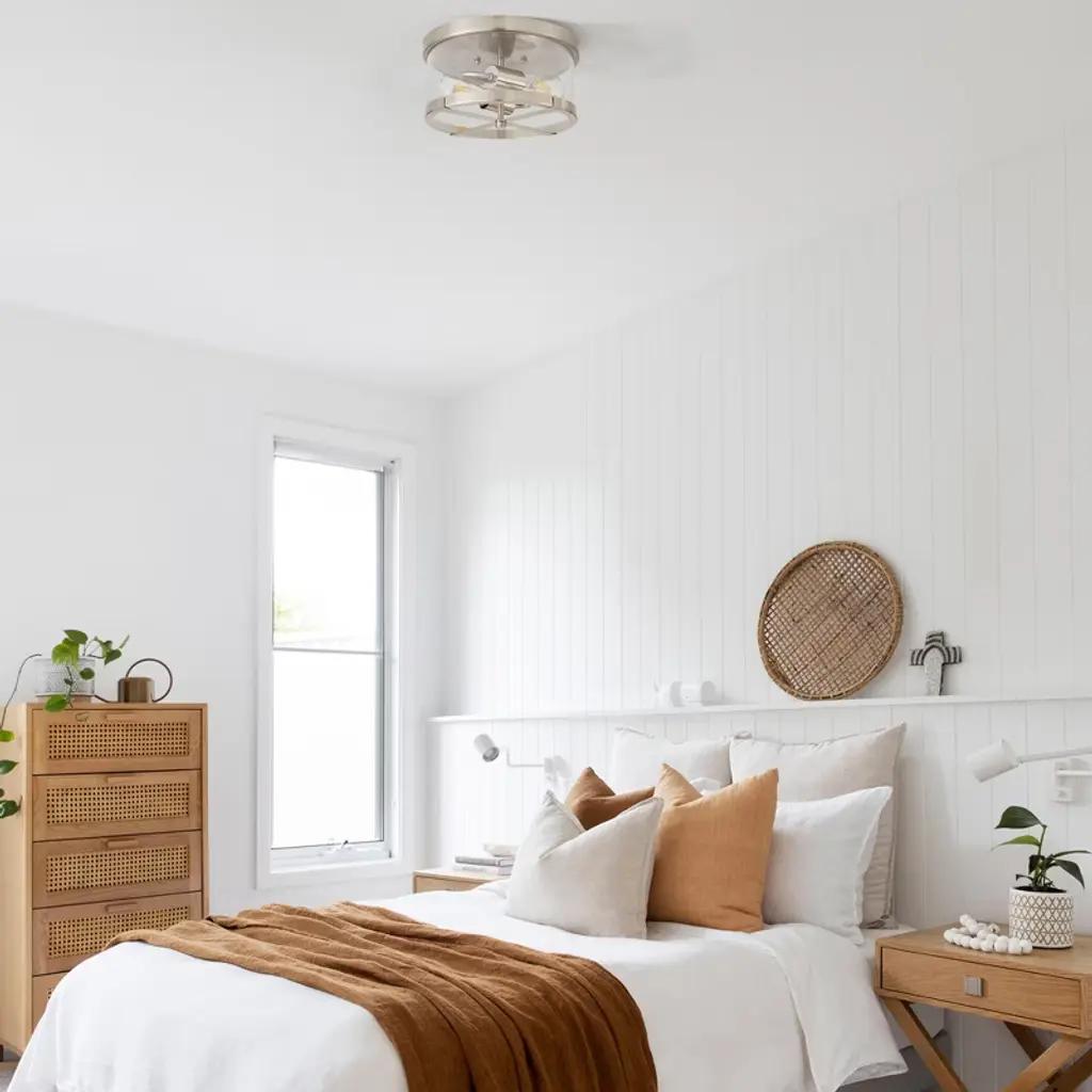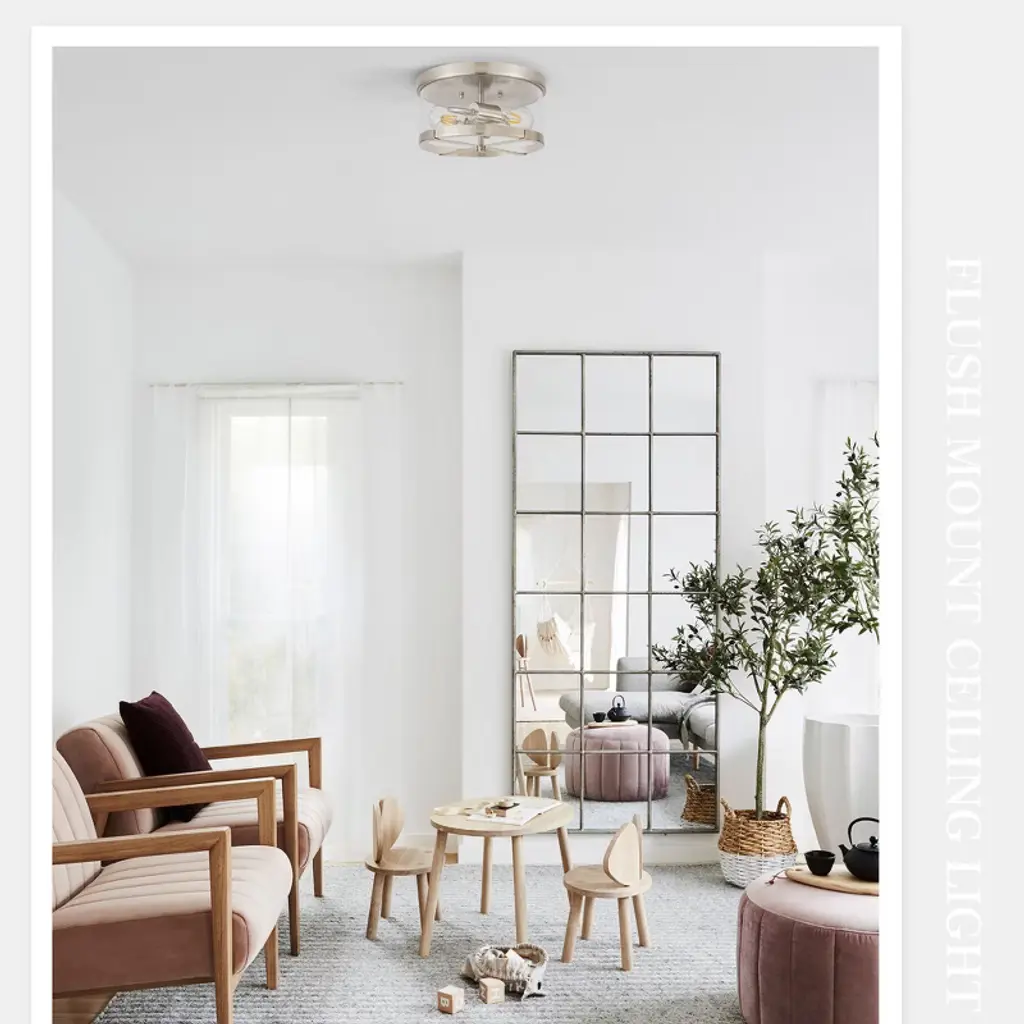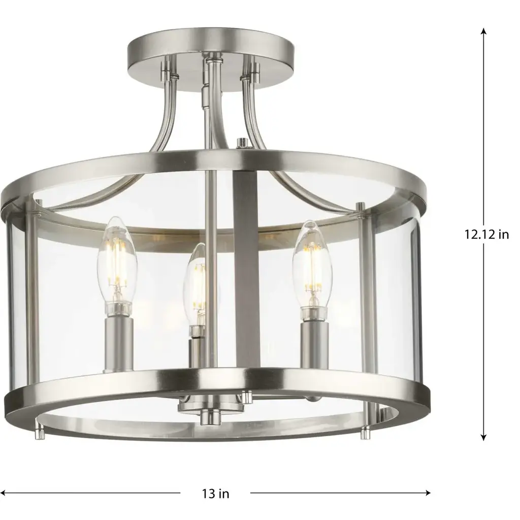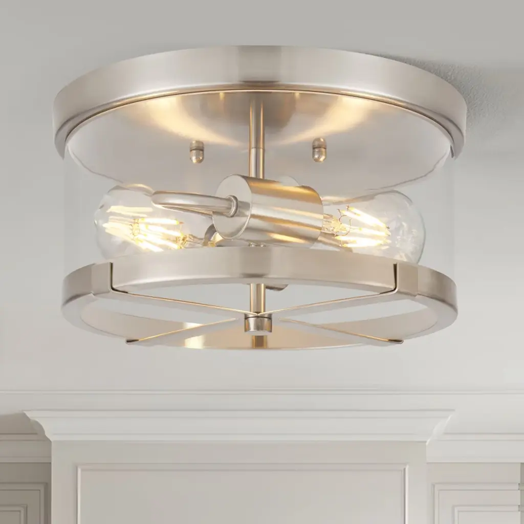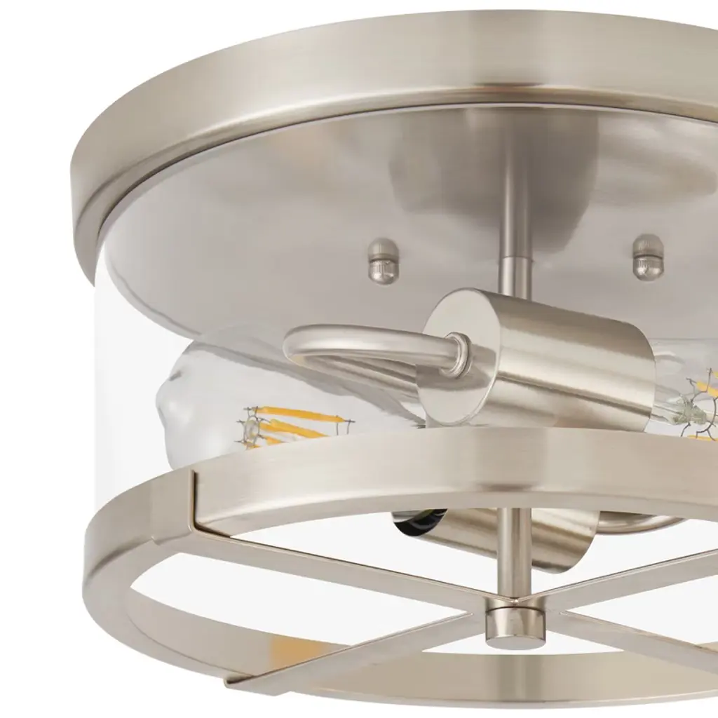Lamqee Flush Mount Ceiling Light Nickel With Clear Glass Industrial 2-lights Farmhouse Close To Ceiling Light Fixtures Drum Lights