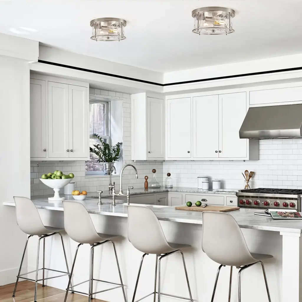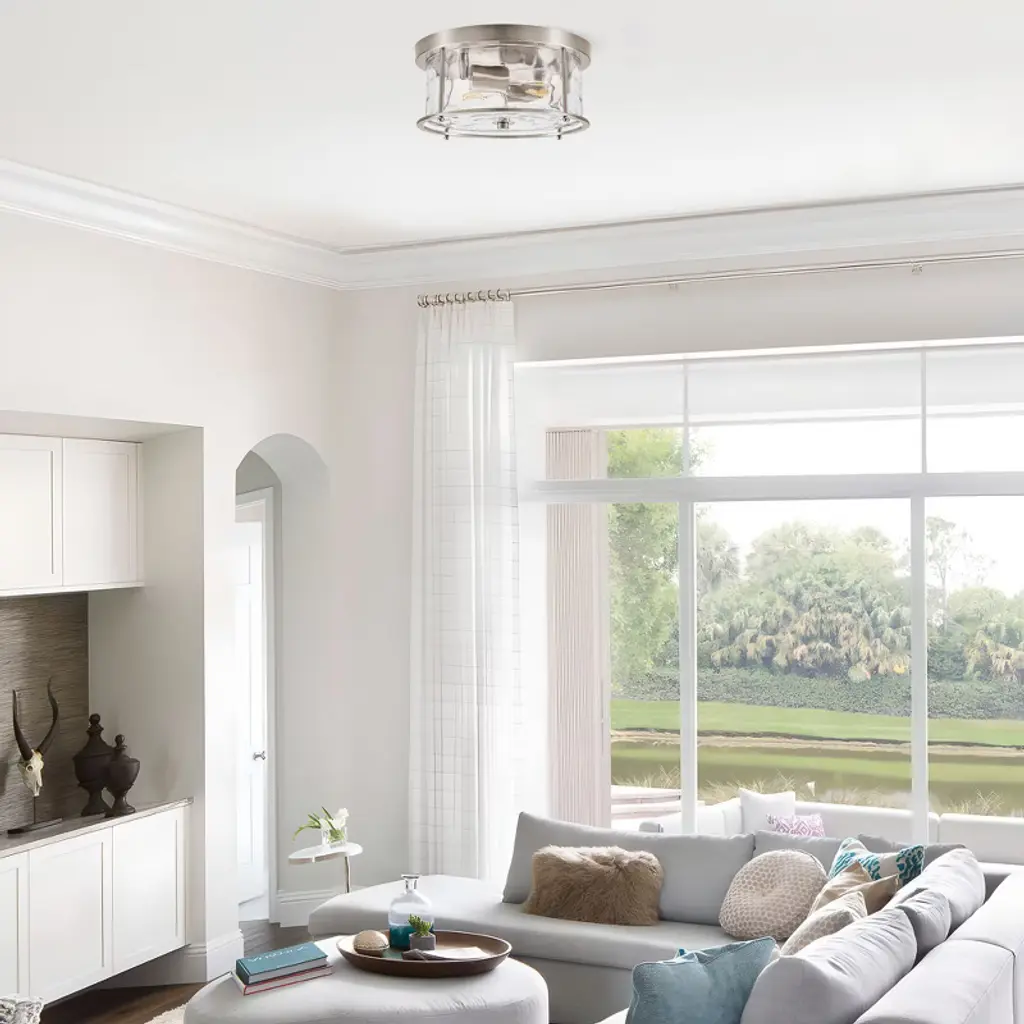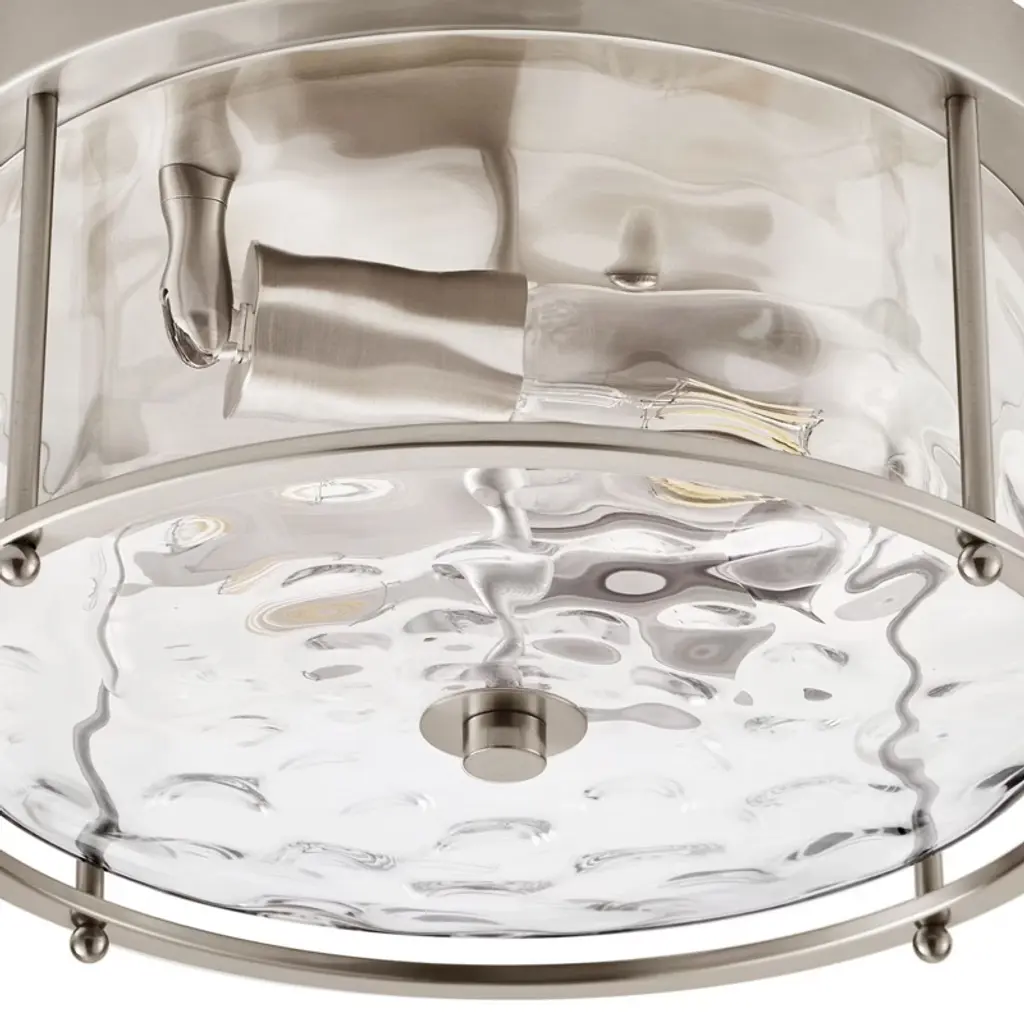 Lamqee Flush Mount Ceiling Light Satin Nickel With Clear Hammered Glass Industrial 2-lights Farmhouse Close To Ceiling Light Fixtures
