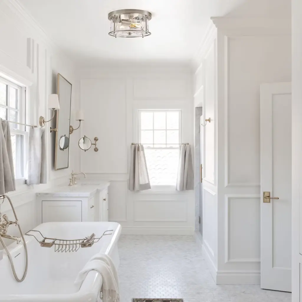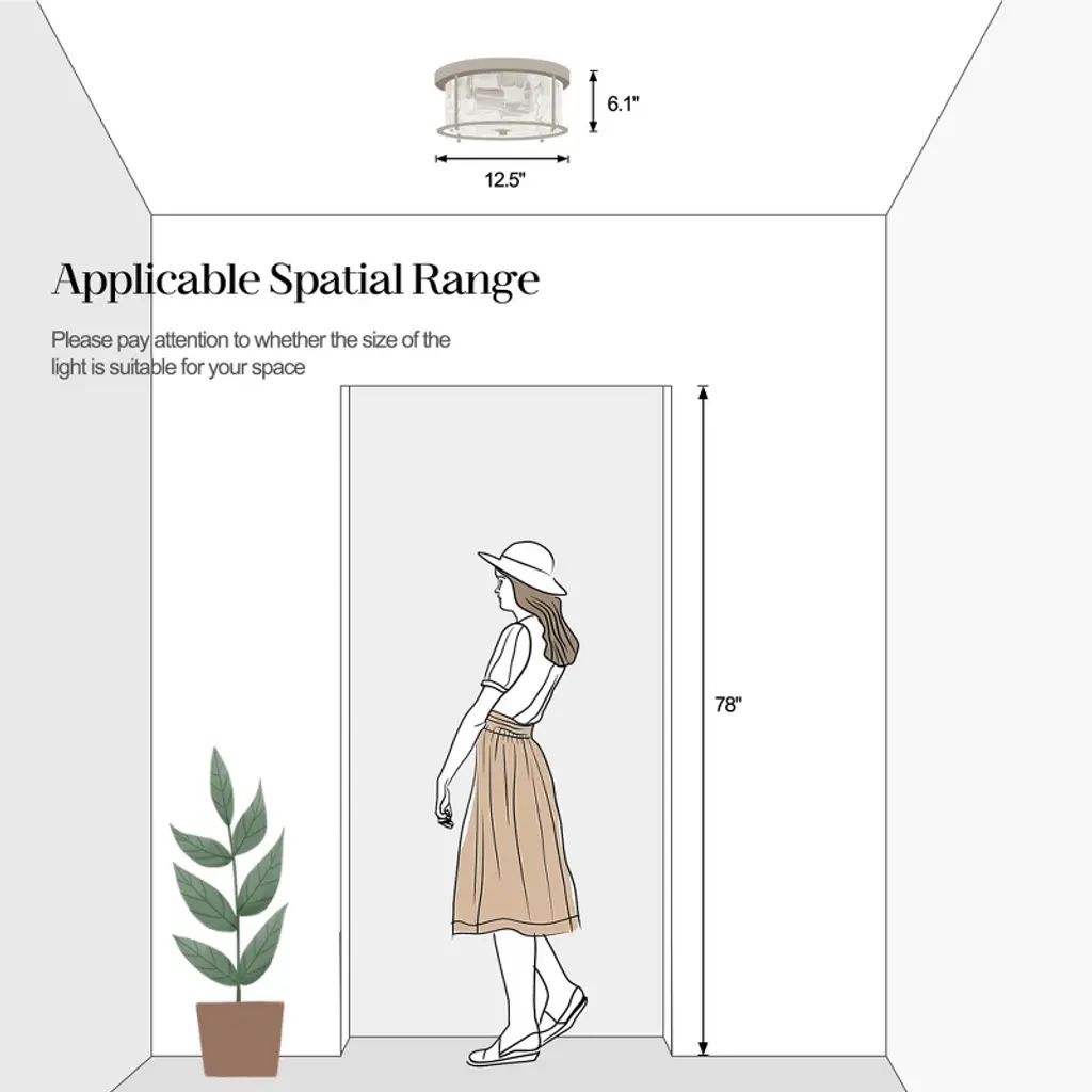 LamQee flush mount ceiling light is made of clear hammered glass with a delicate outer metal frame; and they have different colors such as black, brushed gold, brushed nickel and rustic white, to adapt variety of home styles such as modern, farmhouse, simple and industrial; the bulb is 2-lights, the light passes through the hammered glass, the reflection leaves on the wall and the starburst pattern forms on the ceiling, creating bright, unique, elegant and warm effect