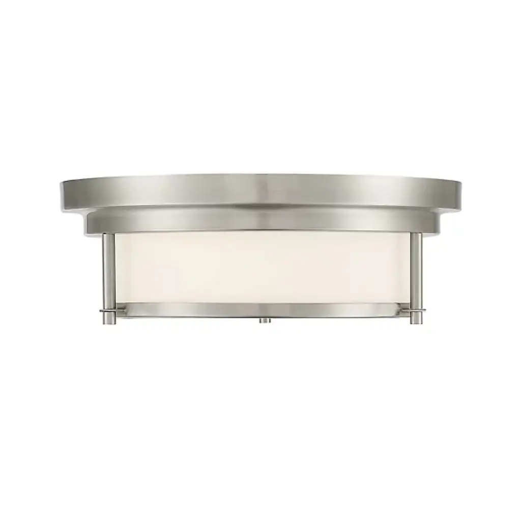 With a simple and versatile design, the Langford Flushmount from Alder & Ore brings bright light and sleek design to the home. This adaptable light fixture is suitable for a wide range of interior décor styles and features a circular metal frame that anchors the piece to the ceiling. A set of short bars drop to surround a rounded frosted shade held at the center of the piece. Its warm light blankets a room with even ambient light.