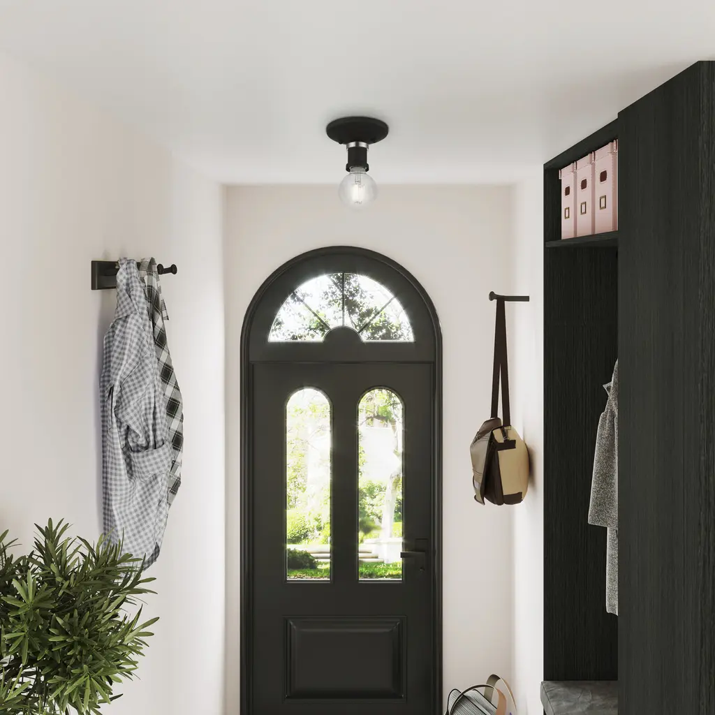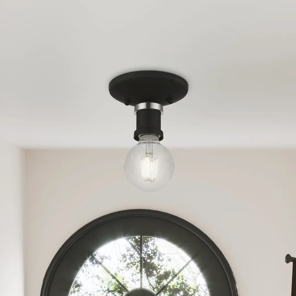 1 Light Black with Brushed Nickel Accents Single Flush Mount