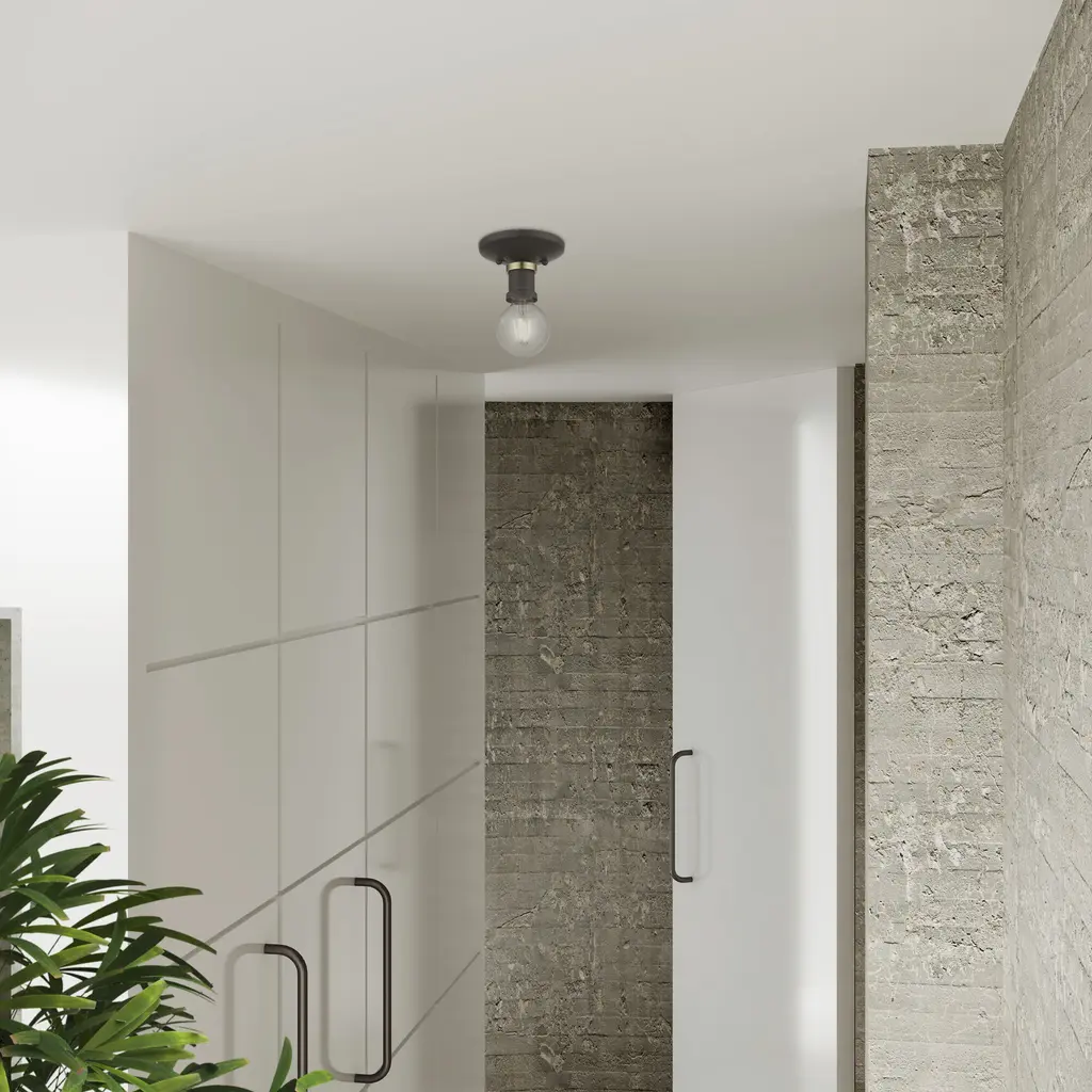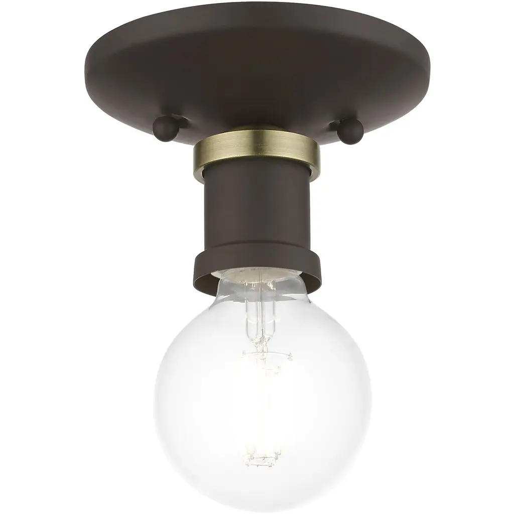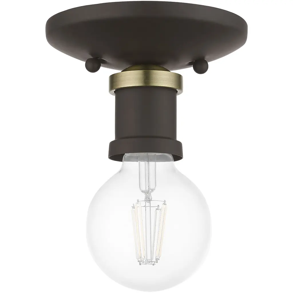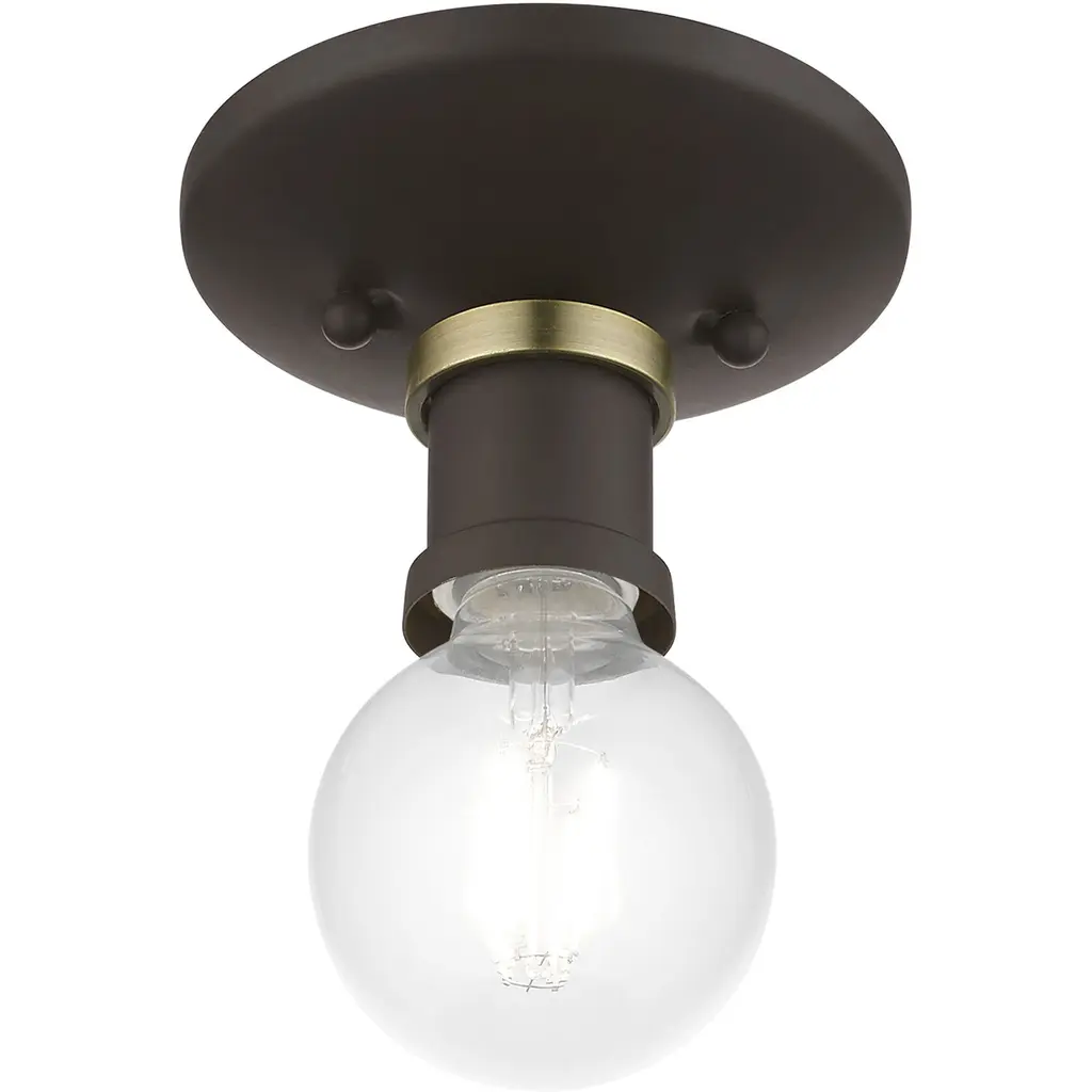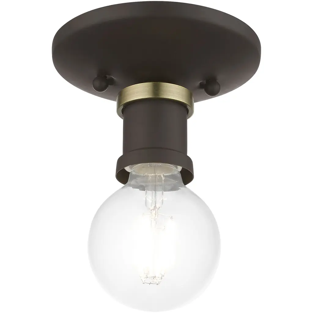 Lansdale 1 Light 5 Inch Bronze With Antique Brass Accents Single Flush Mount Ceiling Light, Single
