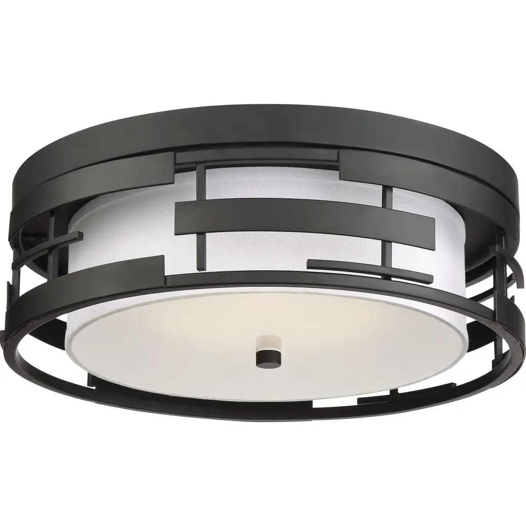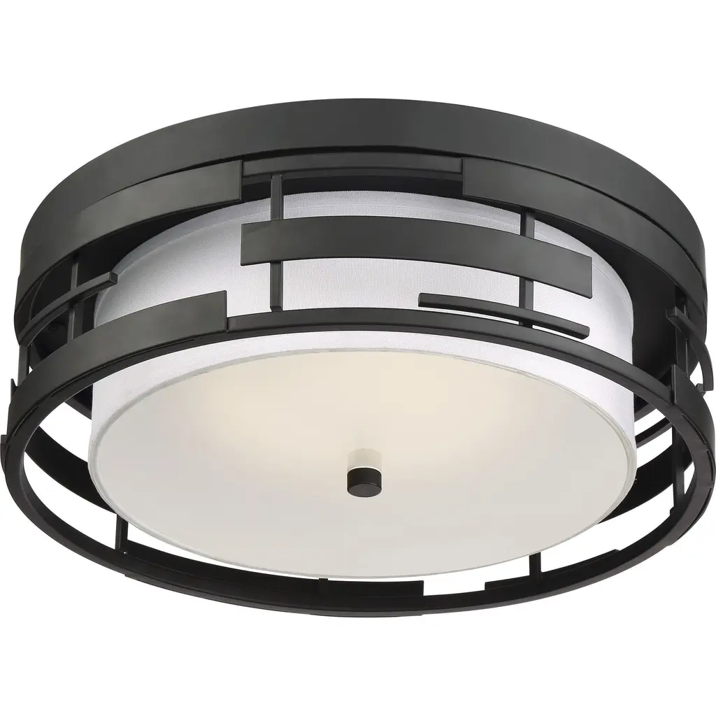 Lansing; 3 Light; Flush with White Fabric Shade and Opal Diffuser