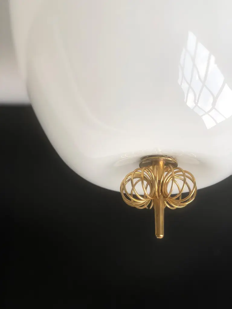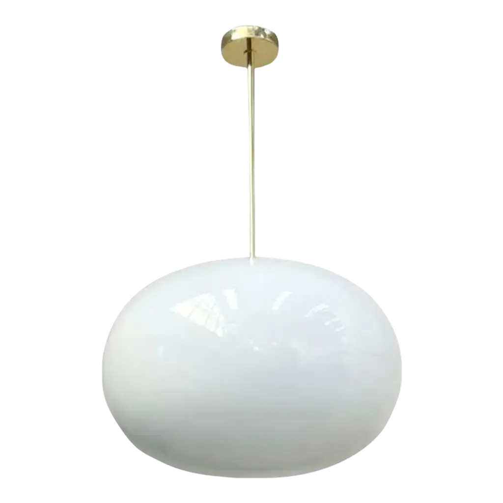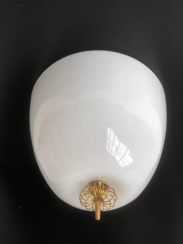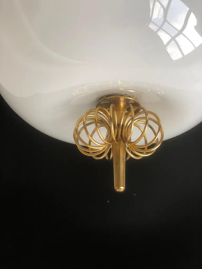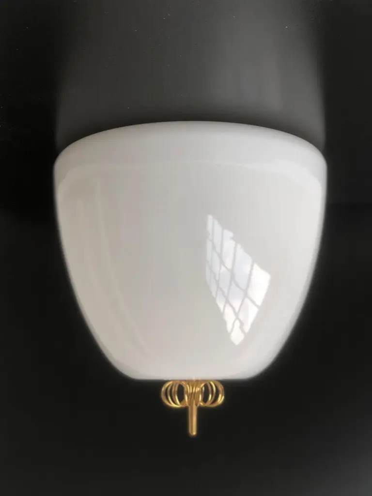Flush mount lamp designed by Gunnel Nyman for Idman, Finland. Circa 1950th. Opaline glass with brass decor. Stamped "Idman". Rewiring available upon request.