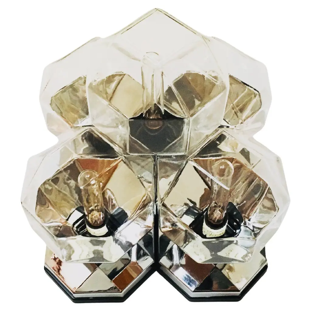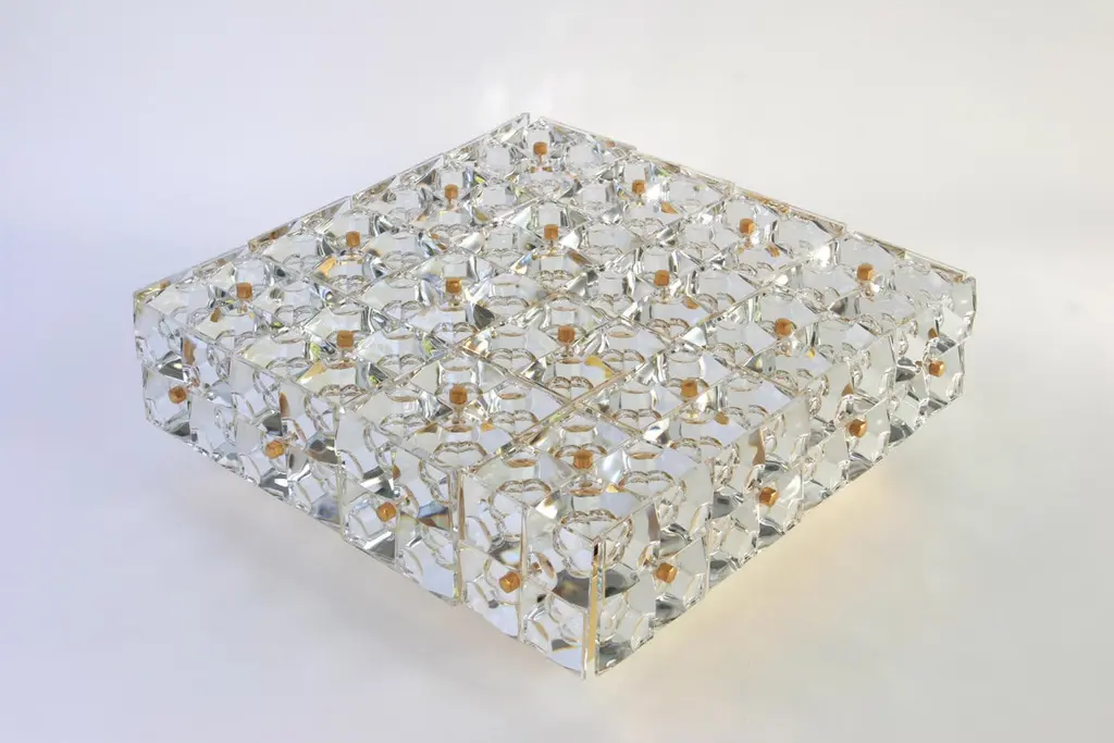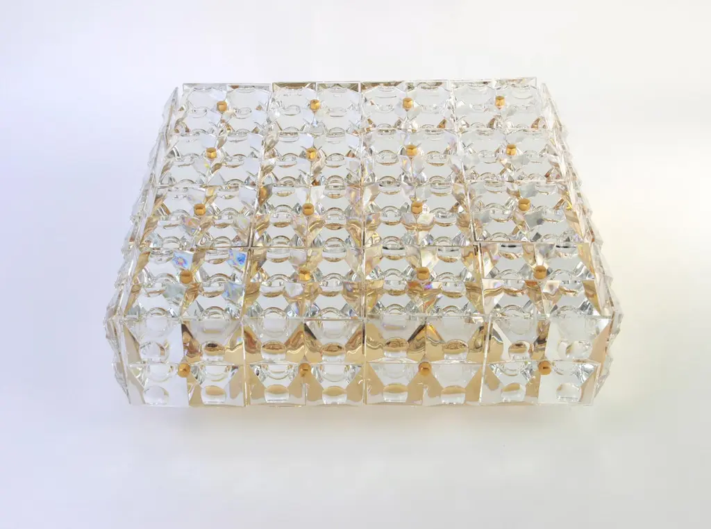 Large Flushmount Faceted Crystal Light Fixture By Kinkeldey, Germany, 1970s