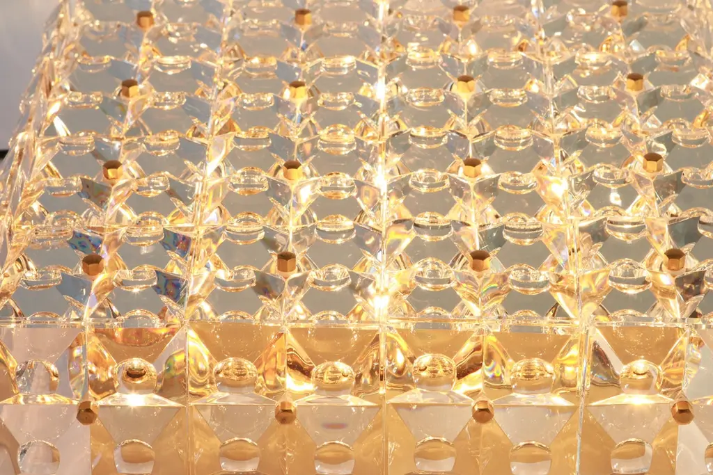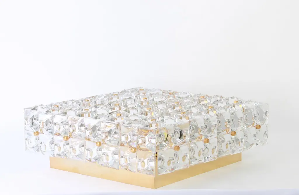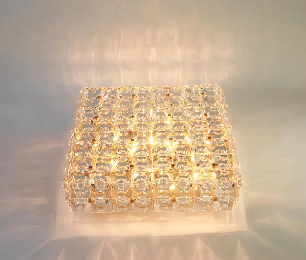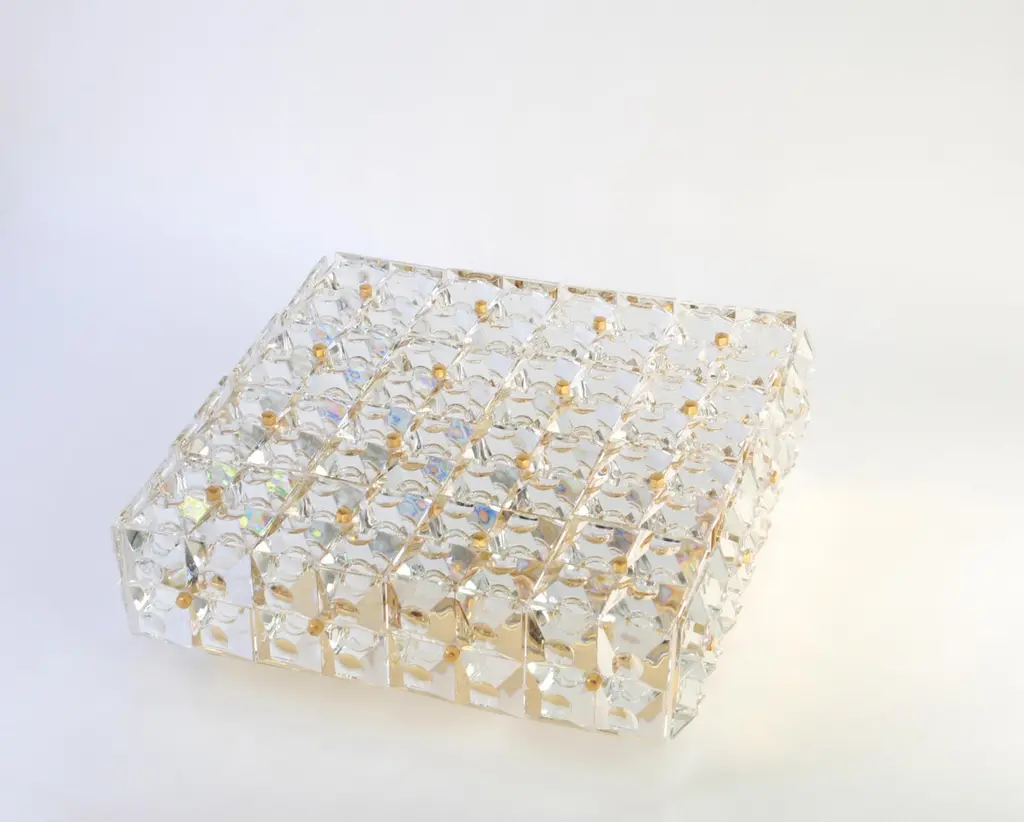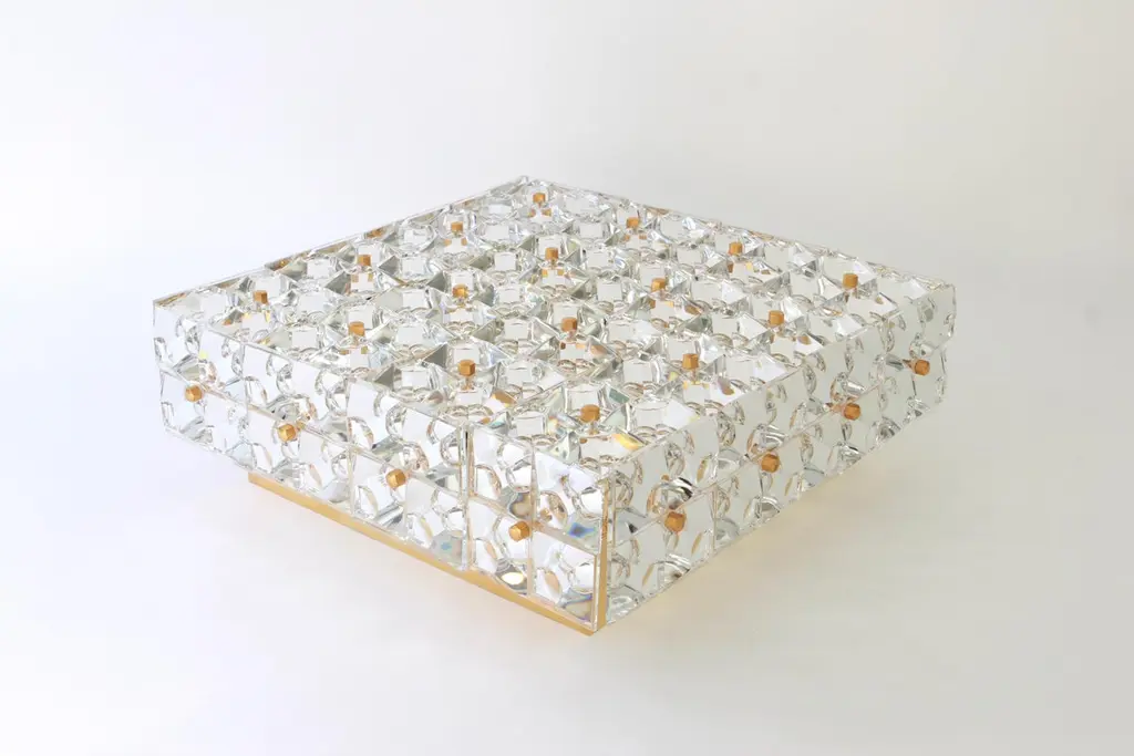 Large Flushmount Faceted Crystal Light Fixture By Kinkeldey, Germany, 1970s