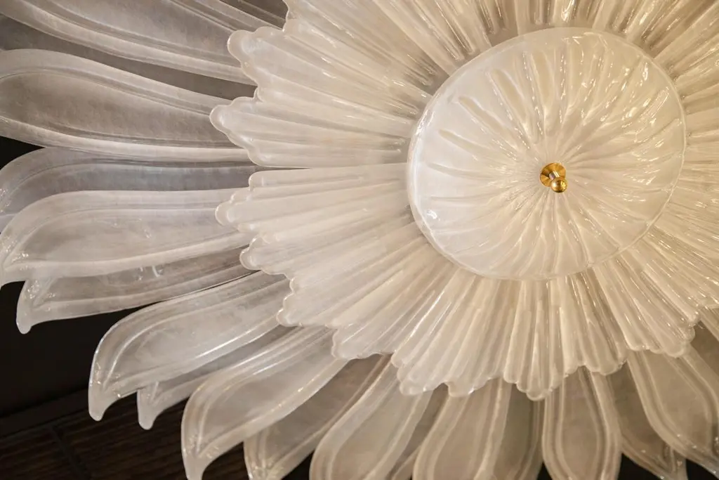 Large Murano Glass Flush Mount Flower Shaped Chandelier, In Stock