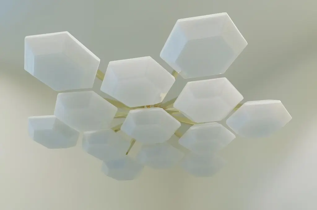 Large Murano Hexagonal Glass Flush Mount, 2 Available