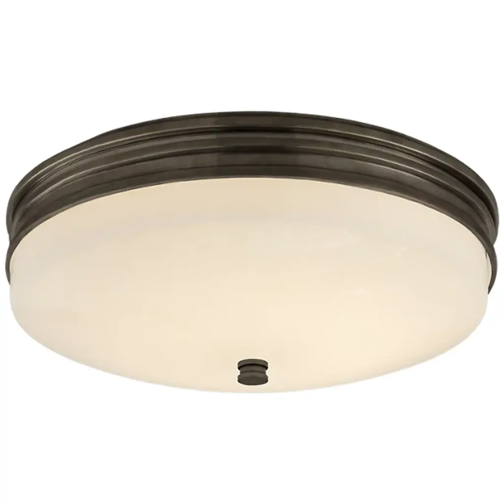 The modern and understated Launceton LED Flushmount was created by designer duo Chapman & Myers and presented by Visual Comfort Signature, formerly known as Visual Comfort,, a well-respected brand in the lighting world. It features contemporary details like polished nickel trim and a wide, low-profile white glass dome. Light diffuses from within the shade to provide a pleasant glow of generous ambient illumination. This is a fixture that would fit seamlessly into a multitude of interior spaces while adding a subtle hint of sophistication.
