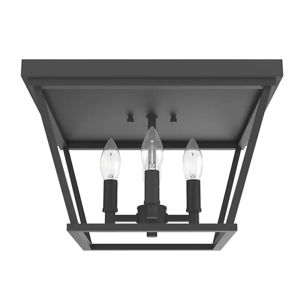 Introduce a sleek and appealing silhouette to the décor of your modern home with the Laurel Ridge Flushmount from Hunter Fans. Connecting directly with the ceiling, this piece is made of smooth metal throughout. A set of thin lines angle inward, forming an open, geometric shape that houses a set of candelabra-style bulbs. The light from the four crisp bulbs is bright and even, flowing into the room with ease.