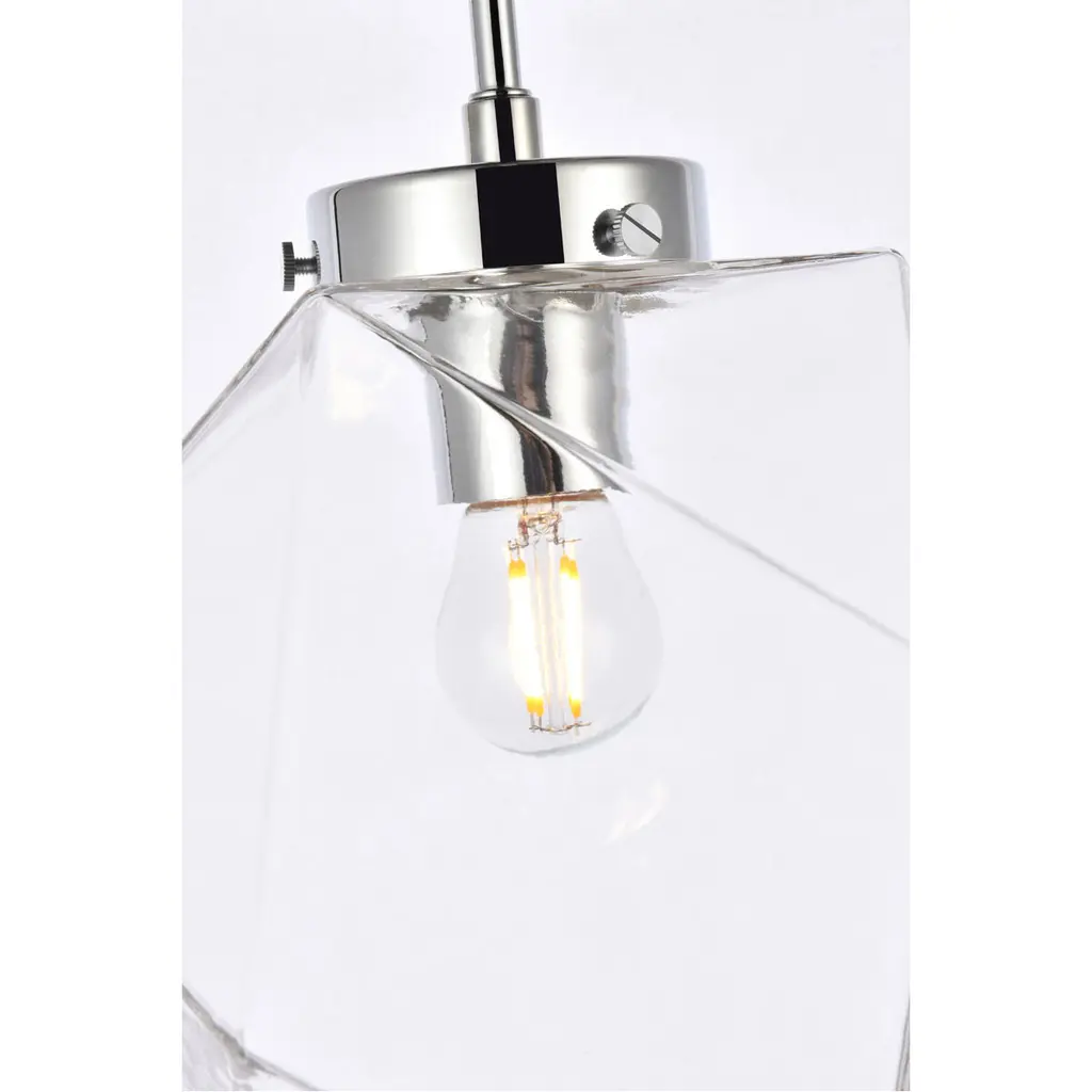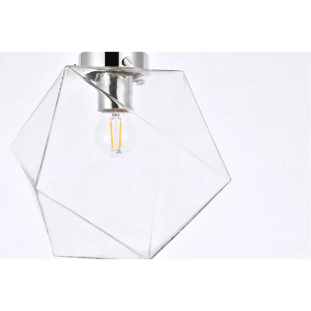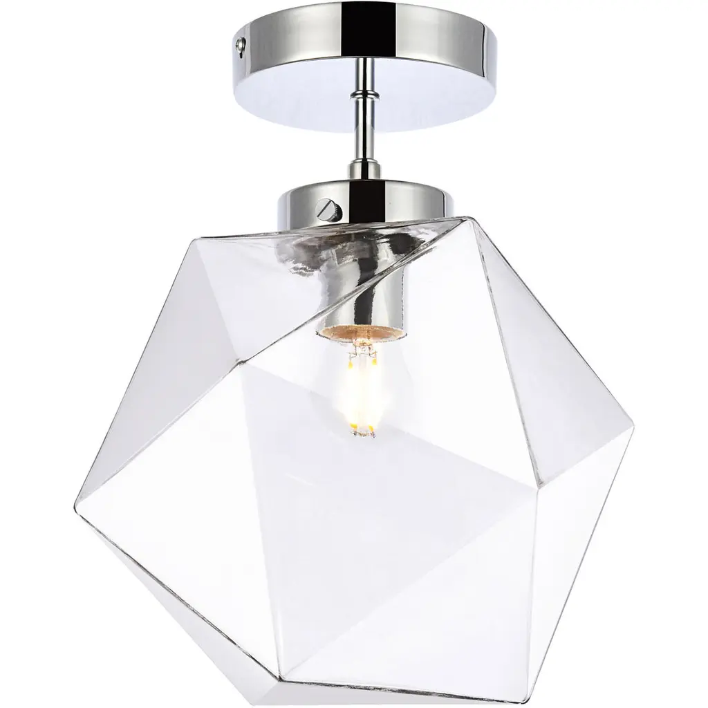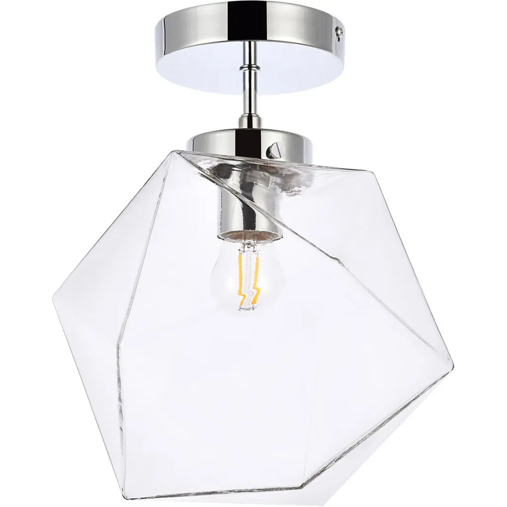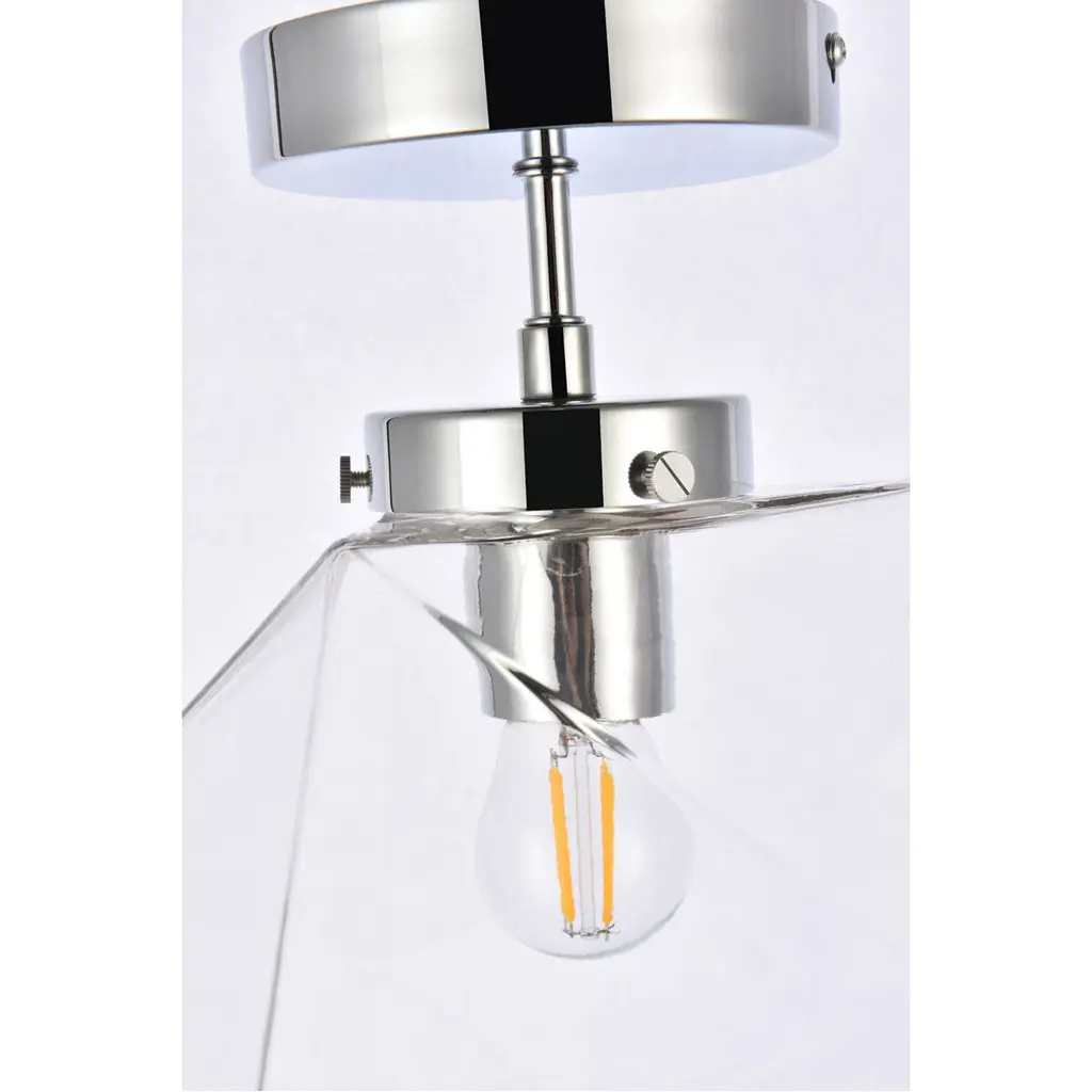 The Lawrence Collection ceiling lamp is the perfect choice if you are looking to add visual interest with functional illumination into the room. The beauty lies in its unique shape and colors. It is available in black, brass, or chrome finish with either a clear or white glass shade. This product is dimmable and requires one E26 lamp. Light bulbs not included.