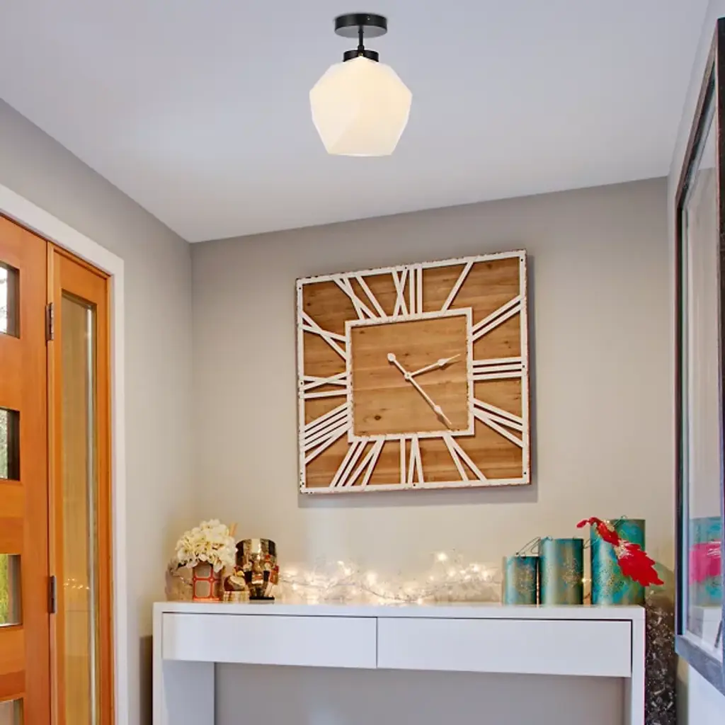 The Lawrence Flushmount from Elegant Lighting is a geometric gem that challenges traditional lighting norms. Its multi-faceted glass shade, resembling a precisely cut diamond, creates a kaleidoscope of light and shadow. In entryways, hallways, or intimate dining nooks, this fixture becomes a conversation piece, inviting the eye upward and rewarding it with a play of light that shifts with every angle. The Lawrence Flushmount is an architectural element that adds depth and intrigue to often overlooked ceiling planes.