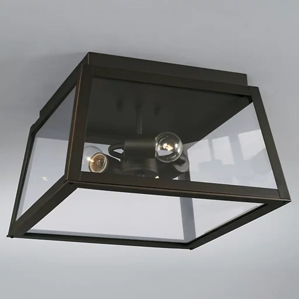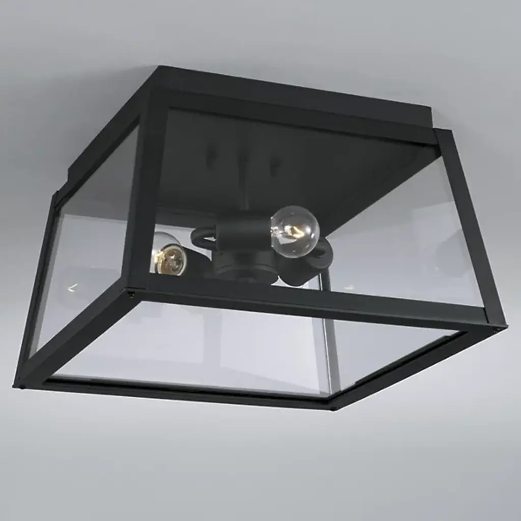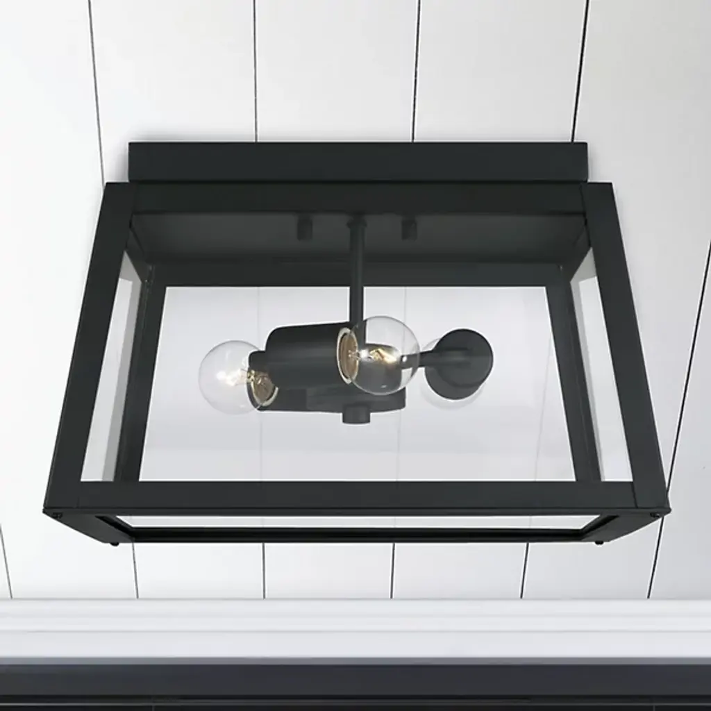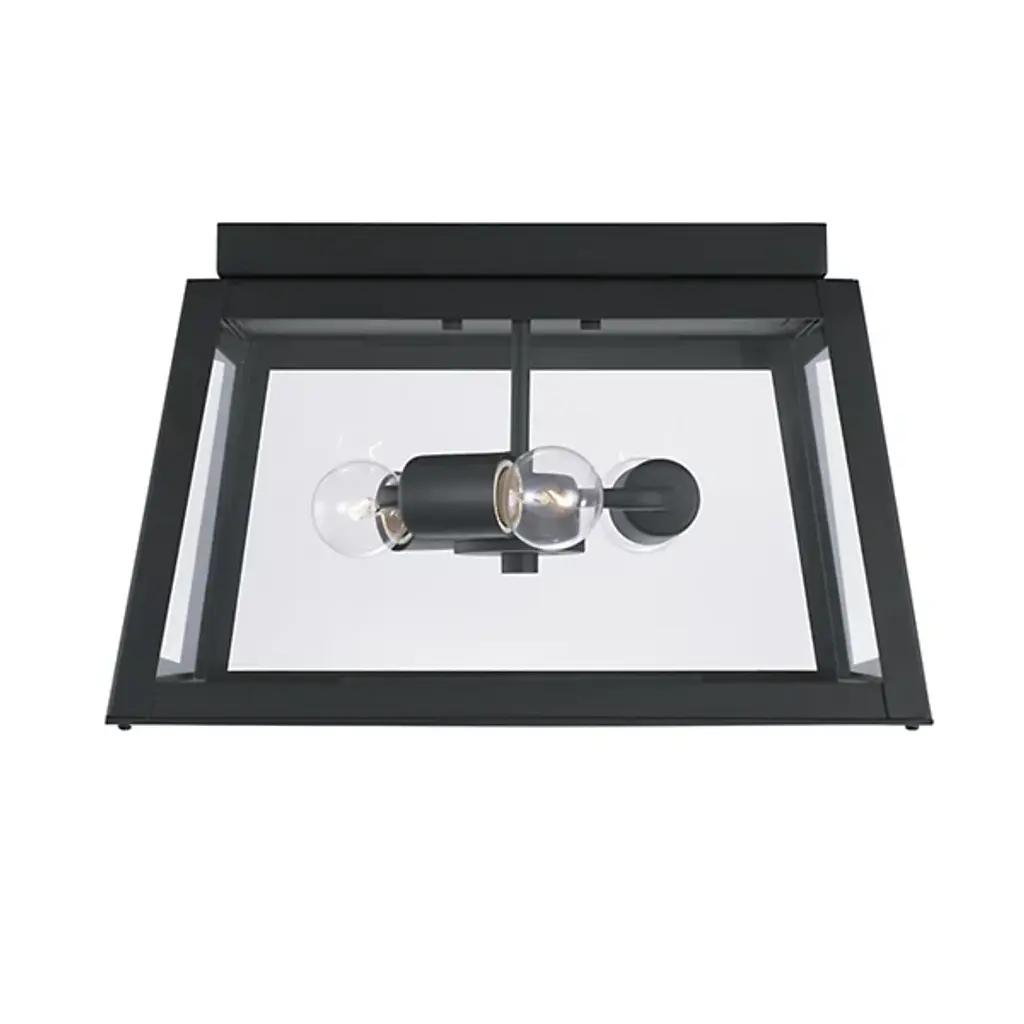 Bring a new layer of light to the outside of your modern home with the Leighton Outdoor Flushmount from Capital Lighting. Connecting directly with the ceiling, this piece is made of smooth metal throughout, showcasing an angular shade with panels of clear glass. The horizontal bulbs float at the center of the piece, on full display as they shine a bright and welcoming glow throughout the interior and into the surrounding space.