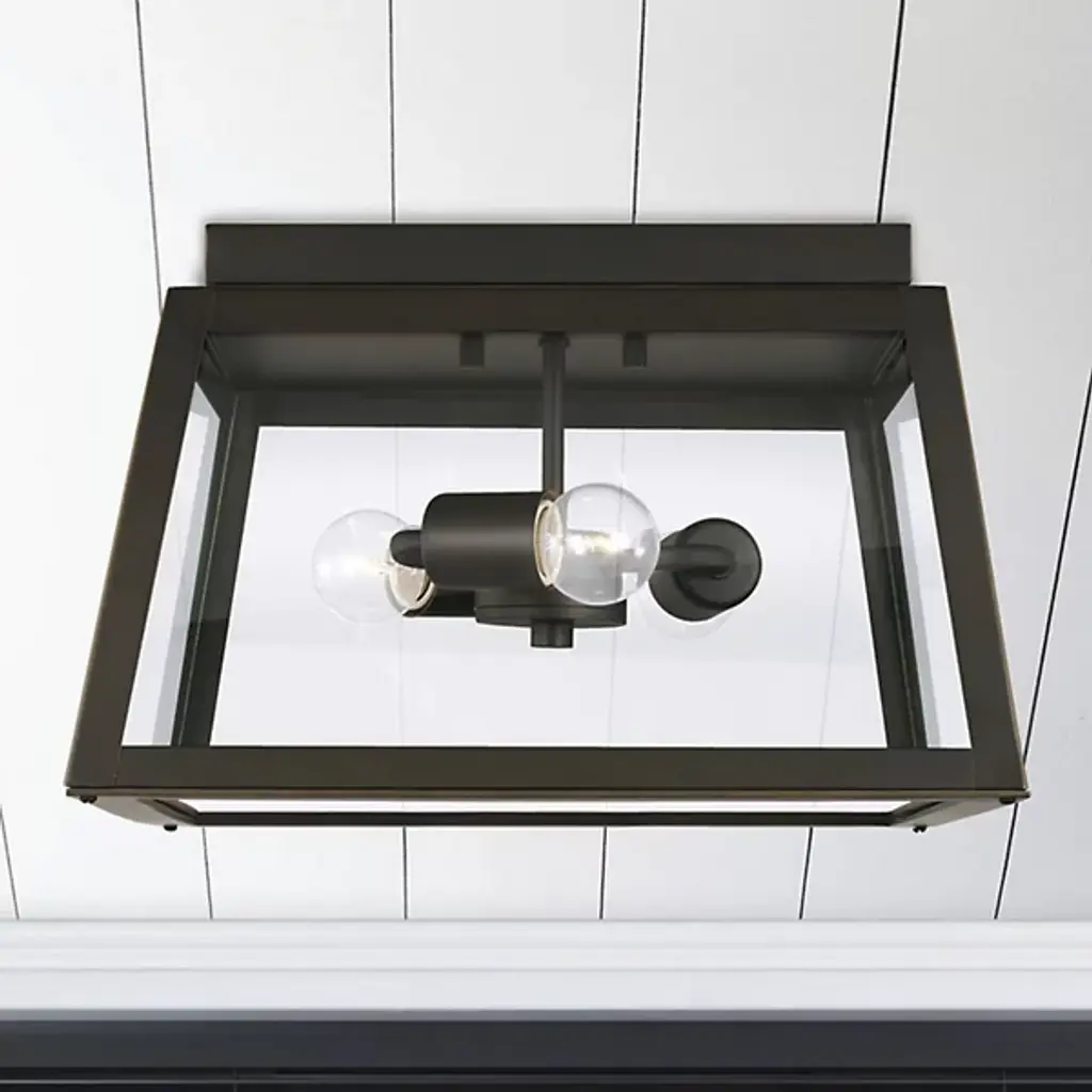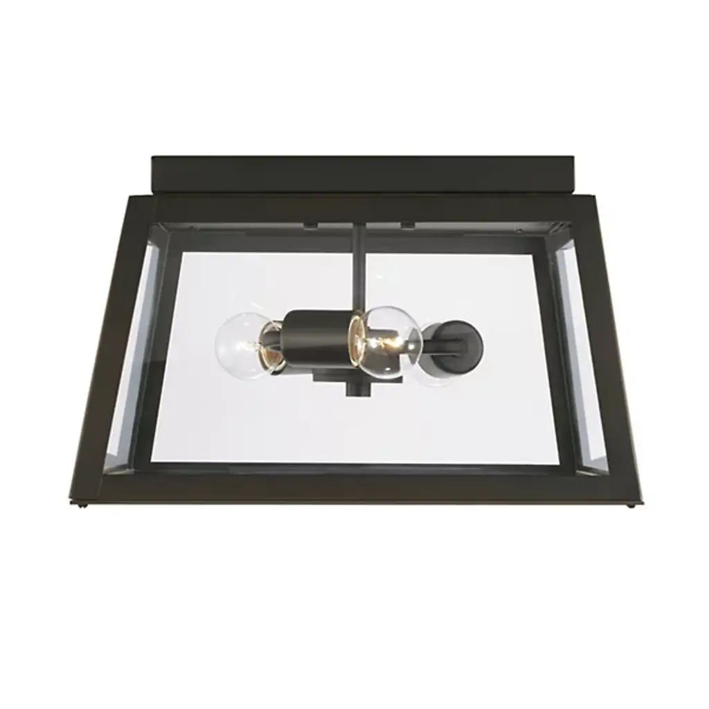 Bring a new layer of light to the outside of your modern home with the Leighton Outdoor Flushmount from Capital Lighting. Connecting directly with the ceiling, this piece is made of smooth metal throughout, showcasing an angular shade with panels of clear glass. The horizontal bulbs float at the center of the piece, on full display as they shine a bright and welcoming glow throughout the interior and into the surrounding space.