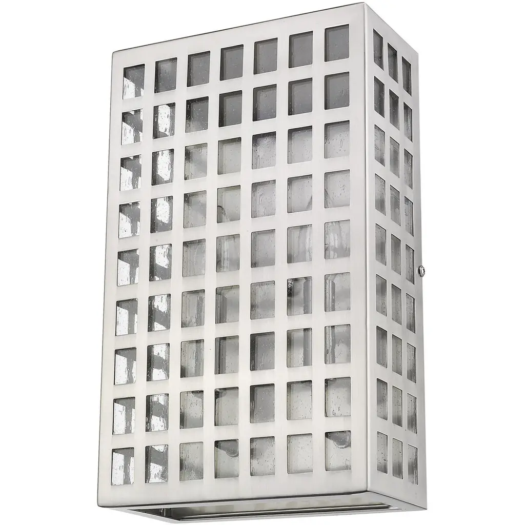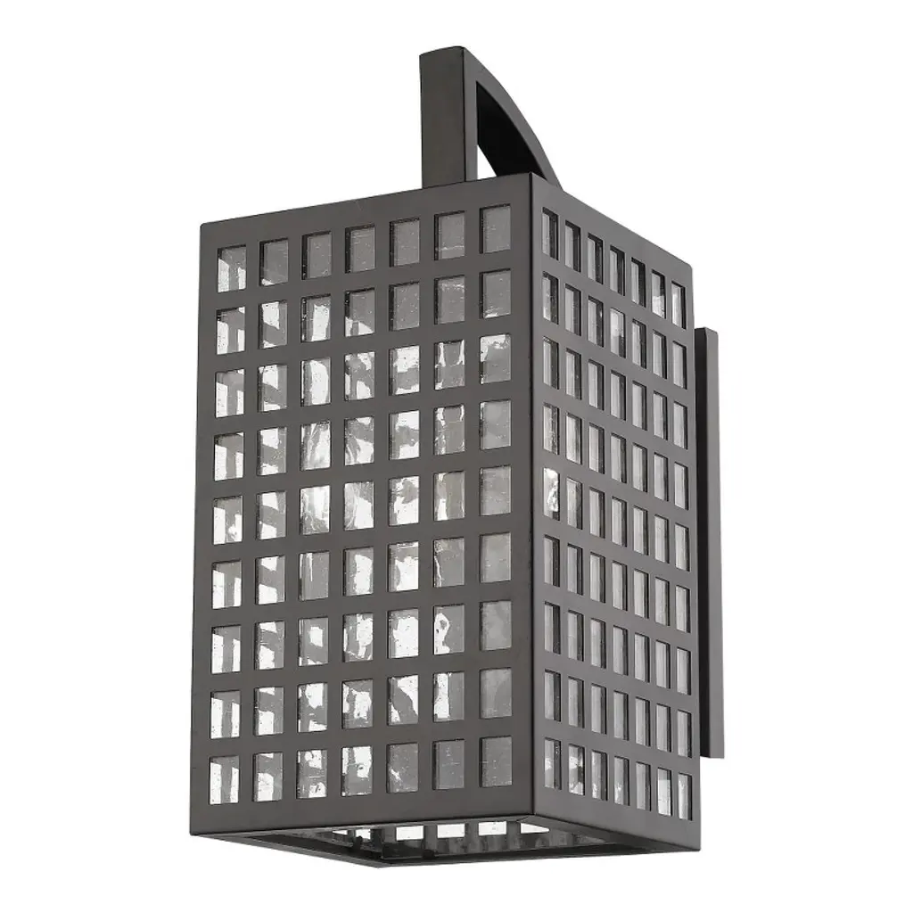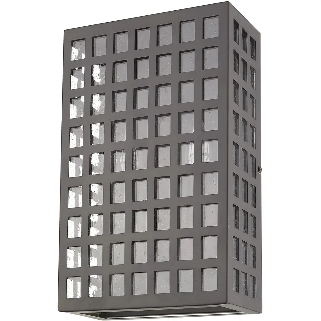 Though there are squares, Letzel is not square. A framework of steel in a continuous grid pattern combines with clear, seedy glass. Letzel is available in oil-rubbed bronze and satin nickel.