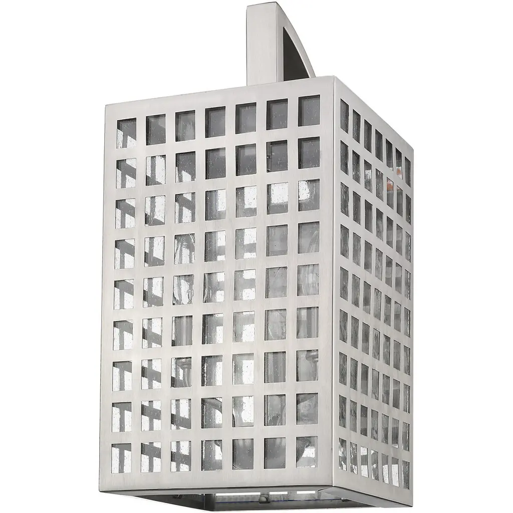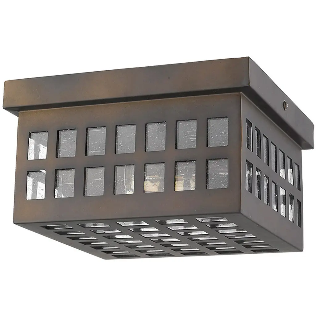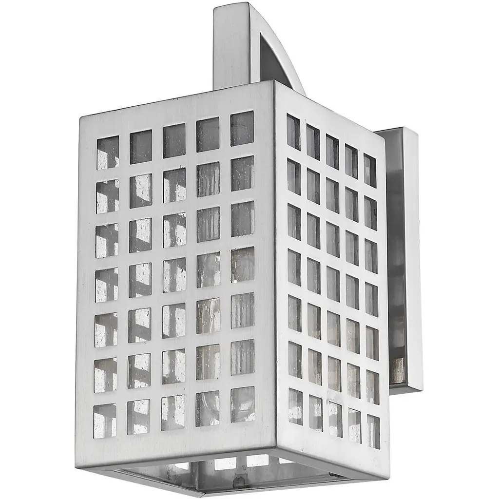 Though there are squares, Letzel is not square. A framework of steel in a continuous grid pattern combines with clear, seedy glass. Letzel is available in oil-rubbed bronze and satin nickel.