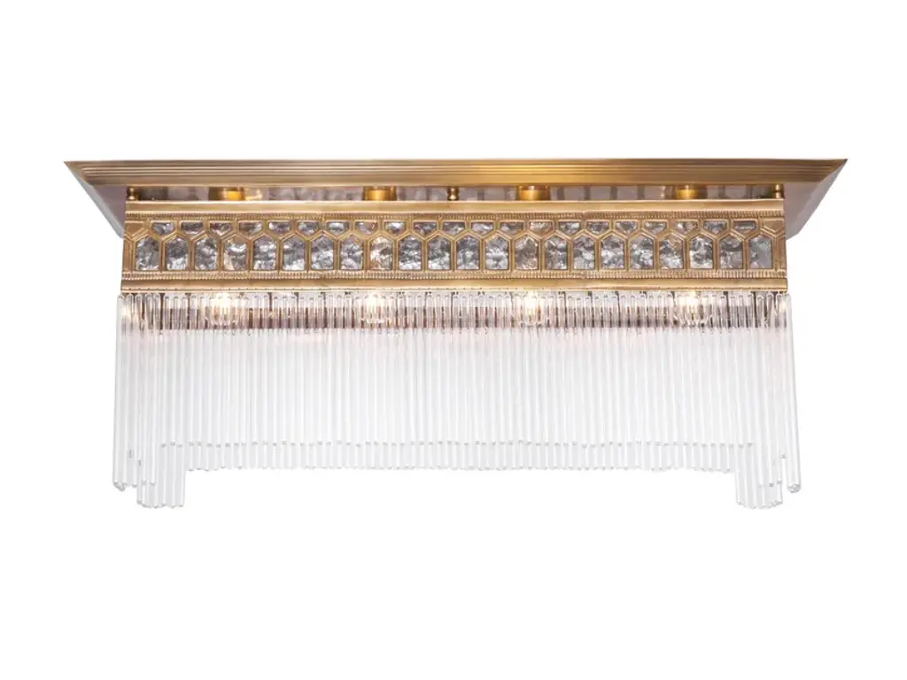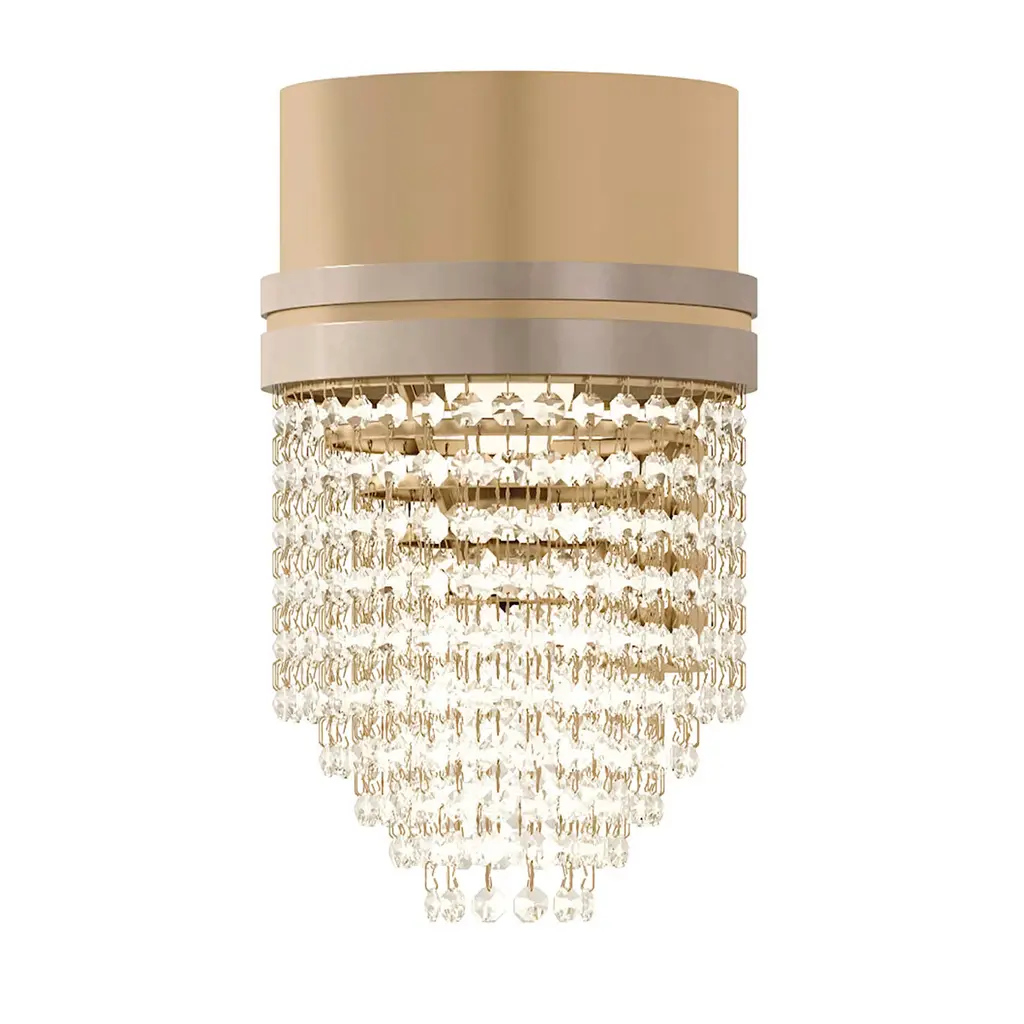 French Art Deco style of the 1920s is reborn in our glamorous Leyland Lighting Collection, featuring layered row upon row of faceted glass crystals from a rustic iron frame.
