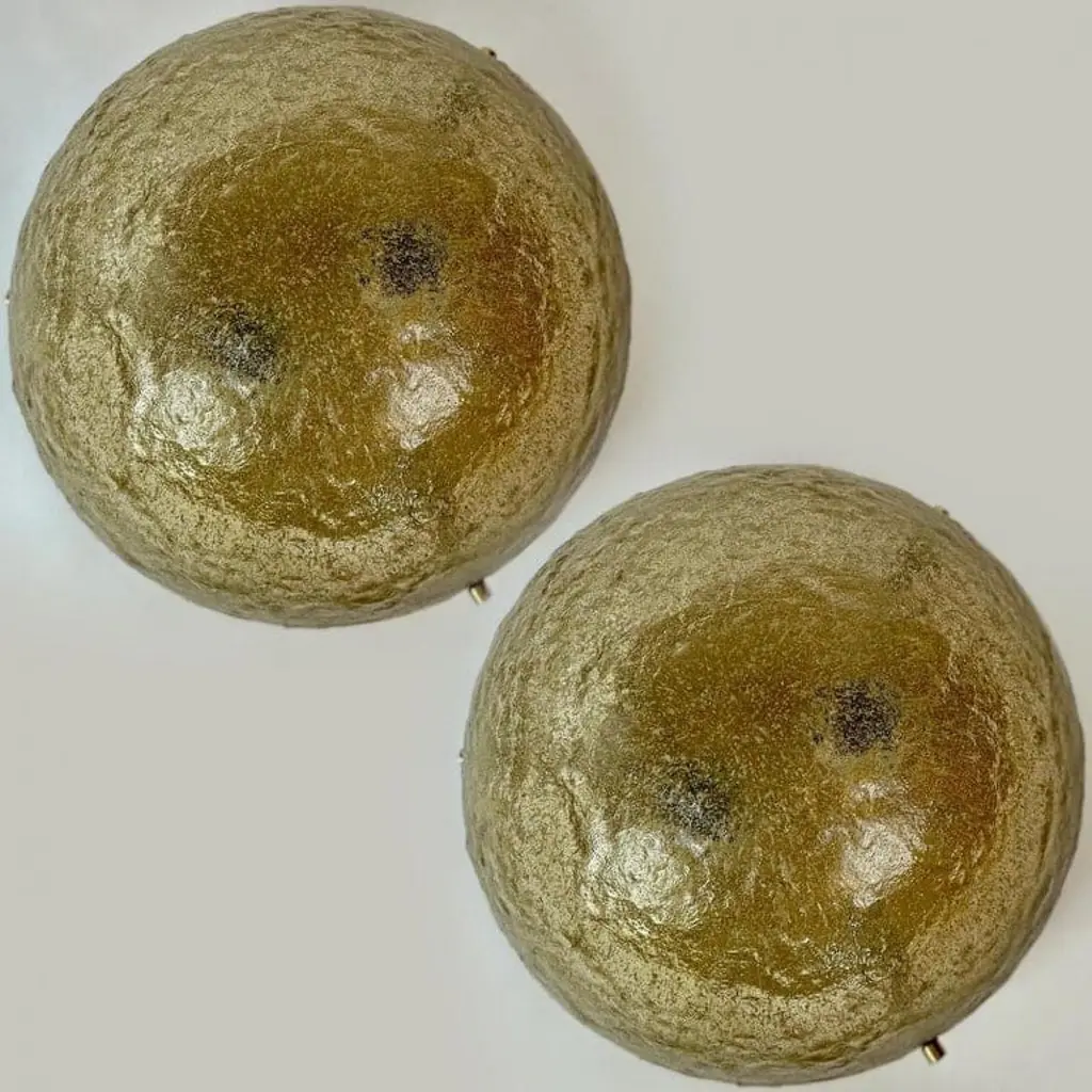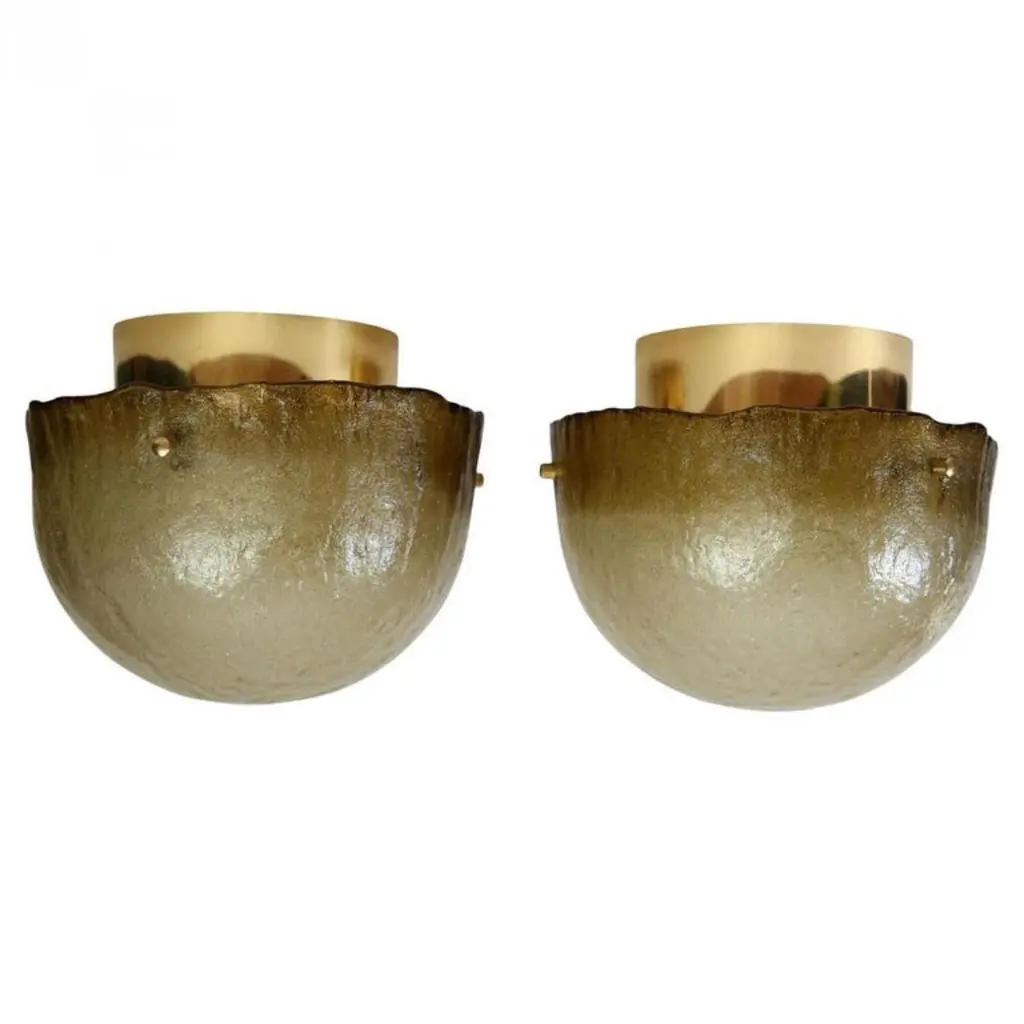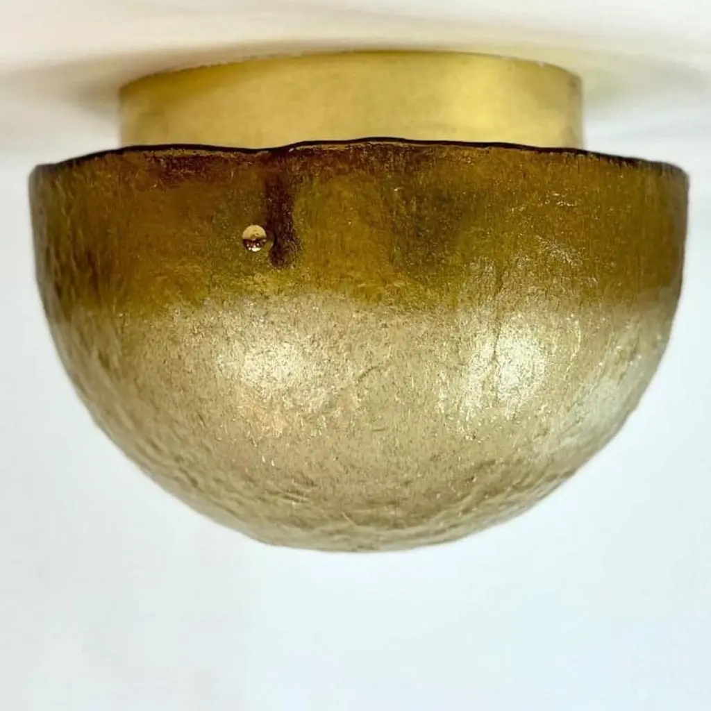A wonderful mushroom shape flush mount, circa 1970, made by Limburg Leuchten, Germany.With hand blown smoked glass on brass base. Illuminates beautifully.2 Dimensions:Flush 1 Height approximate 7,9 inch (20 cm), diameter approximate 11.4 inch (29 cm)Flush 2 Height approximate 7,9 inch (20 cm), diameter approximate 13.8 inch ( 35 cm)Please notice the price is based on the smallest one. Several pieces available.Very good used condition. The flush mount requires 1 X E 27 bulbs. Up to 40 watts each and is also LED compatible.