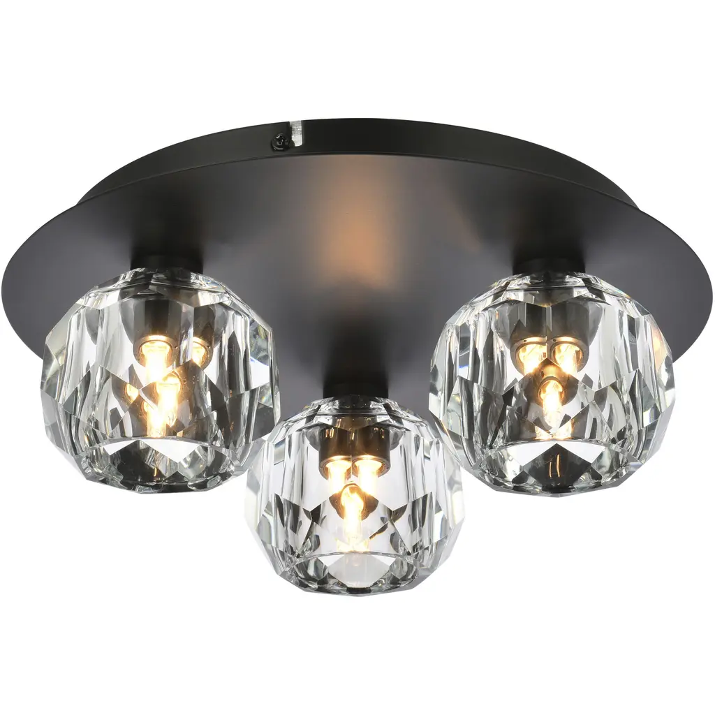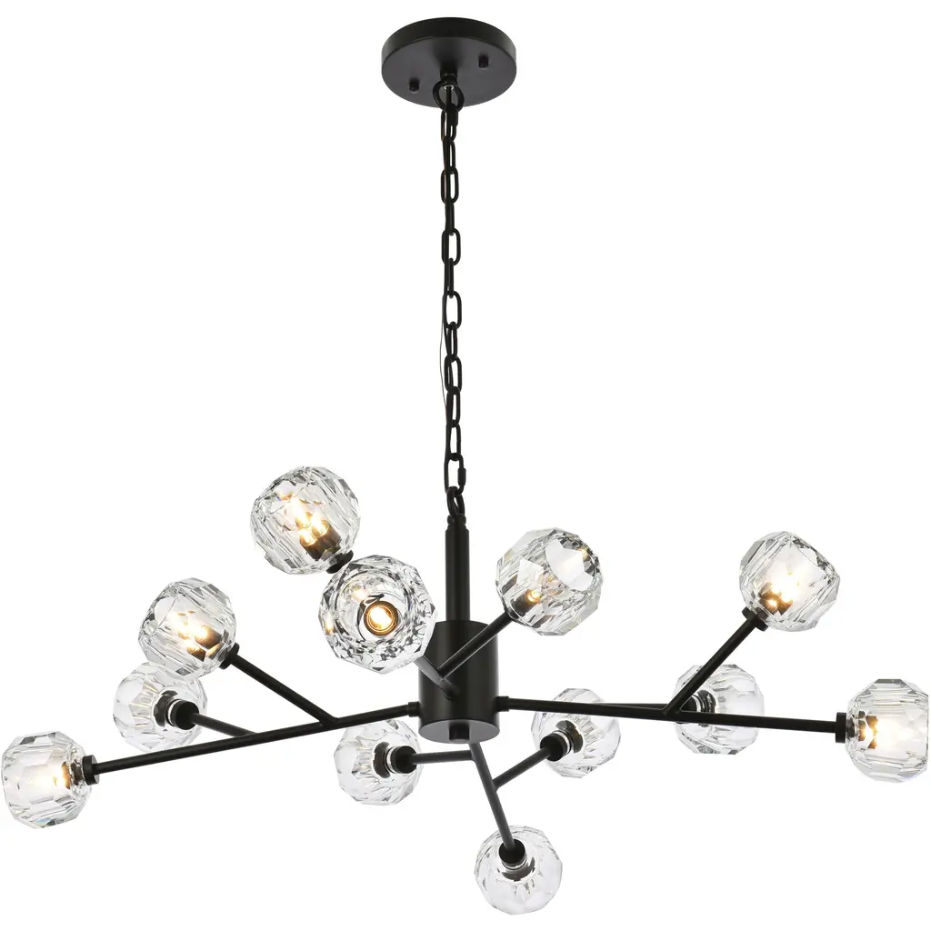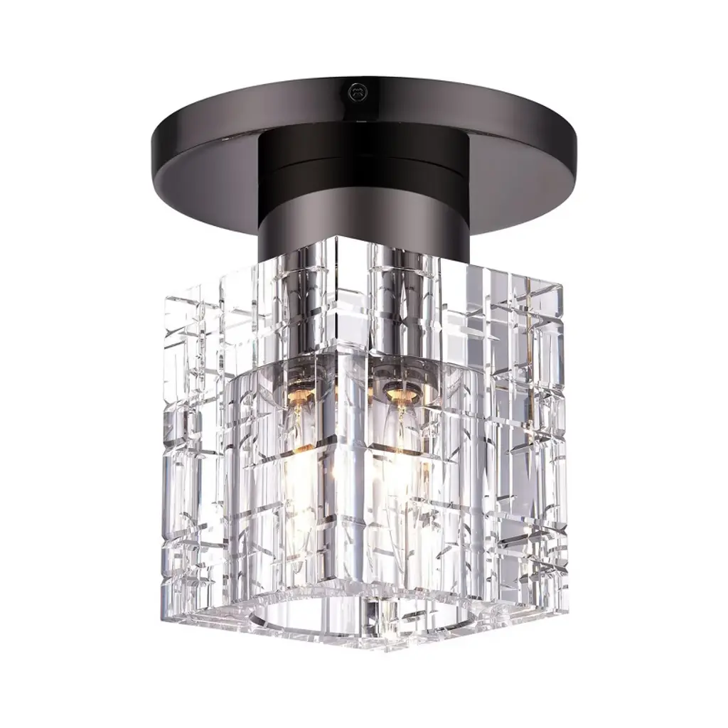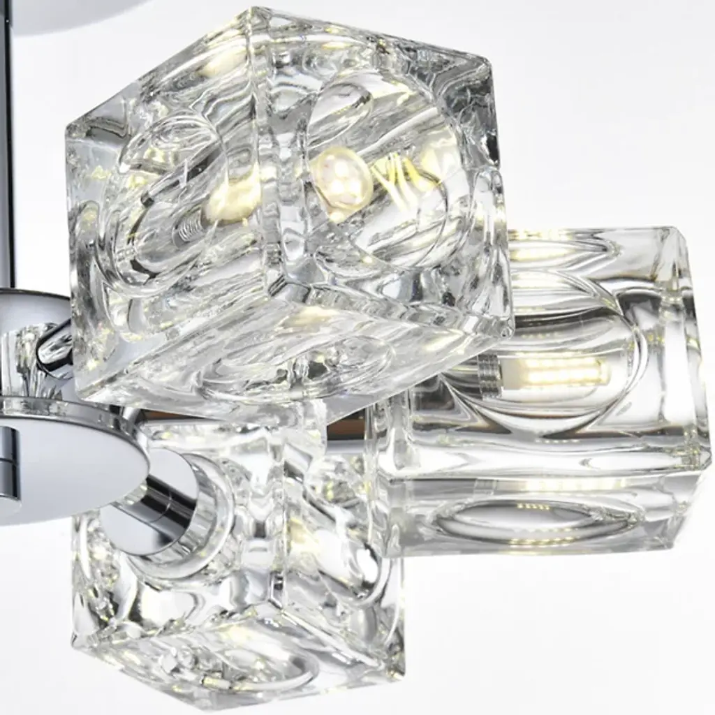 The Lira Flushmount from Huxe combines simplicity and sculptural elegance. It features six lights with distinctive dimpled square glass shades for a uniquely textured look. Its strong iron support structure melds contemporary design with industrial sophistication. Descending from a circular canopy, it extends a slim rod to a round hub for a modern structure. This fixture is a versatile and refined addition, showcasing elements of Mid-Century Modern and Transitional styles, distributing a mellow ambiance throughout any interior space.