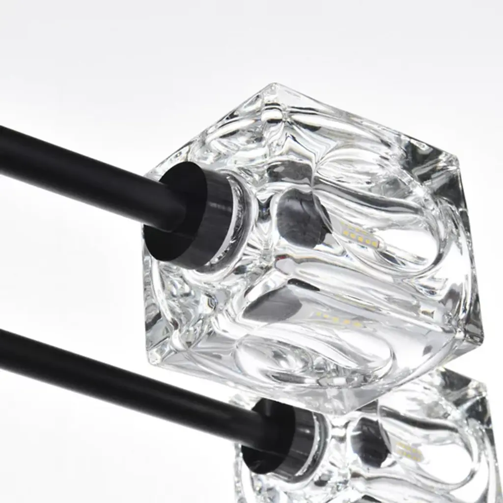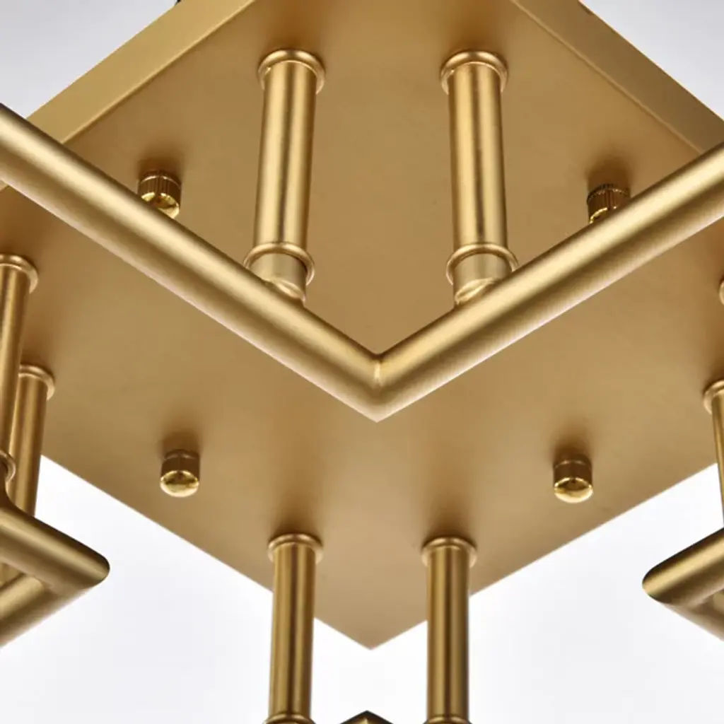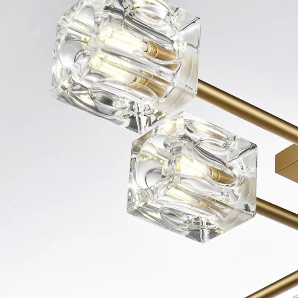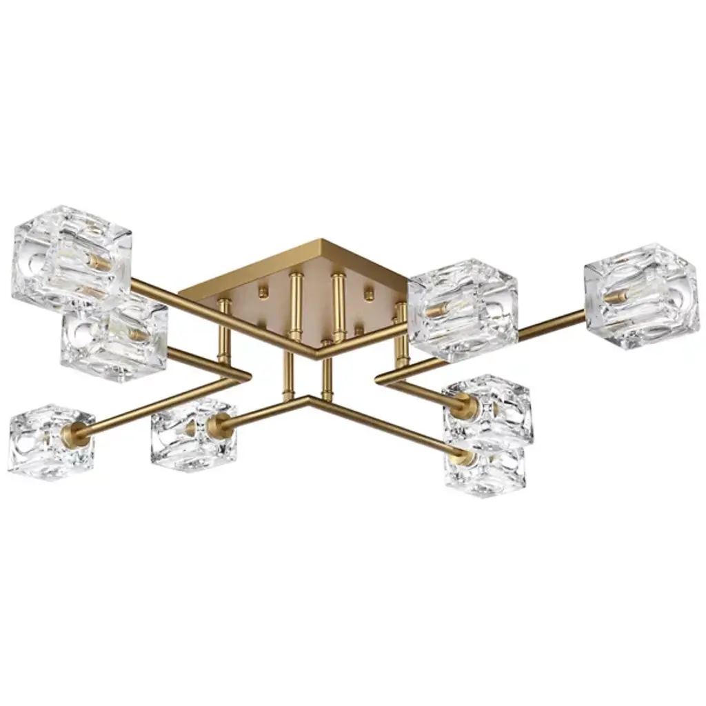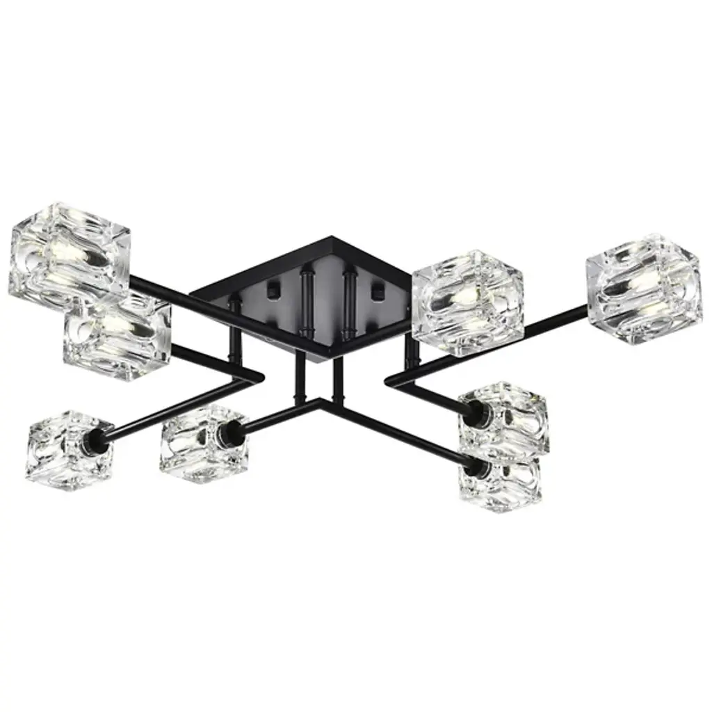 The Lira Large Flushmount from Huxe unites simple sculptural elements with a layered design that blends simplicity with sculptural elegance. Eight lights adorned with uniquely textured dimpled square glass shades emerge around its canopy, helping this fixture stand out with its distinctive design. The robust iron support structure integrates contemporary design with industrial sophistication. Anchored via a square canopy, it extends slender, angular rods to the lamping, creating a textured, modern aesthetic. Embracing Mid-Century Modern and Transitional intricacy elements that nod to older eras, this versatile fixture distributes a soft, ambient glow, enhancing any interior space with refined charm.