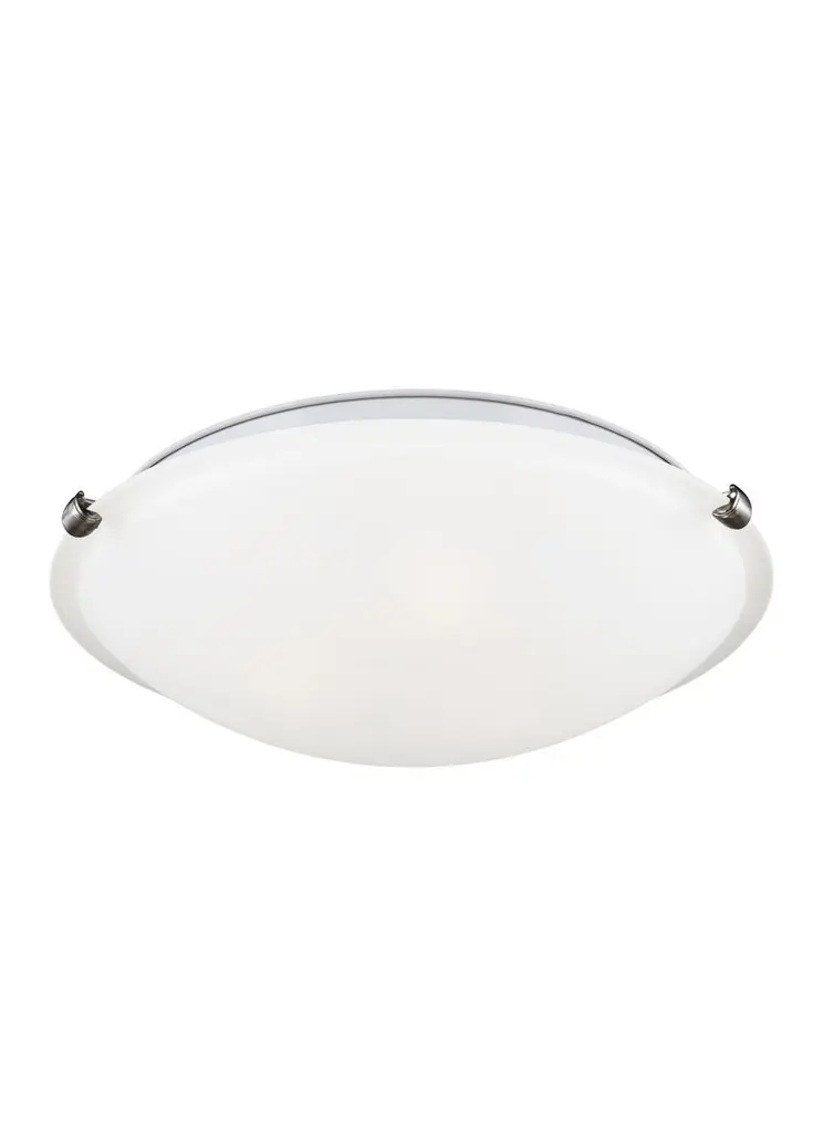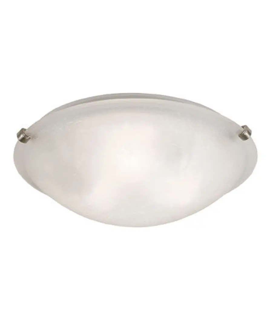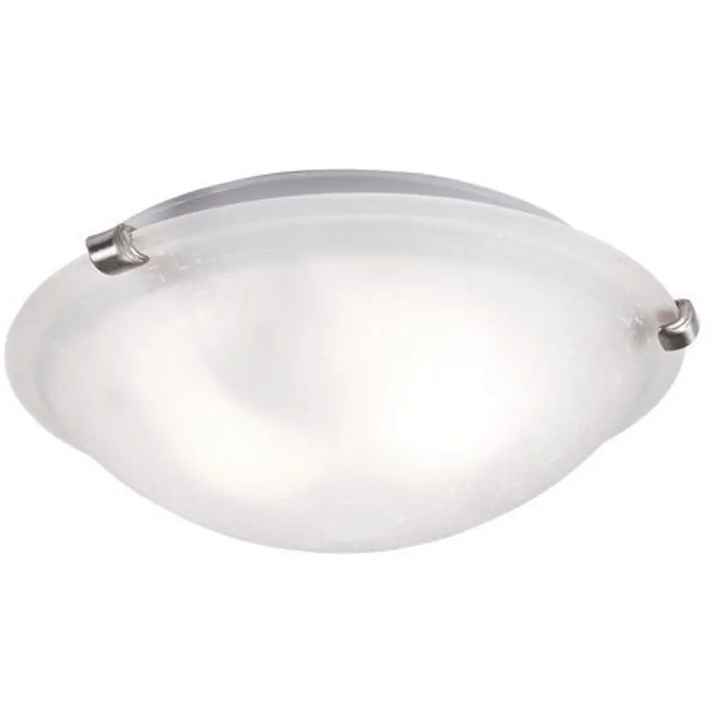 Collection: Oasis, Material: Steel, Finish Color: Brushed Nickel, Width: 12.25", Height: 4", Hanging Method: Flush, Lamping Type: Incandescent, Number Of Bulbs: 2, Wattage: 60 Watts, Moisture Rating: Damp Rated, Desc: In a brushed nickel finish paired with white alabaster glass, this sleek flush mount will complement your transitional decor with its clean, stylish look. Shade Included: Yes. ,