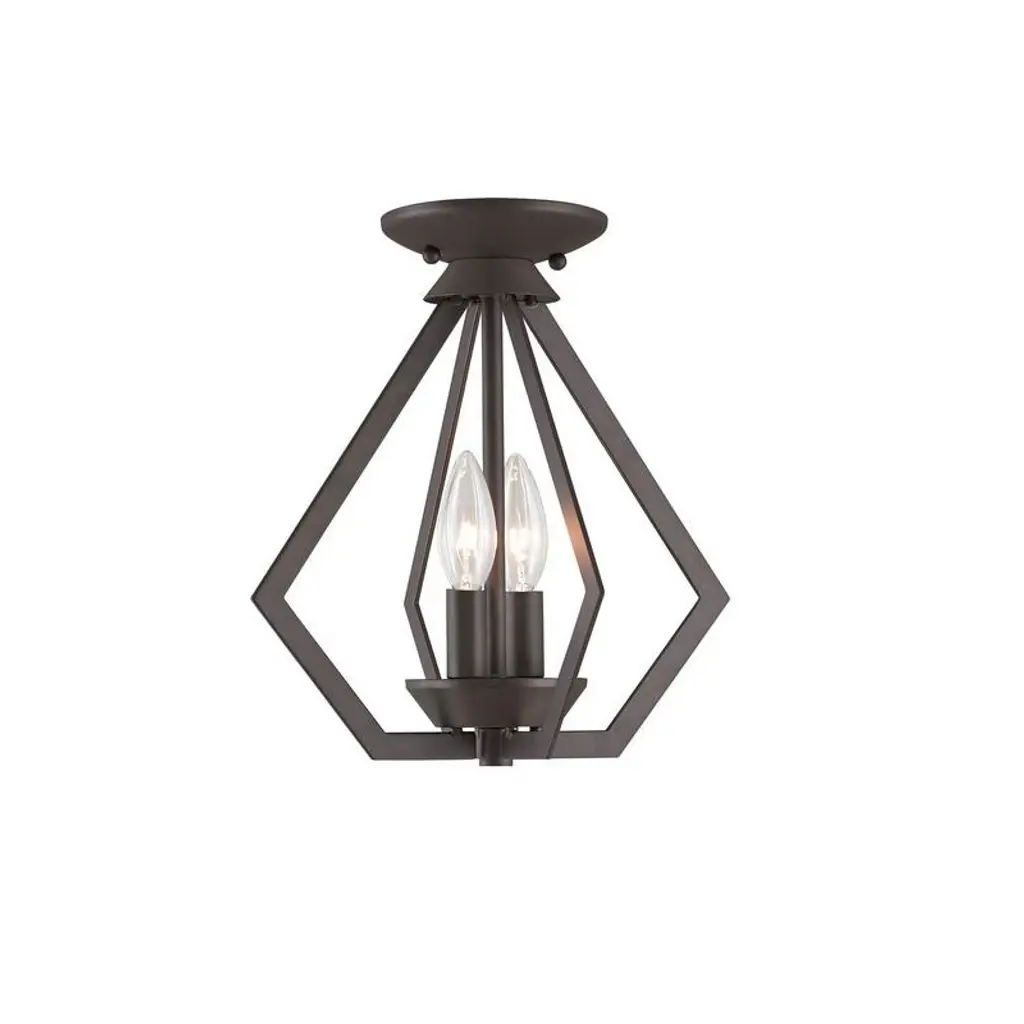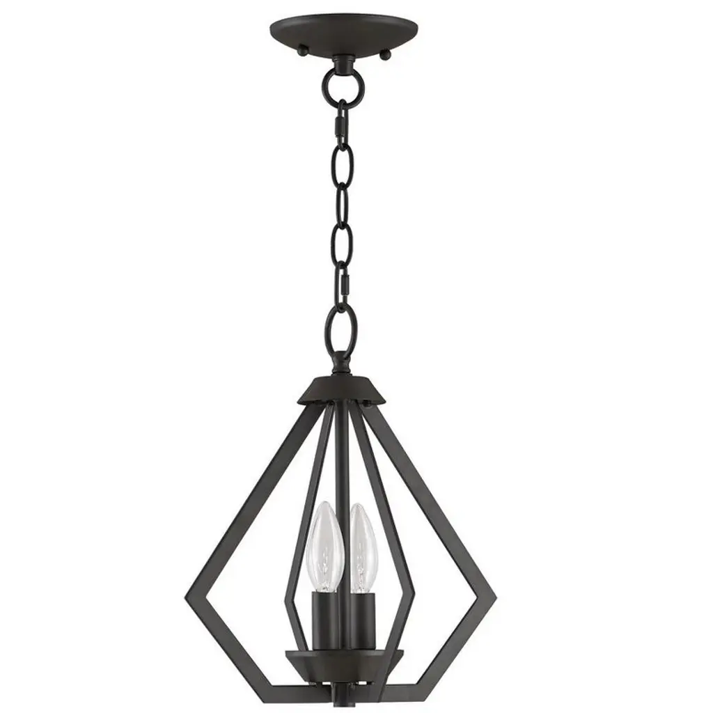 Collection: Prism, Material: Steel, Finish Color: Bronze, Width: 11.25", Height: 13", Hanging Method: Chain, Chain Length: 36", Lamping Type: Incandescent, Number Of Bulbs: 2, Wattage: 120 Watts, Moisture Rating: Dry Rated, Desc: Influenced by modern industrial style, our Prism antique brass finish pendant/flush mount light has a striking triangular shape. Sleek and contemporary, it's ideal for modern, contemporary or industrial style interiors. Canopy Included: Yes / Canopy Diameter: 5.00. ,