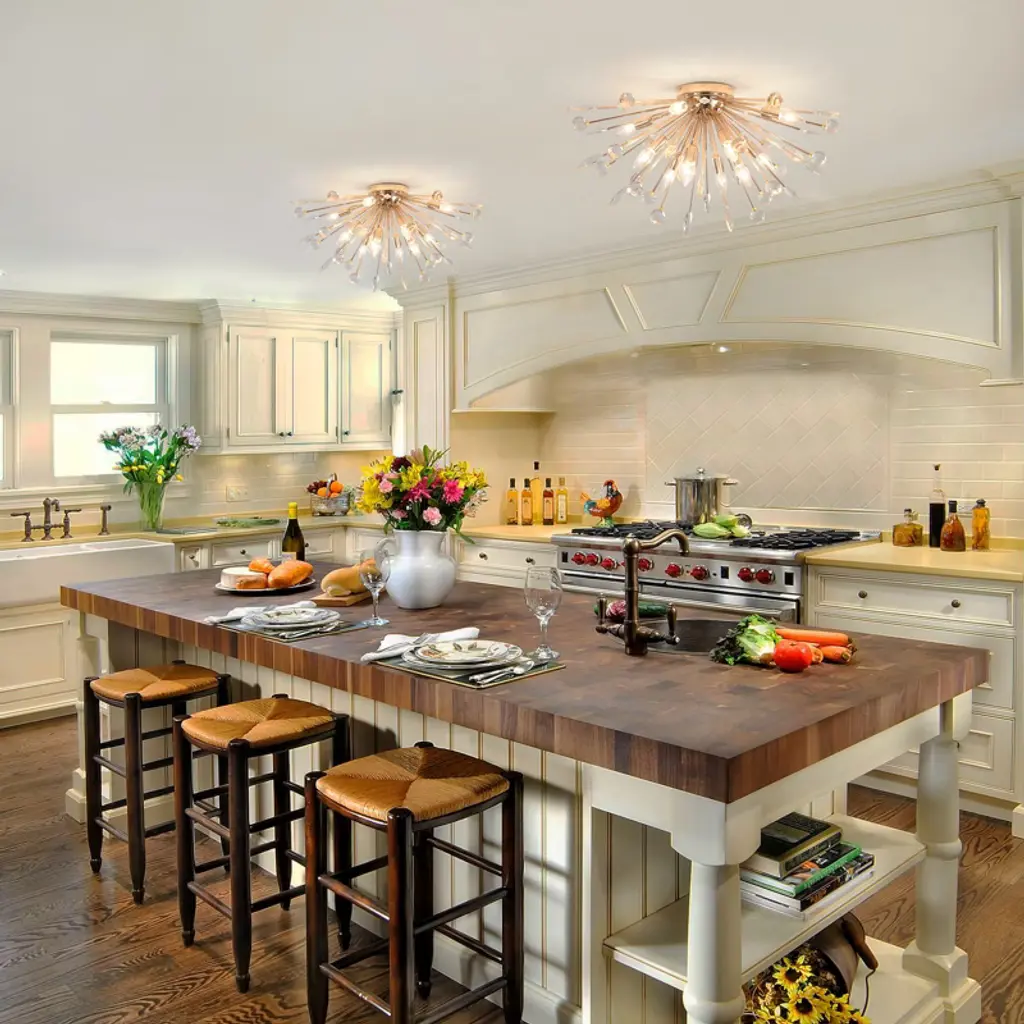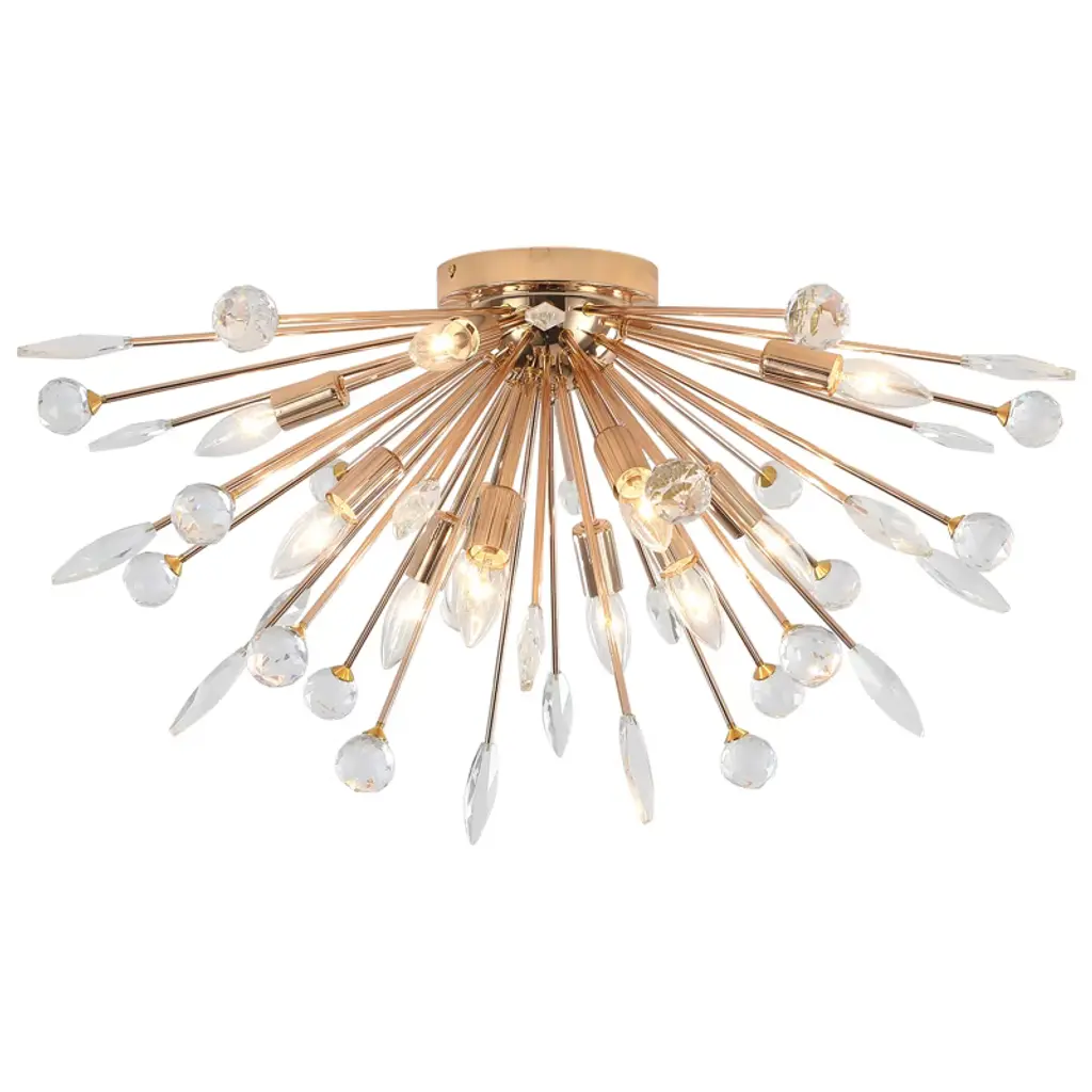 Llhzsy 12-light 30 1/2" Dandelion Firework Crystal Flush Mount Ceiling Lights Fixture-gold