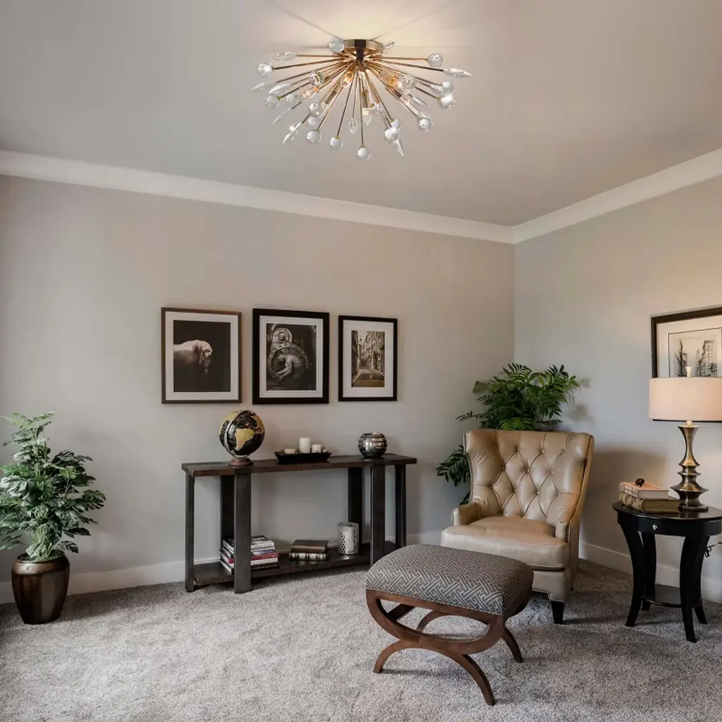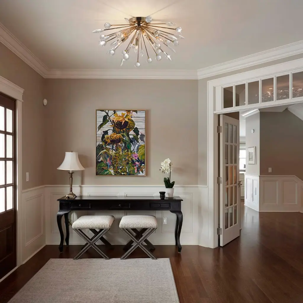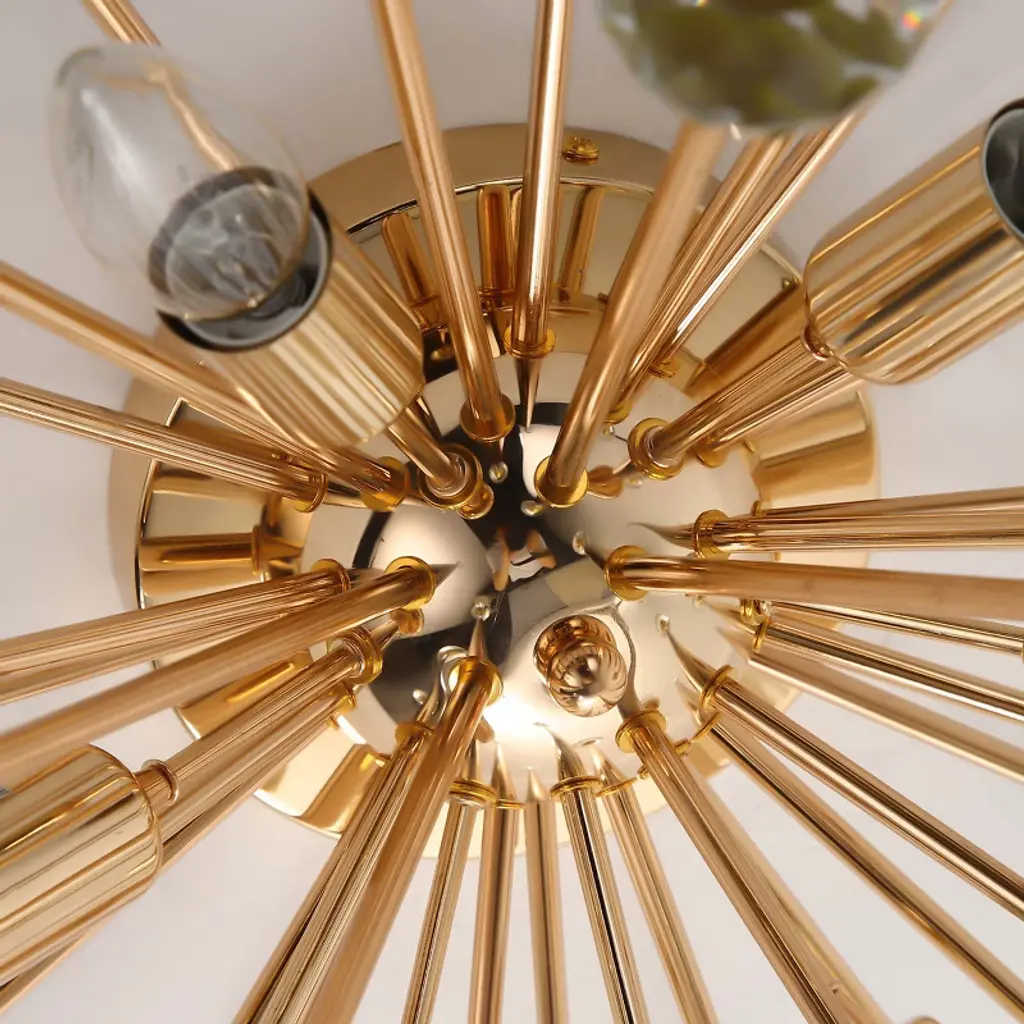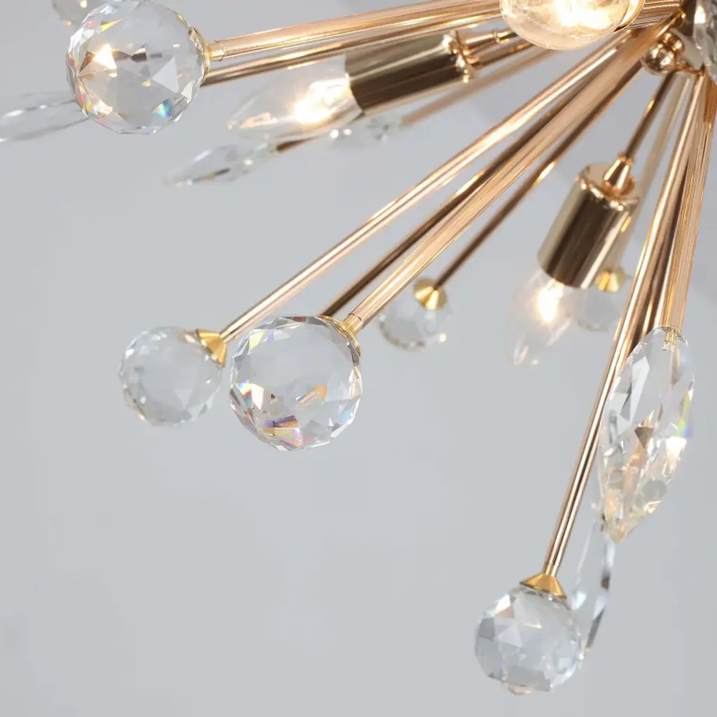 Illuminate your space with this 6-light 25 3/5" dandelion firework crystal flush mount ceiling light. Featuring an eye-catching burst design, this fixture creates a dazzling display of light and shadow. The crystal accents enhance its elegance, making it perfect for modern interiors. Easy to install and crafted for durability, this light adds a touch of luxury to any room.