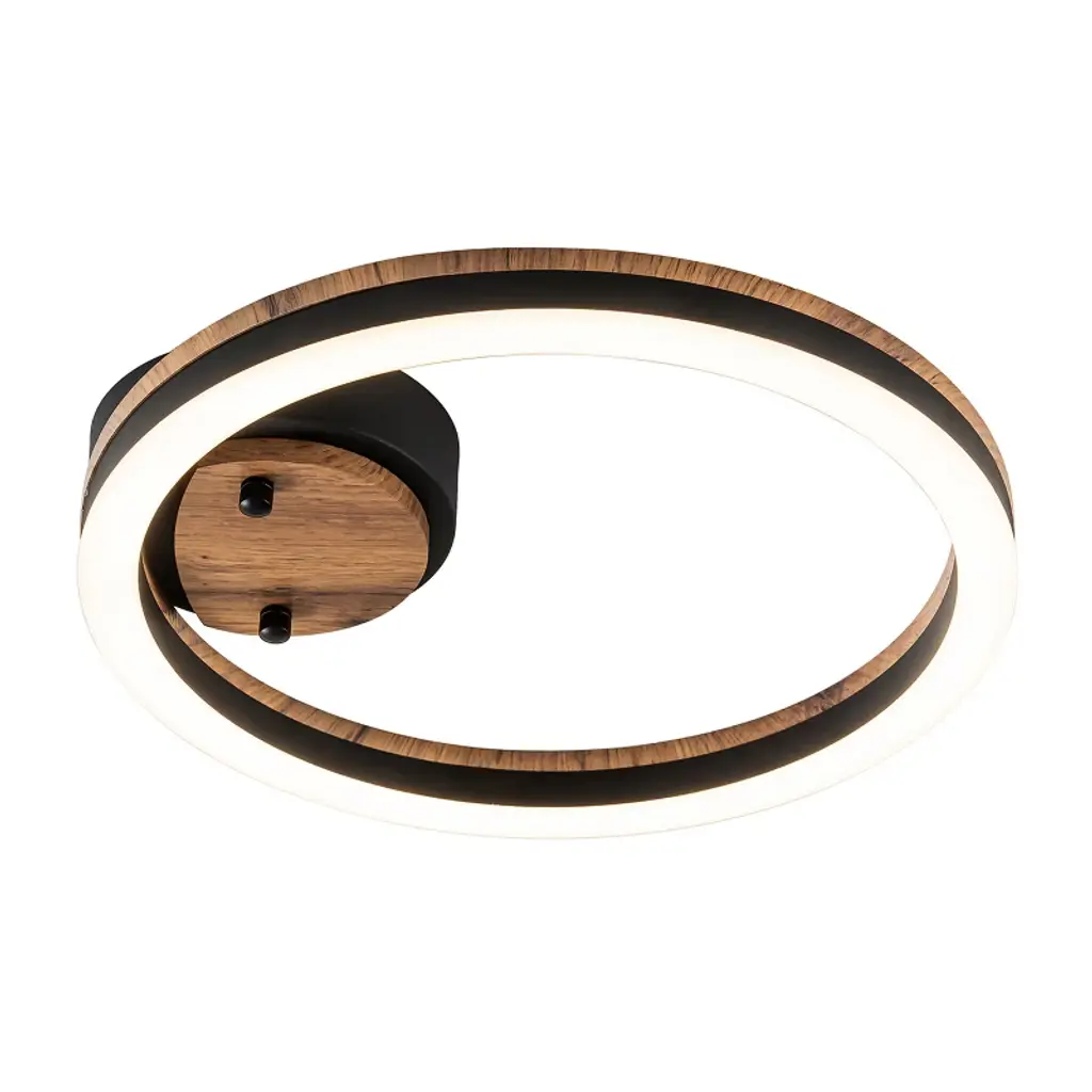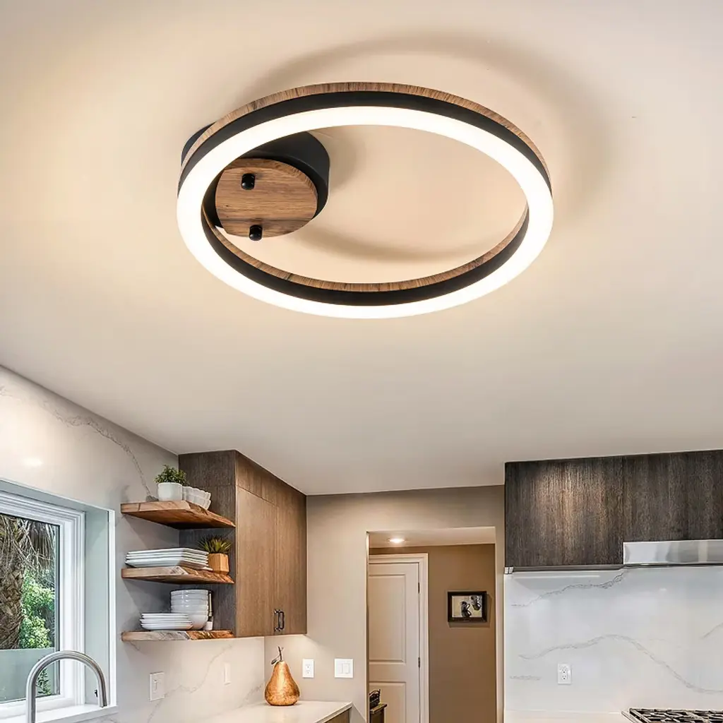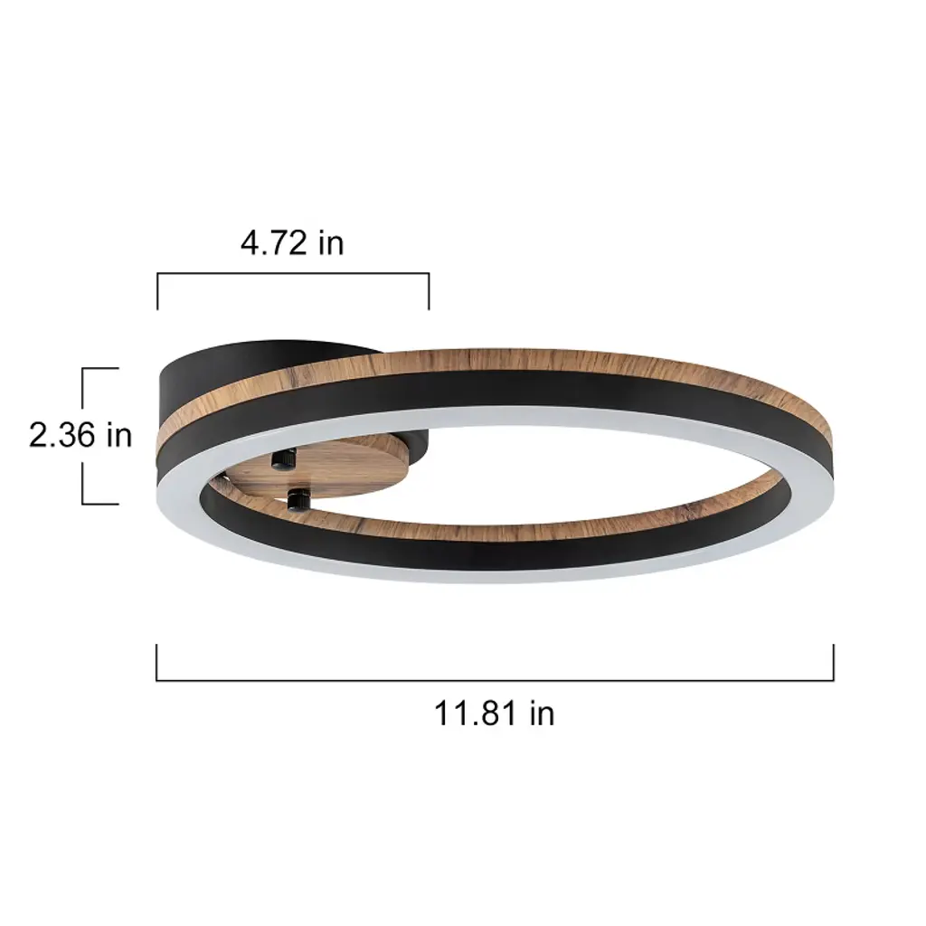 This 1-light minimalist circle LED flush mount light features a combination of metal and wood materials, ideal for a stylish farmhouse look that complements modern, vintage, and rustic styles. The integrated 14W LED light with warm light (3000K) offers both comfortable illumination and energy efficiency. It is also compatible with dimmer switches (not included) for adjustable lighting. ETL certified for safety, with all mounting hardware included for quick and easy installation. Perfect for kitchens, bedrooms, foyers, hallways, and more.