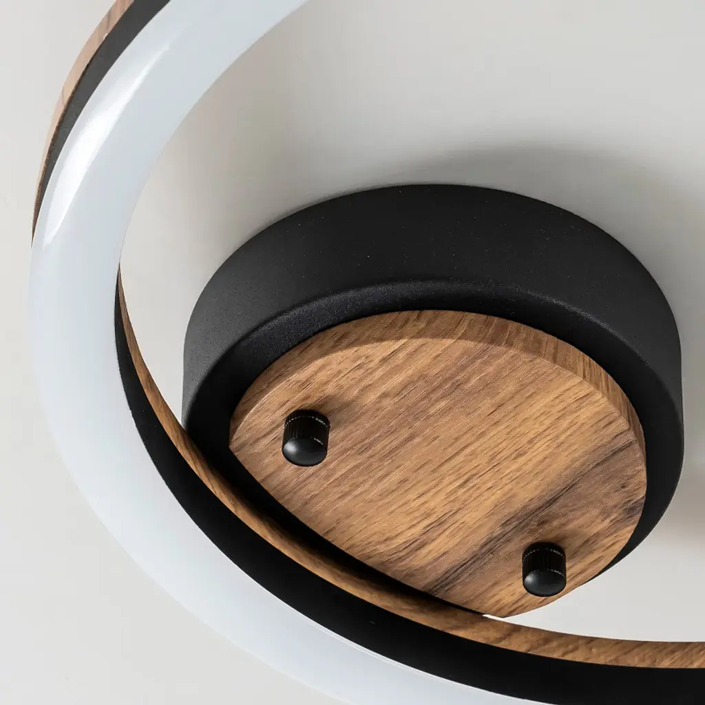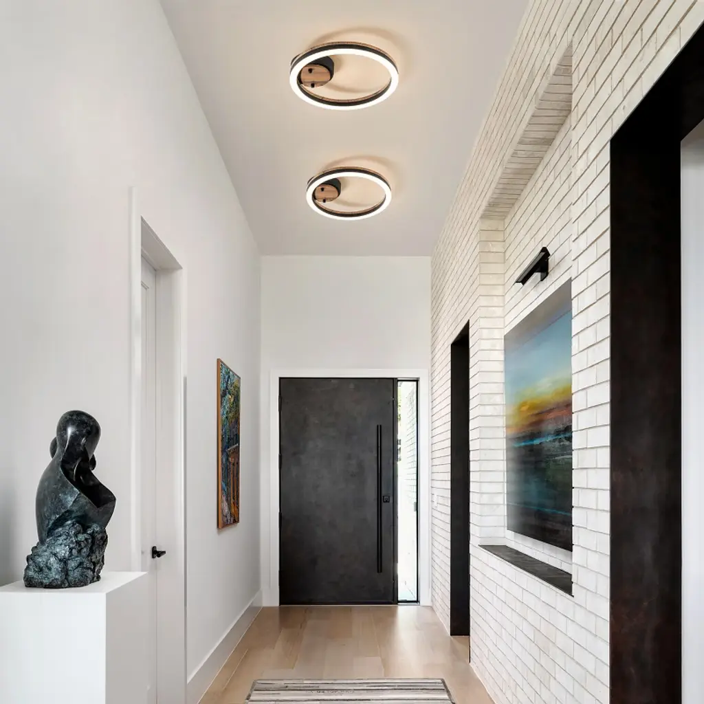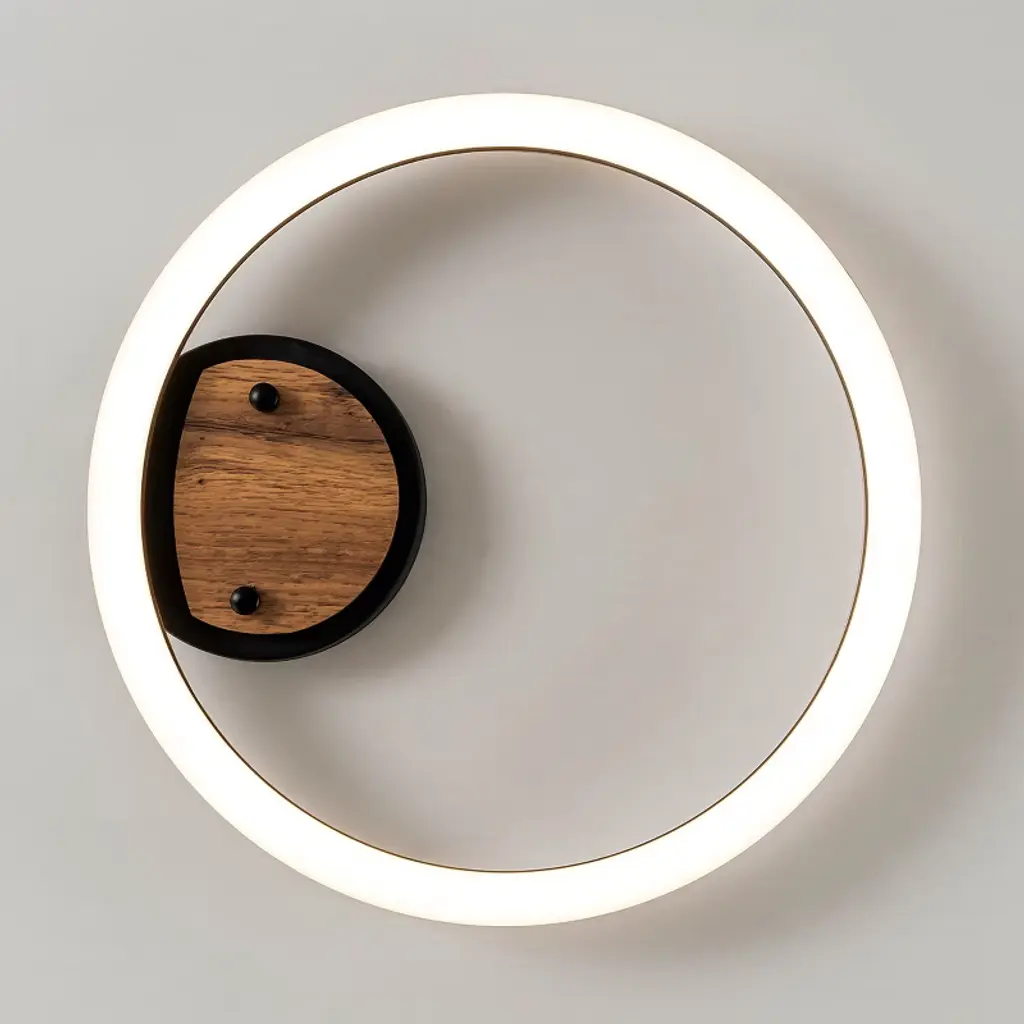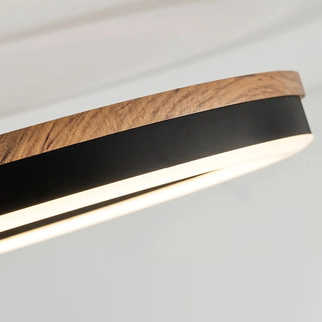 This 1-light minimalist circle LED flush mount light features a combination of metal and wood materials, ideal for a stylish farmhouse look that complements modern, vintage, and rustic styles. The integrated 14W LED light with warm light (3000K) offers both comfortable illumination and energy efficiency. It is also compatible with dimmer switches (not included) for adjustable lighting. ETL certified for safety, with all mounting hardware included for quick and easy installation. Perfect for kitchens, bedrooms, foyers, hallways, and more.