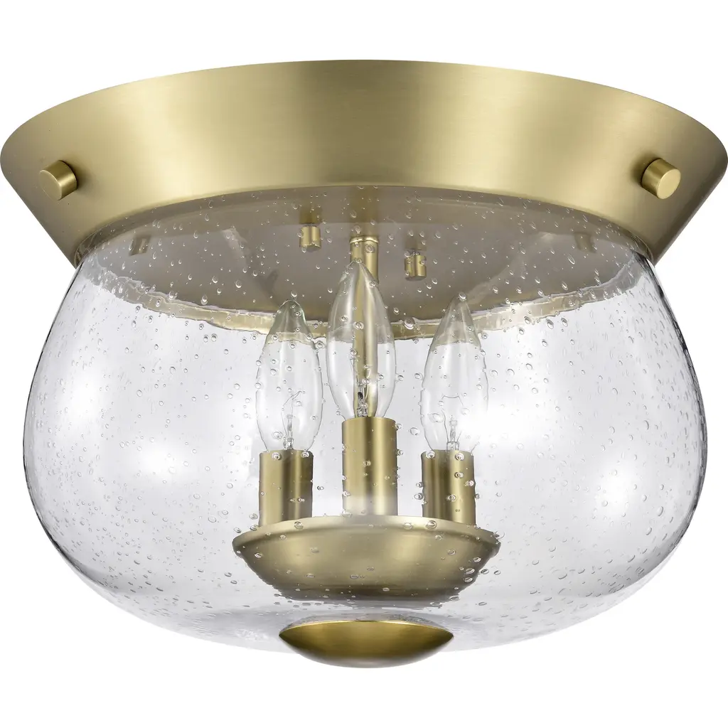 Lnc Ellan 3-lights 13.5-in Matte Gold And Seeded Glass Led Flush Mount Lights