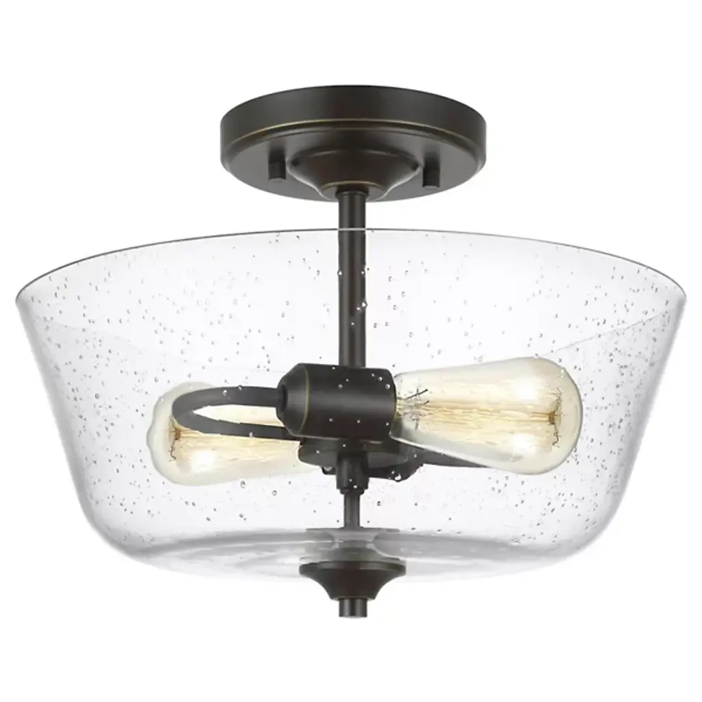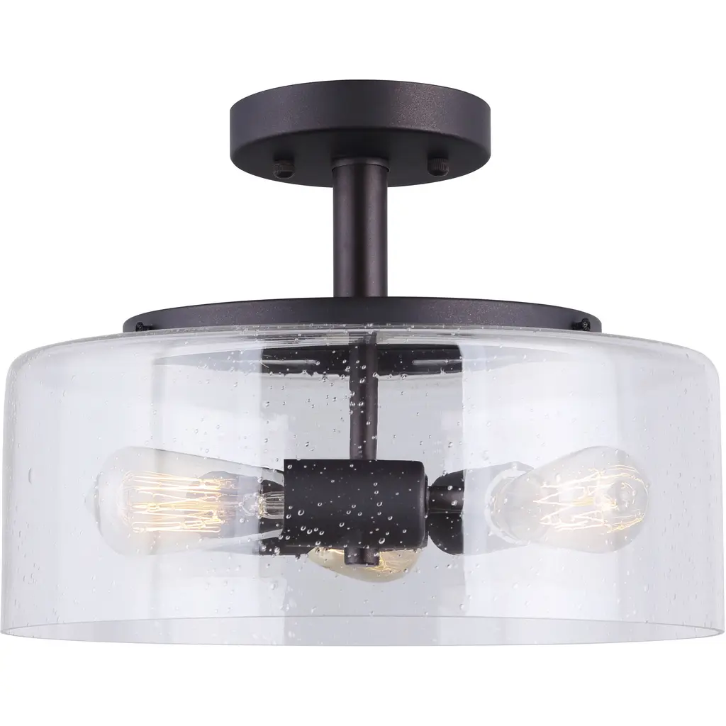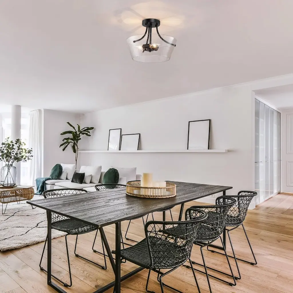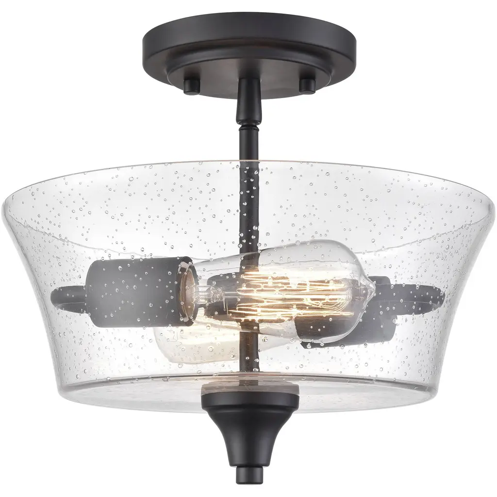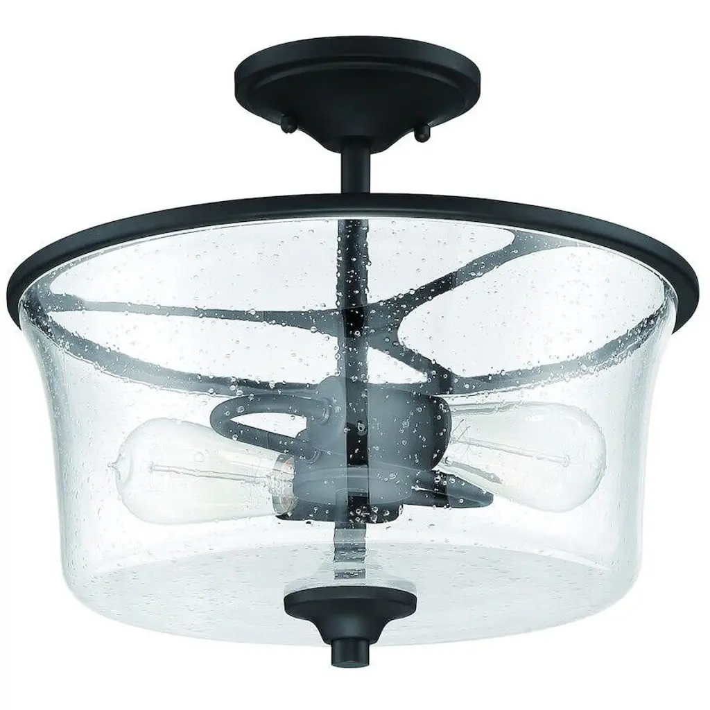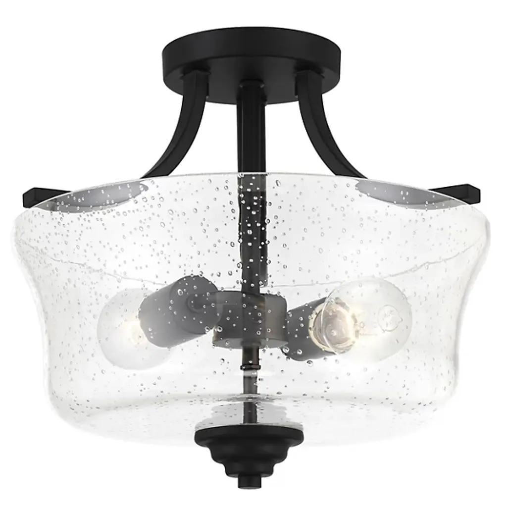 This 13-in transitional drum shape LED flush mount light from LNC is inspired with transitional metal and glass elements, with well painted matte black frame with seeded dreamy glass shade perfectly connected by two curve arms, this elegant and chic design flush mount light will provide effortless light into your kitchen, dining room, or back patio.