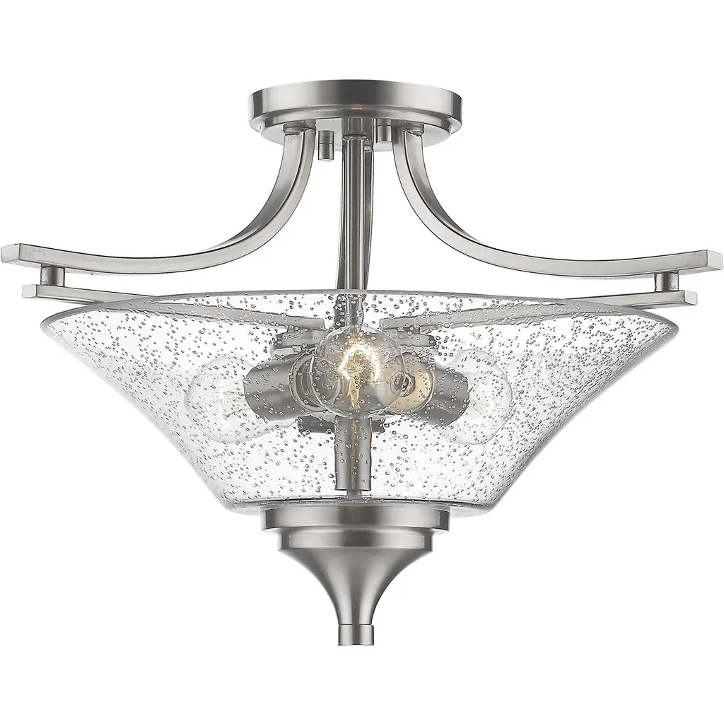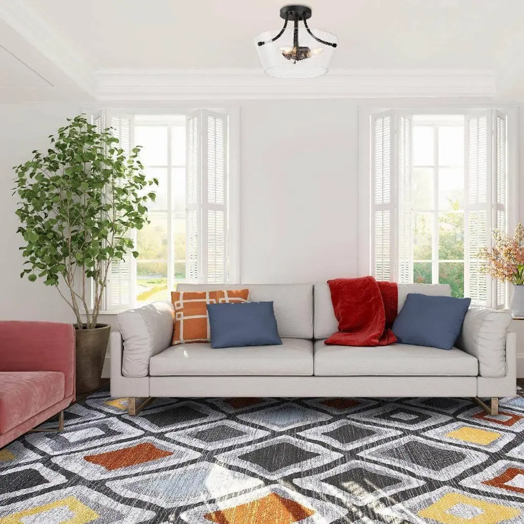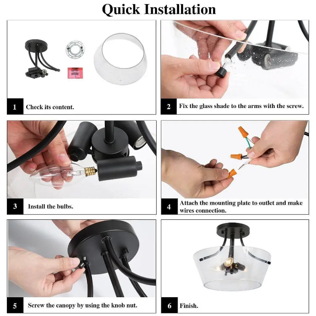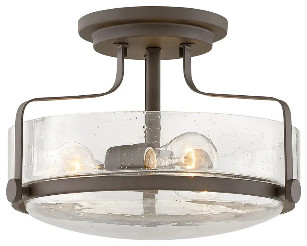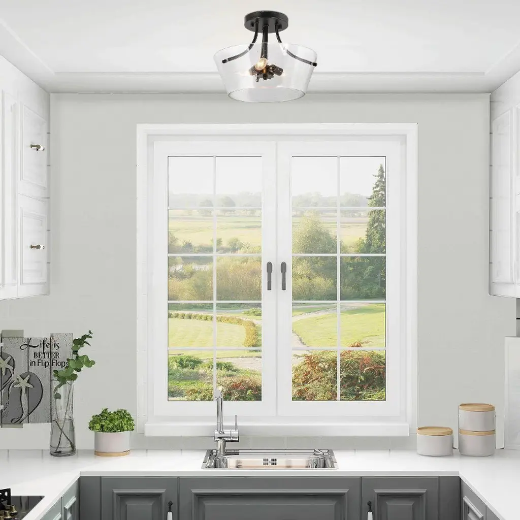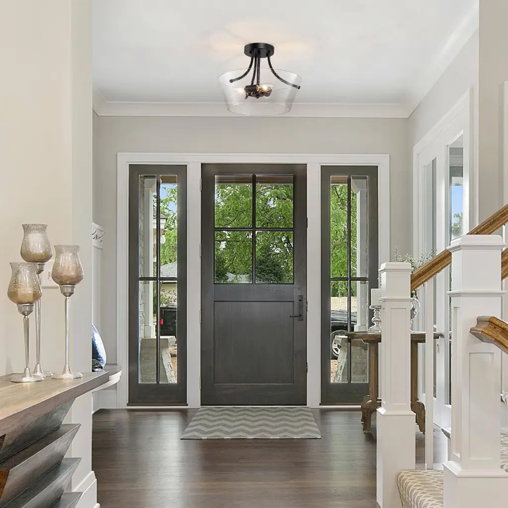 This 13-in transitional drum shape LED flush mount light from LNC is inspired with transitional metal and glass elements, with well painted matte black frame with seeded dreamy glass shade perfectly connected by two curve arms, this elegant and chic design flush mount light will provide effortless light into your kitchen, dining room, or back patio.