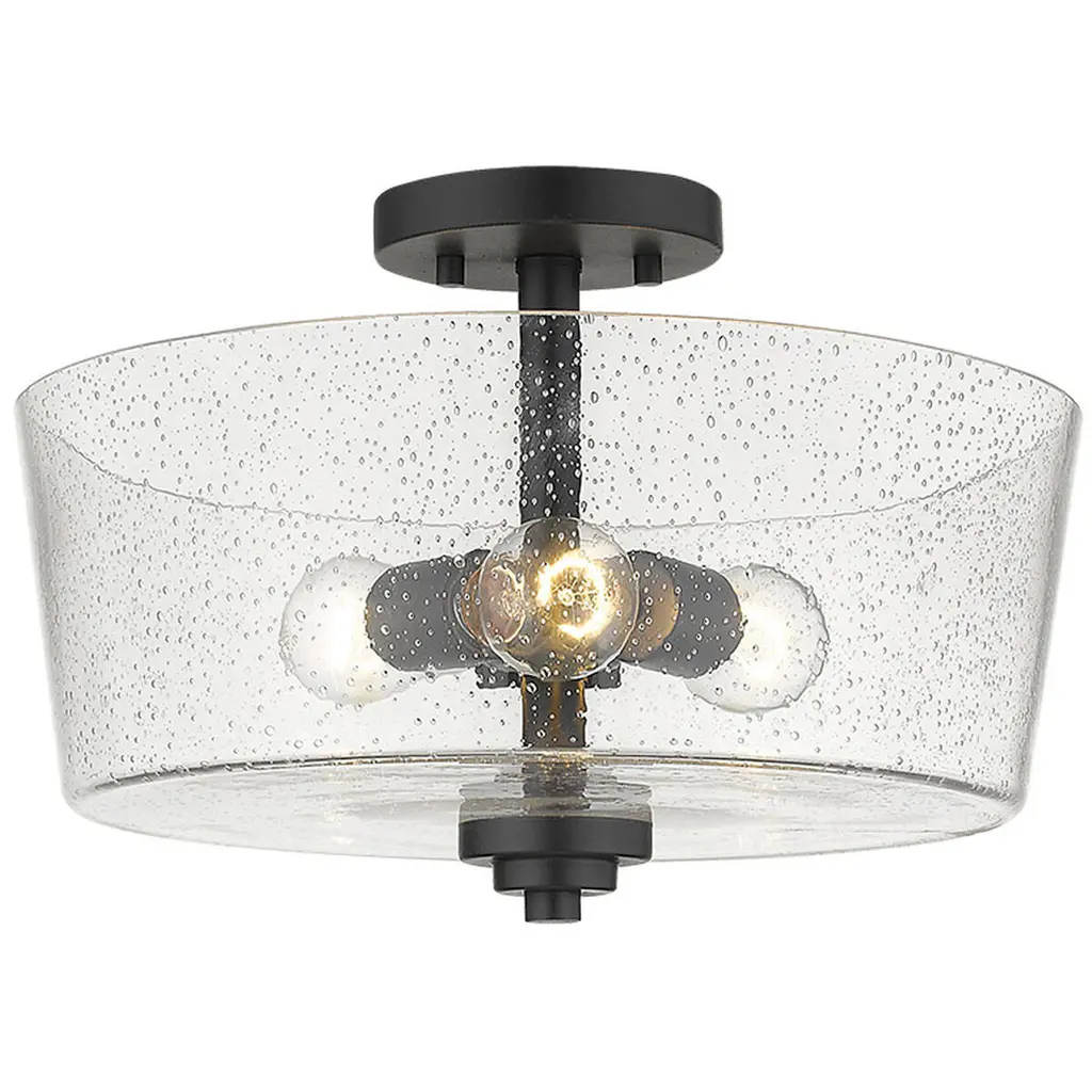 Lnc Lapps 3-lights 13-in Matte Black And Seeded Glass Traditional Drum Led Flush Mount Lights