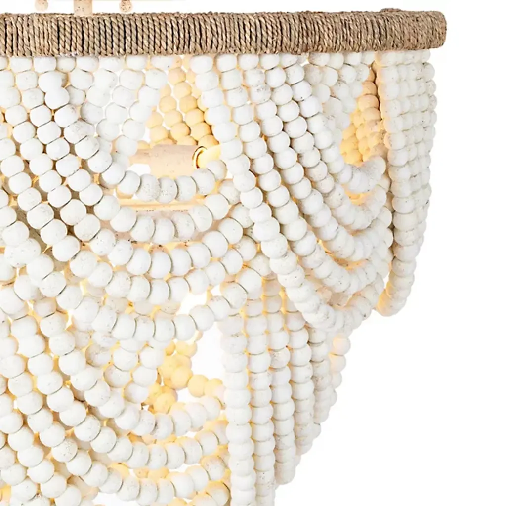 The Lorelei Wood Bead Flushmount from Regina Andrew captures the essence of fine jewelry. This flushmount is adorned with birch wood beads delicately draped overhead. These beads surround a collection of candelabra base LEDs that brightly illuminate your environment. This light fixture combines elements of coastal & nautical and transitional styles for versatility. You can quickly change the brightness level using a separately sold ELV dimmer. A strong ceiling canopy adds stability, • Hardwired
