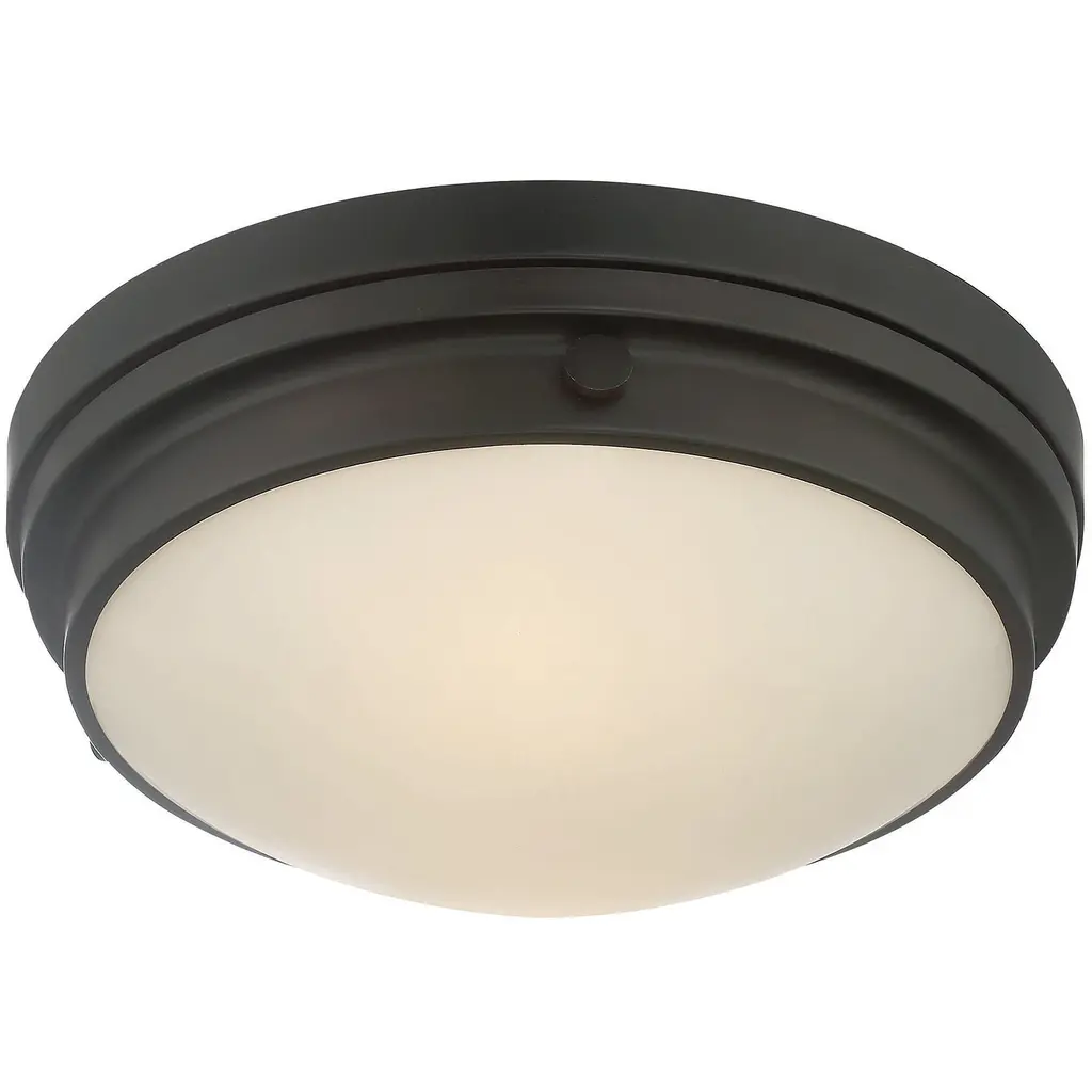 The Savoy House Lucerne 3-light ceiling flush mount is sure to bring sleek metallic style to any space A white glass shade makes Lucerne an ideal choice for comfortable, useful light. Finished in bold English bronze. Flush mounts can be used on the ceiling of pretty much any interior room, including foyers, hallways, stairways, closets, bathrooms, bedrooms, kitchens and more Bulbs not included. The English bronze finish can be paired with bronze hardware or mixed with hardware in other finishes. Pep up the light and style of any room with Lucerne. When you choose a Savoy House lighting fixture, you can be certain you've selected a piece that will withstand the test of time.