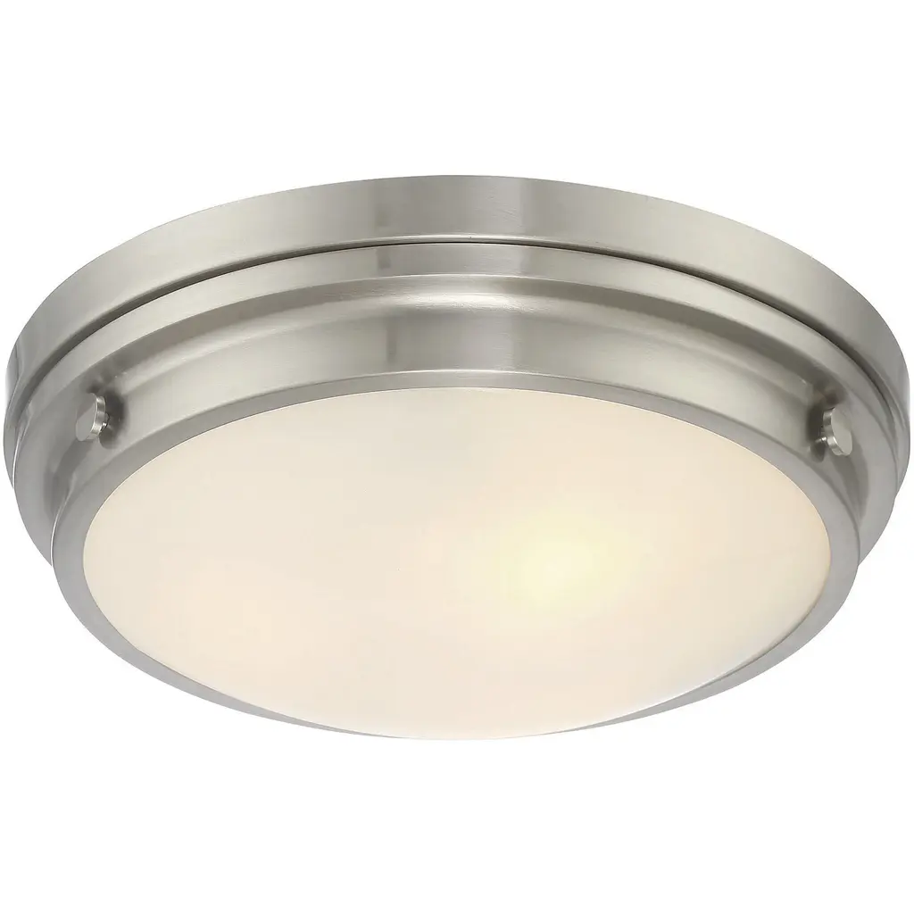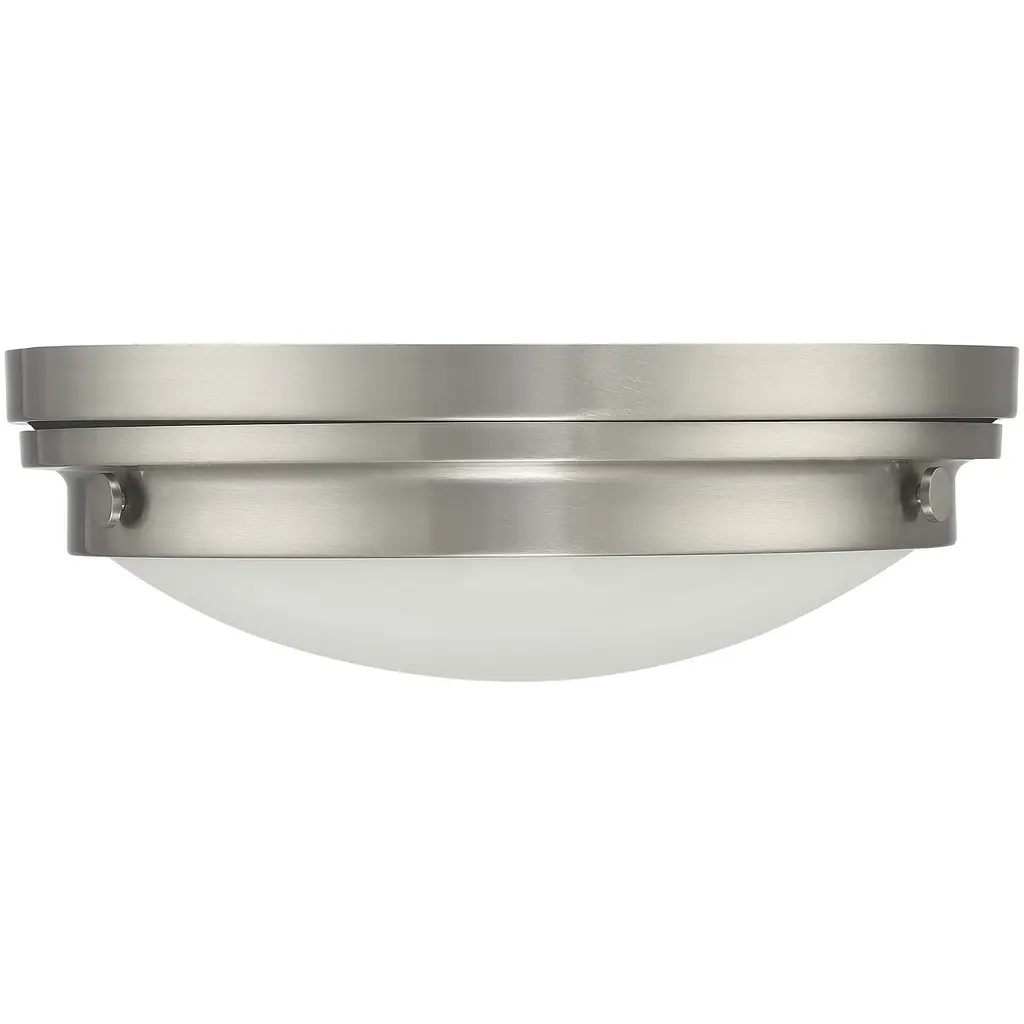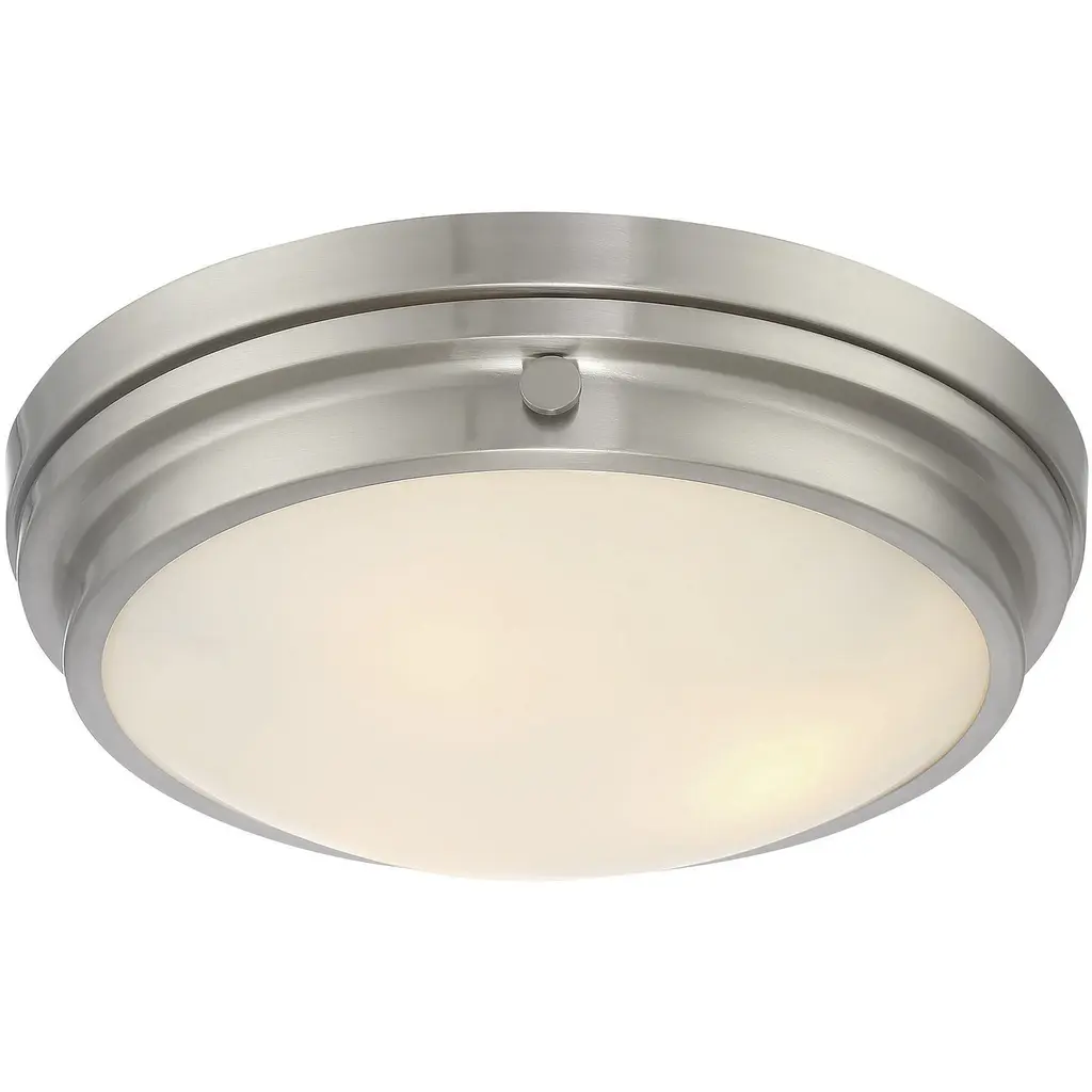The Savoy House Lucerne 3-light ceiling flush mount is sure to bring sleek metallic style to any space A white glass shade makes Lucerne an ideal choice for comfortable, useful light. Finished in sleek satin nickel. Flush mounts can be used on the ceiling of pretty much any interior room, including foyers, hallways, stairways, closets, bathrooms, bedrooms, kitchens and more Bulbs not included. The satin nickel finish can be paired with nickel hardware or mixed with hardware in other finishes. Pep up the light and style of any room with Lucerne. When you choose a Savoy House lighting fixture, you can be certain you've selected a piece that will withstand the test of time.