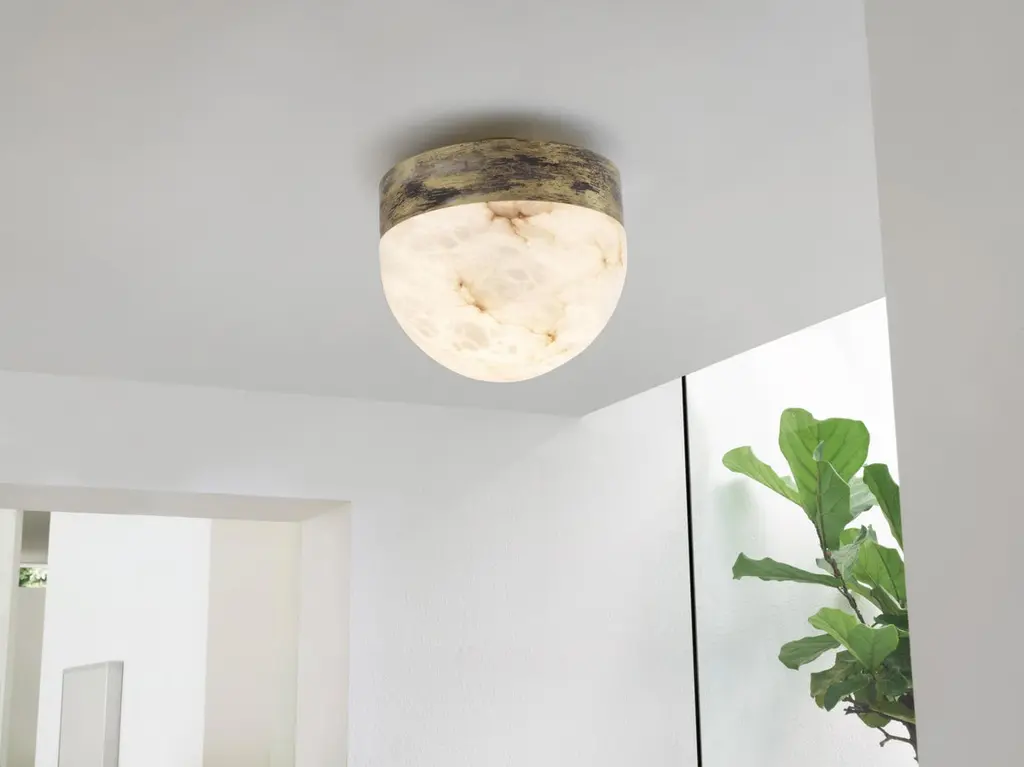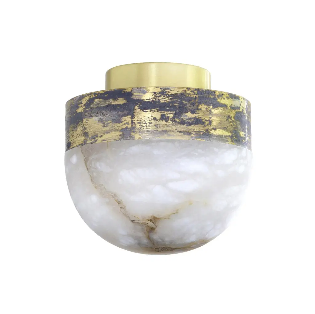 Lucid 200 flush lamp by CTO LightingMaterials: honed alabaster with satin brass base.Also available in honed alabaster with bronze base.Dimensions: H 20 x W 20 cmAll our lamps can be wired according to each country. If sold to the USA it will be wired for the USA for instance.Other sizes available.1 x E12, 6.5w - 2700k - LED ONLYweight 4kg (8.8”)no bulbs suppliedstone markings may varymounts onto 4” junction boxFounded in 1998 by Chris and Clare Turner, CTO Lighting launched their first collection on the guiding principles of designing lights of uncompromising quality, using only the finest materials and working with elite British craftsmen. This collection of lighting symbolised elegance and the excellence of British design and manufacturing; the benchmark for all future collections.