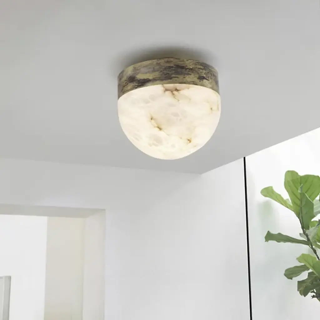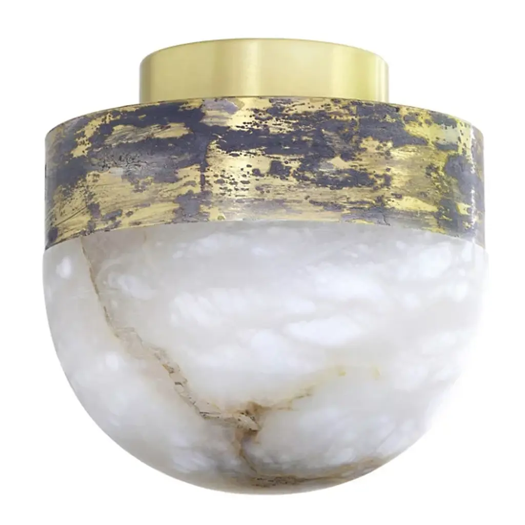 Inspired by the wondrous visuals of snowdomes and the sophisticated mood of Parisien brasseries. The Lucid Flushmount from CTO Lighting treats the day and night time setting to an awe-inspiring visual of flowing accents. Creator Michael Verheyden blends serene shapes and meandering materials into pure refined pieces. His work is founded on creating uncommon objects for everyday rituals. This object jumps out towards the viewer with a low-profile structure made from clean metal. The alabaster shade on top rounds out like a snowglobe, inviting one to look through it. The alabaster produces veiny accents that silhouette like a painterly image when the lights come on. The flushmount’s opaque surface lets out a rich atmospheric light.
