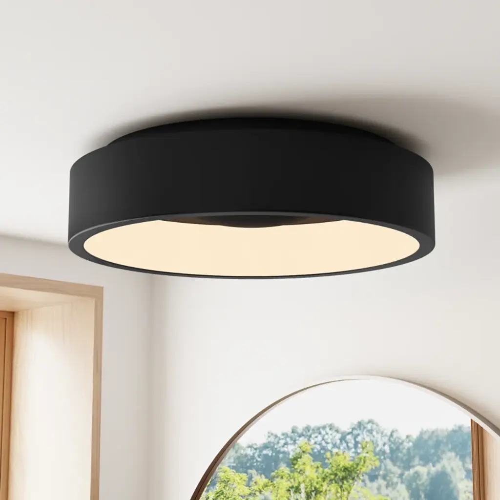 Minimal lighting. This simple cylindrical ceramic flush mount brightens a space without being distracting. Its low-profile footprint and neutral finish give it versatility + integrated LEDs mean that you never have to change a bulb. Install it with a dimmer switch to easily set the mood.