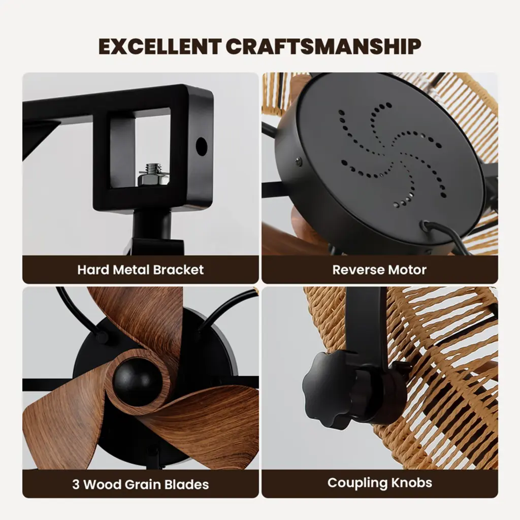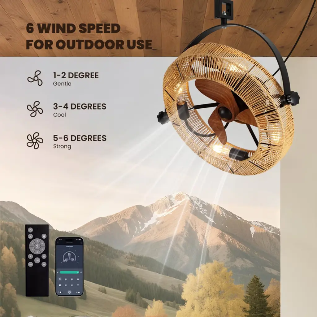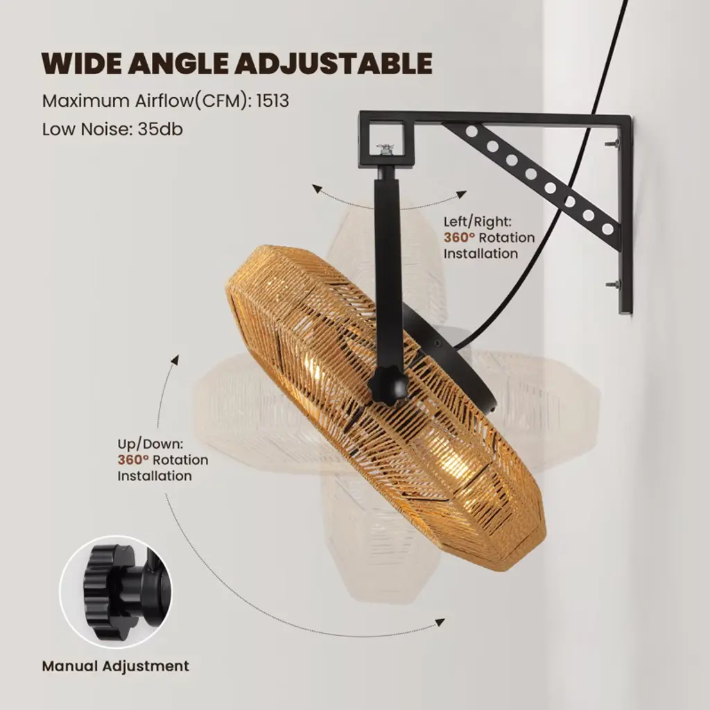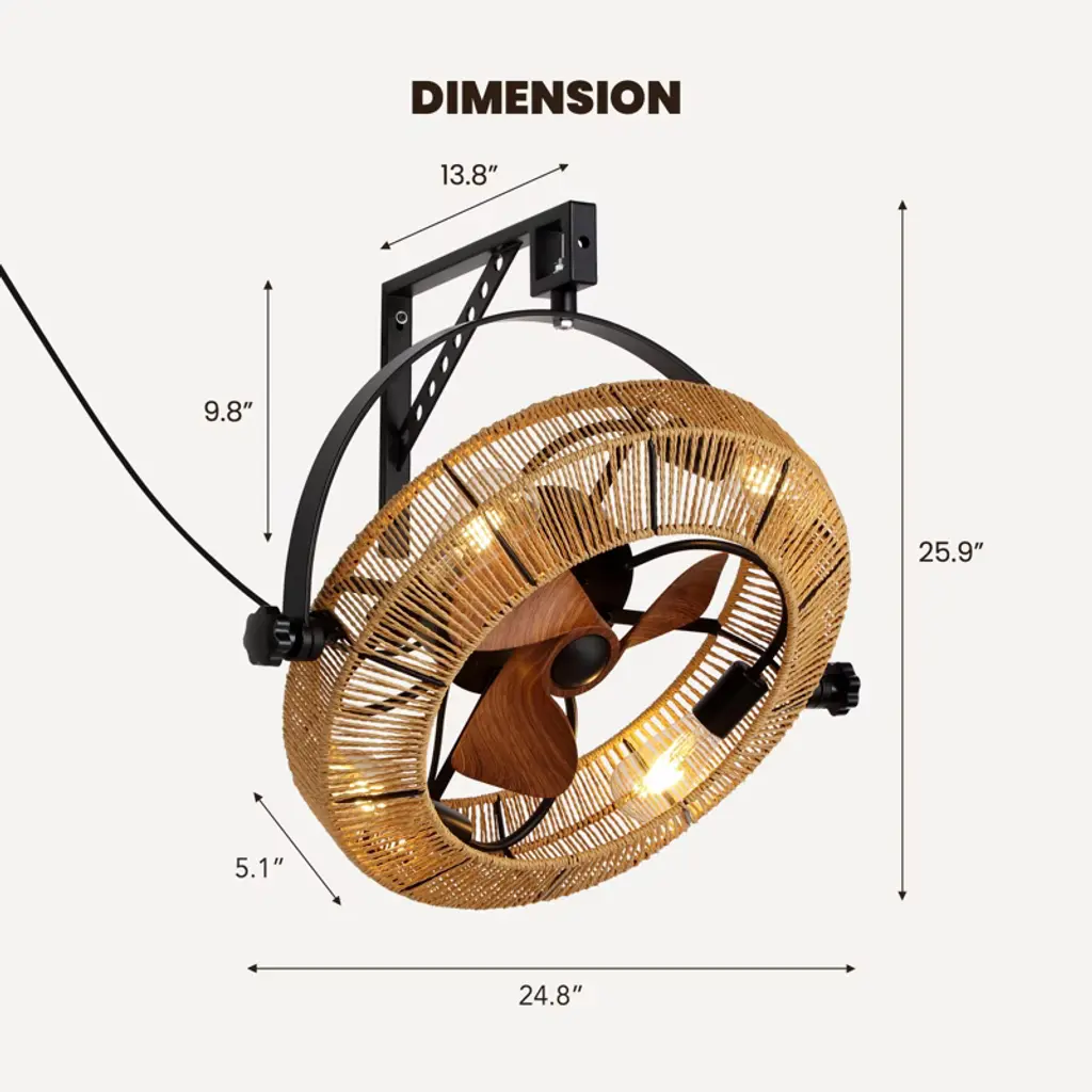 Add warmth and function to your home with our Woven Rope Fandelier—where vintage charm meets modern convenience! Crafted with unique hand-woven paper rope, it casts soft, glare-free ambient light, while the ultra-quiet reversible DC motor keeps spaces peaceful year-round. Adjust the 720° swivel head for targeted airflow, and control 6 fan speeds + a 1/2/4-hour timer easily via remote. It fits 4 E26 LED bulbs (not included) for customizable brightness, and comes with a detailed guide for quick flush-mount installation. Perfect for bedrooms, kitchens, dining rooms, or staircases—style and comfort in one!