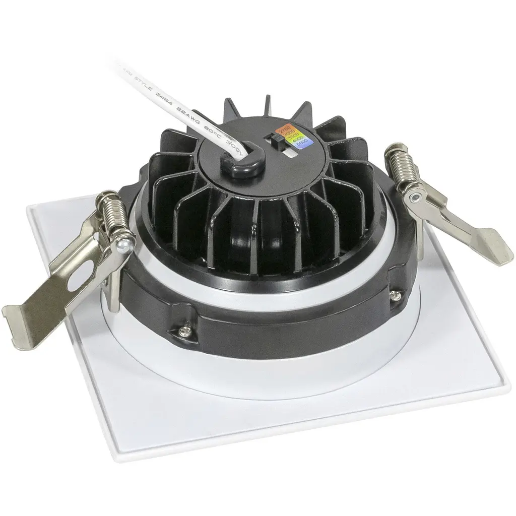 LED Regressed Gimbal Downlight series is designed for residential and commercial applications. With integrated adjustable Regressed Trim in Black and White finish options, includes the remote driver. With an ultra-shallow profile of merely 2 ?” deep coupled with IC rating, this Slim Downlight is perfect for tight spaces such as soffits, insulated and suspended ceilings as well as installations directly below ceiling joists. Fixture installs flush to the ceiling. Housing is not required for remodel applications. The mounting frame with hanger bars is optional for New Construction applications. The 5-level field selectable color temperature is available.