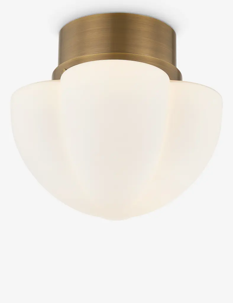 Soft lines and a botanical shape give the Lupino flush mount its signature charm. A scalloped glass shade diffuses light with a gentle glow, while burnished metalwork completes the look. This ceiling light is a thoughtful pick for entryways, landings, or cozy bedroom curations.