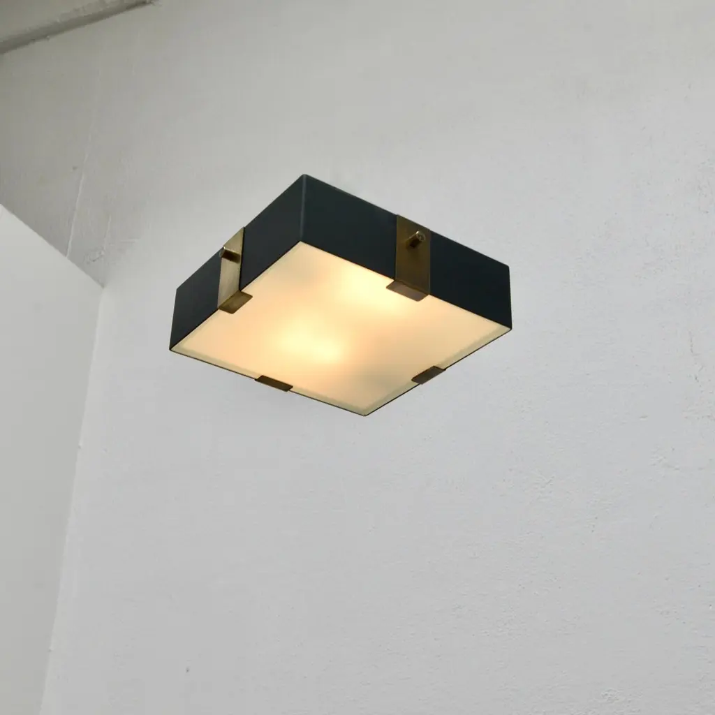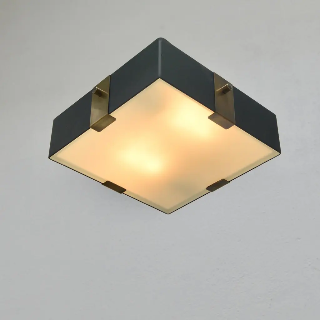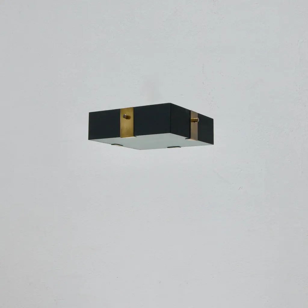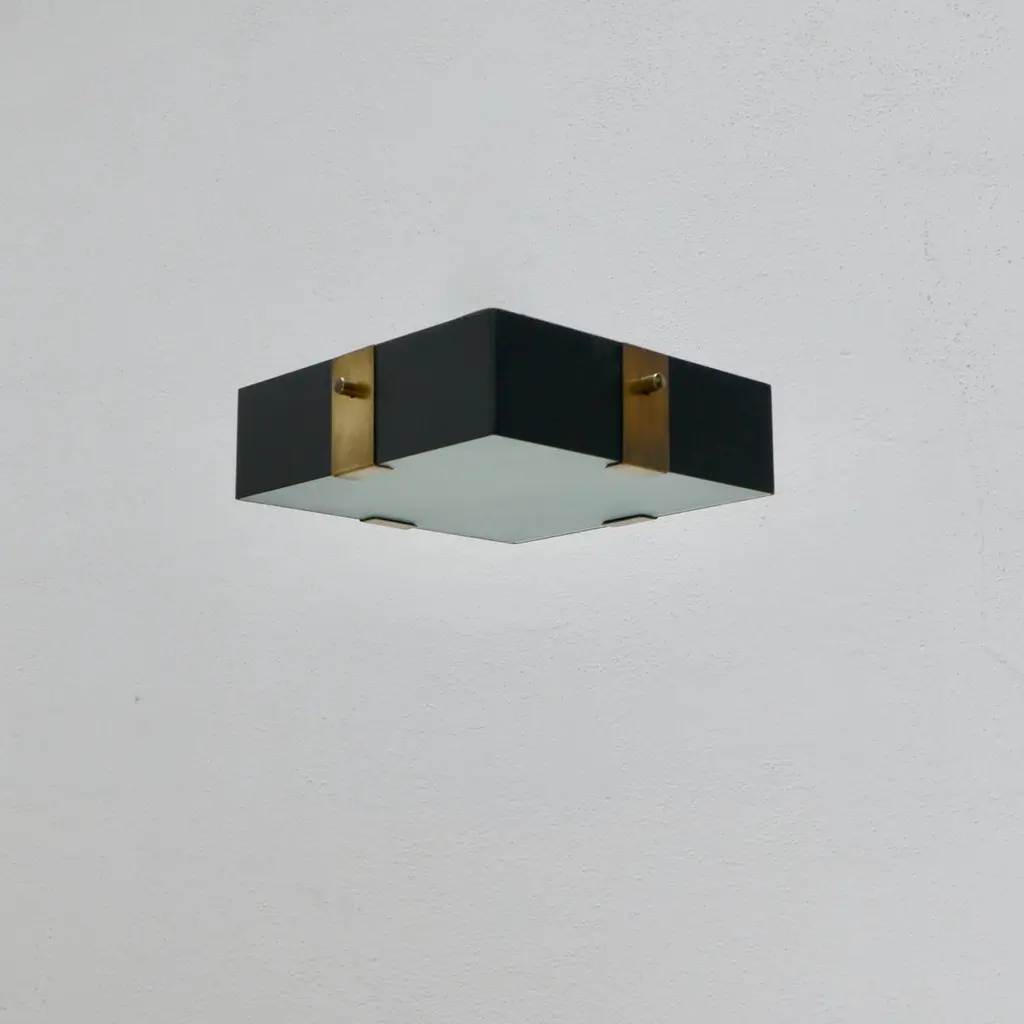 Part of Lumfardo Luminaries contemporary collection, the LUsquare SM FM is a small flush mount fixture in a Classic mid century modern design made to order. Crafted from steel, brass and glass, this fixture can be wired for any worldwide standard. Wired with 2 E26 medium based socket. Multiples available to order. Lightbulbs included with order. Lead times may vary from 4-14 weeks.Measurements:Length: 9.5” Height: 2.75”Width: 9.5”.