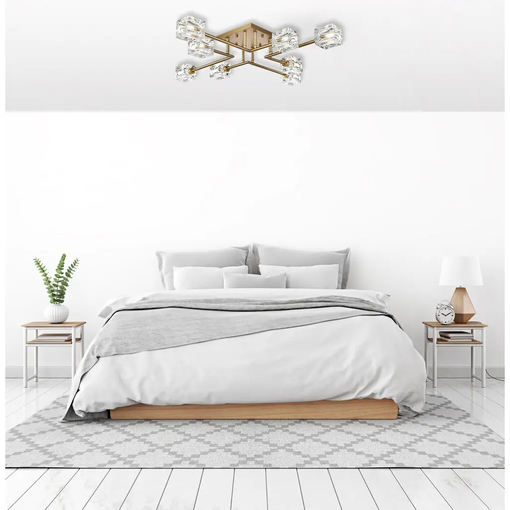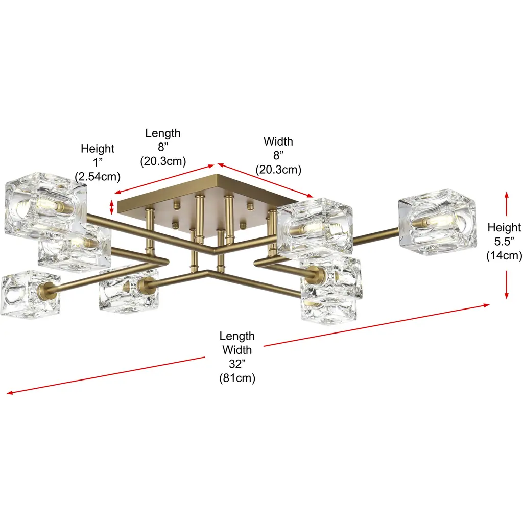 Effortlessly elegant, our Lyra 32-inch flush mount redefines your space, projecting eight lights each adorned with distinctive dimpled square glass for a dynamic touch. Crafted with durability in mind, the iron base adds a hint of industrial elegance. Its flush design hugs the ceiling, combining style with space-saving practicality. Enjoy easy assembly and a 360-degree beam spread, casting warm and inviting light throughout your space. Illuminate with Lyra's timeless radiance.