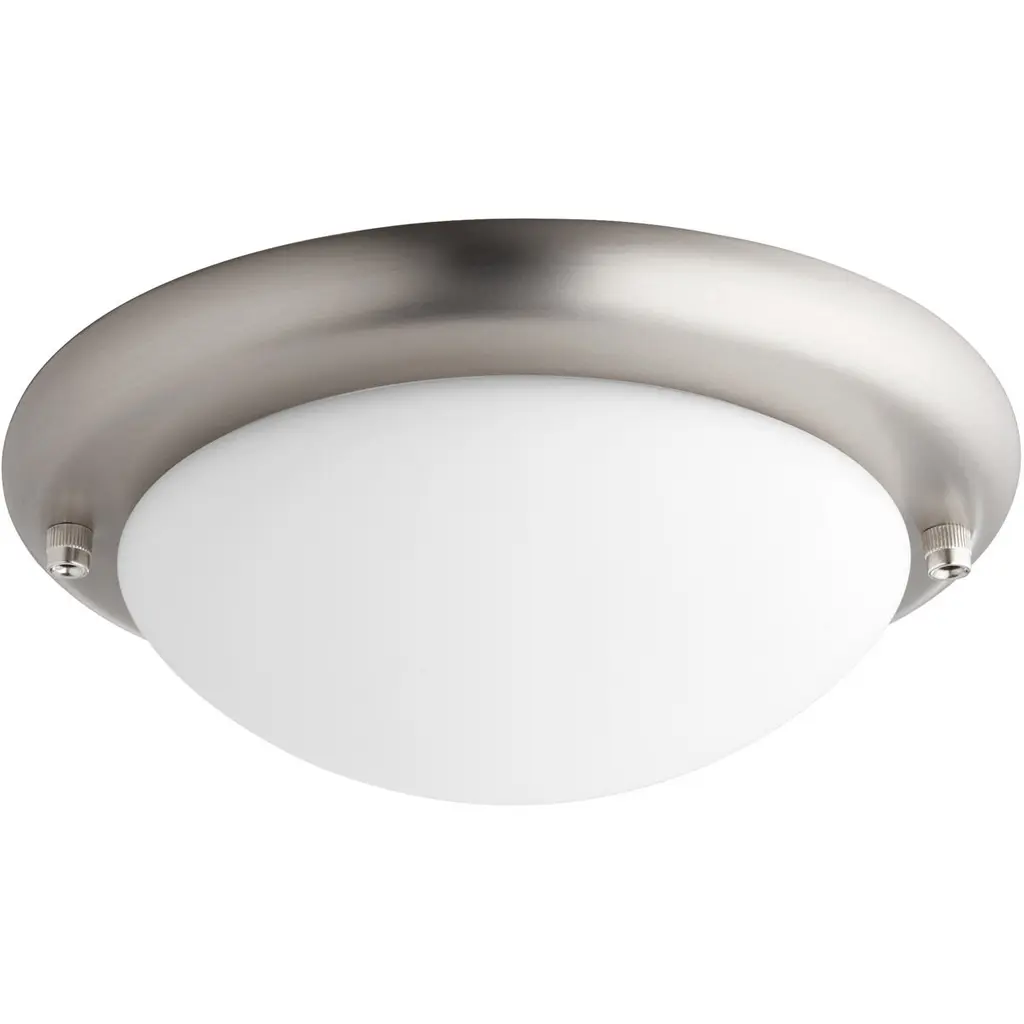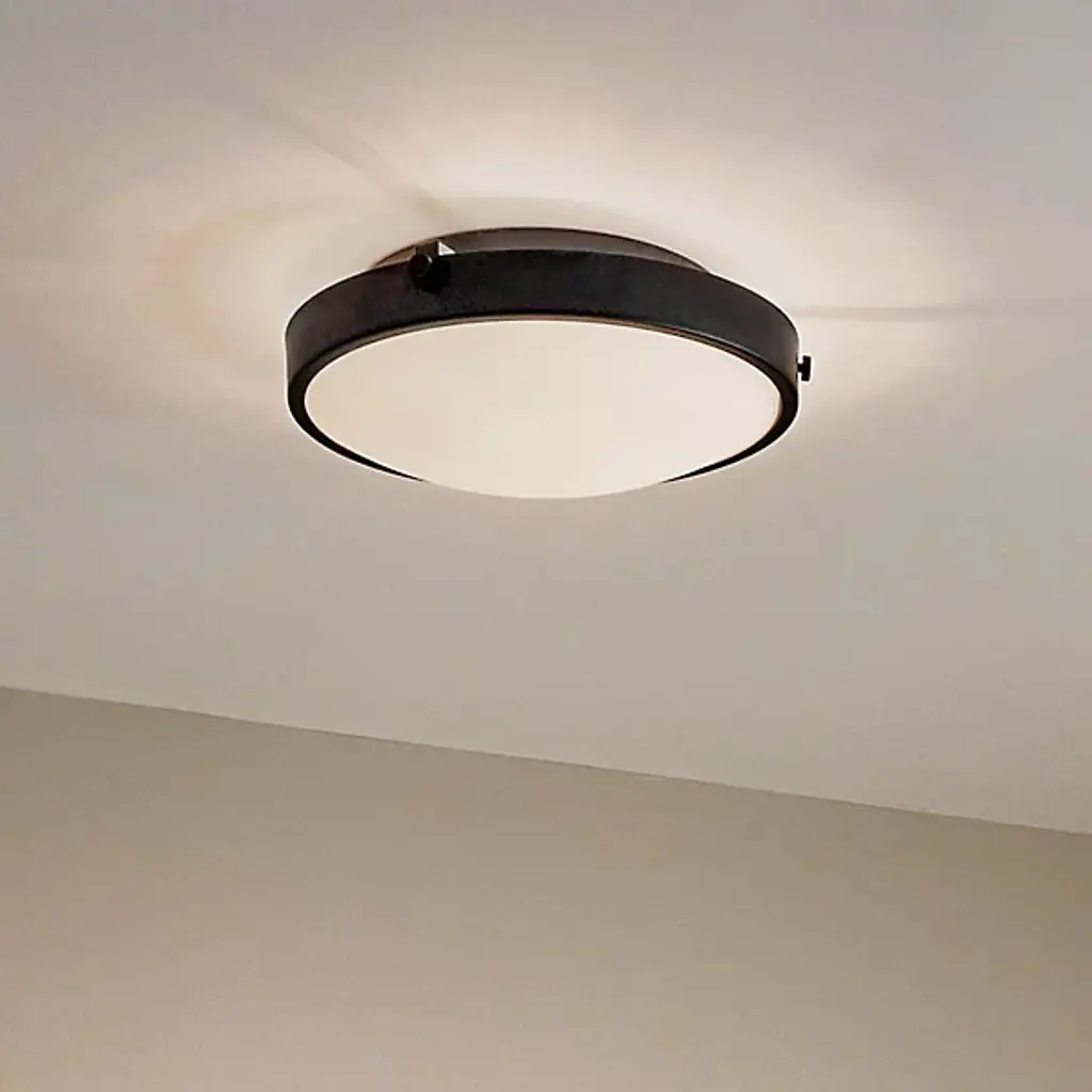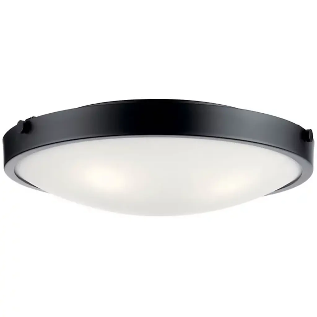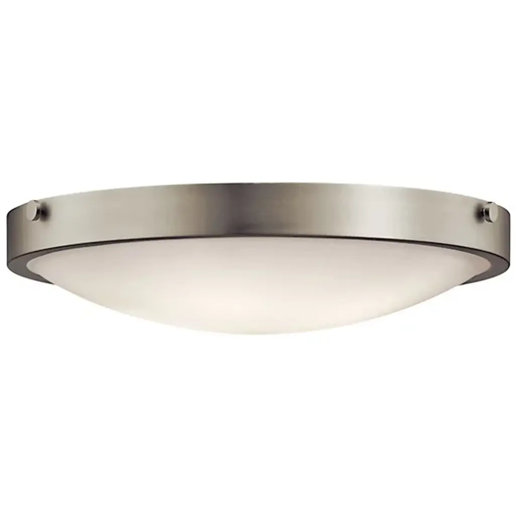 Versatile and functional, the Kichler Lytham Flushmount features a glass shade accented with steel banding and exposed hardware. Practical and streamlined, the illumination diffuses through the opaque glass shade to create a lit ambient atmosphere. Great for lighting a hallway or utility space without distracting from the existing decor.