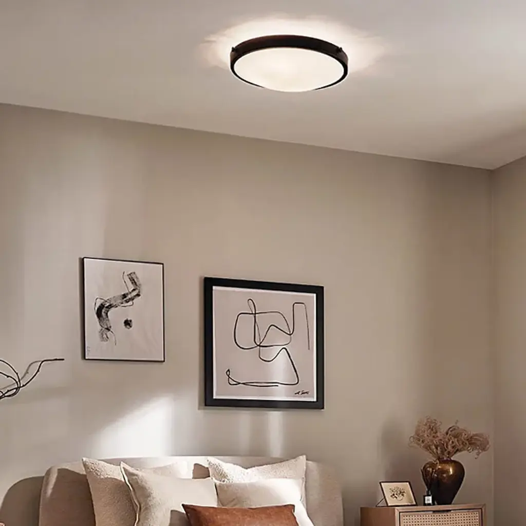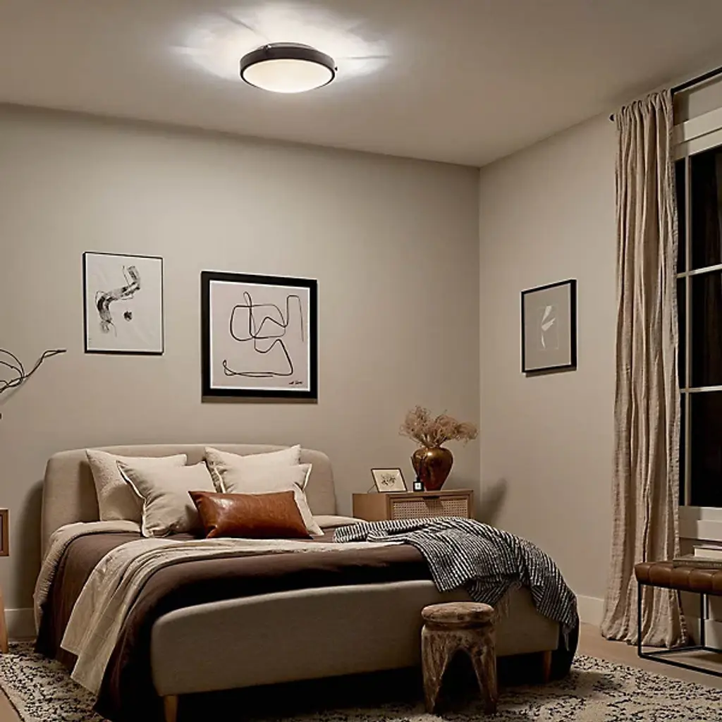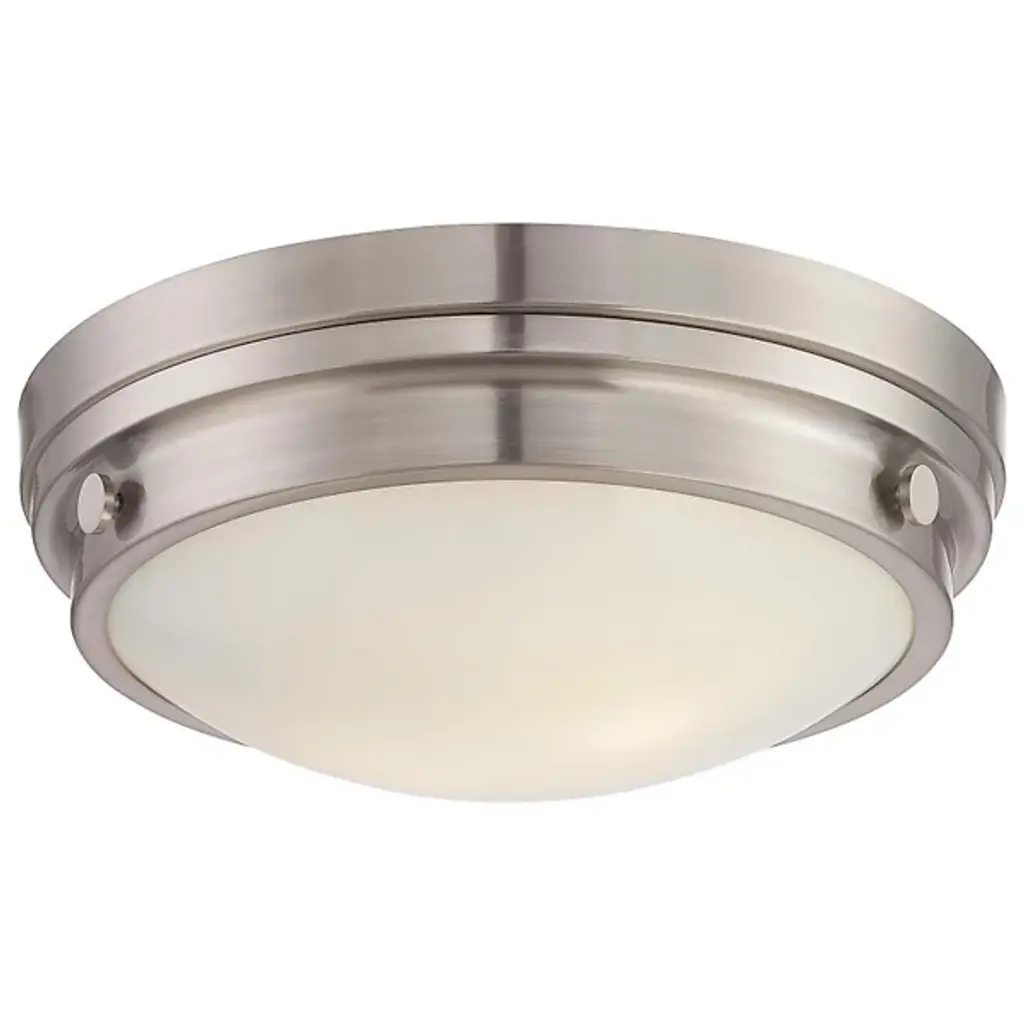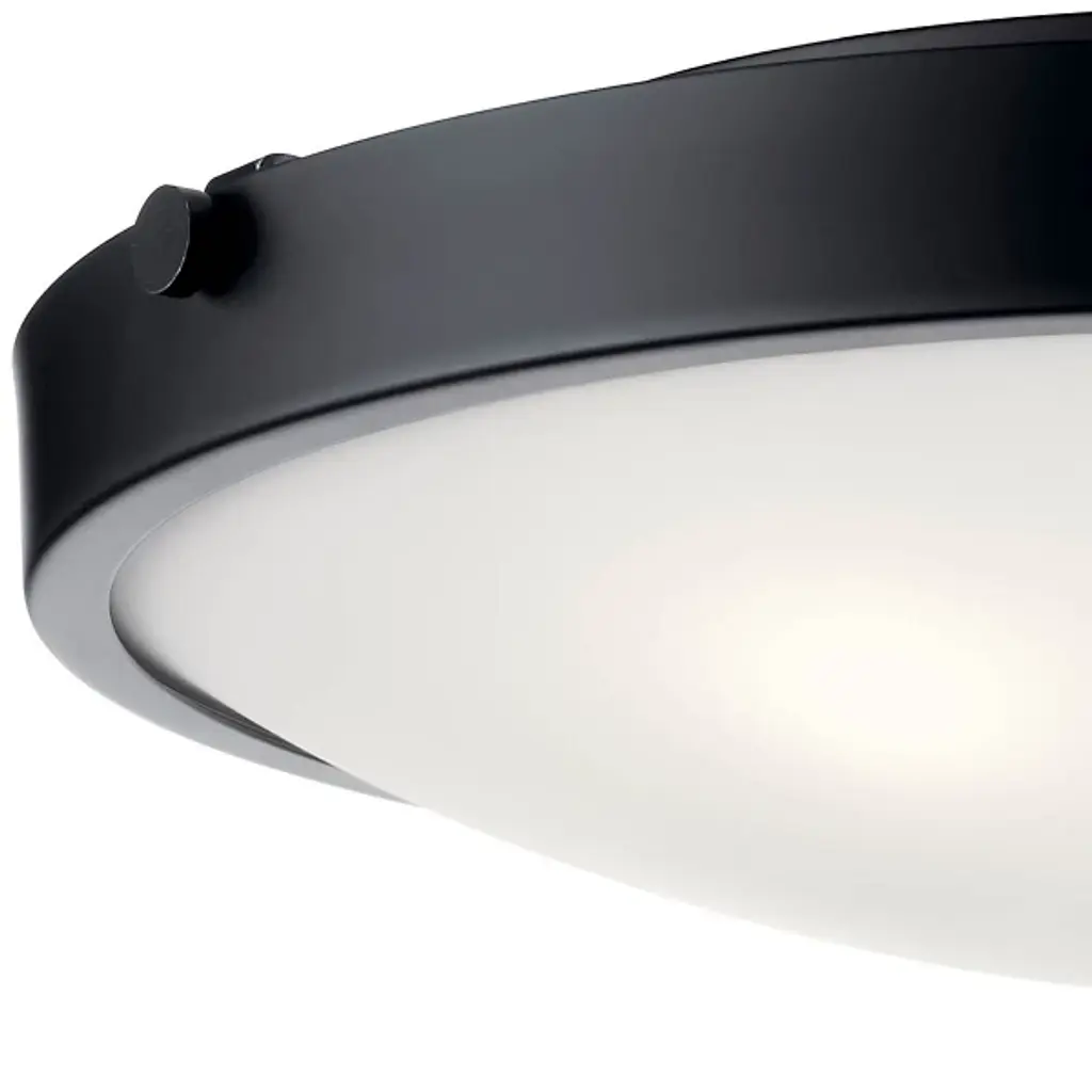 Versatile and functional, the Kichler Lytham Flushmount features a glass shade accented with steel banding and exposed hardware. Practical and streamlined, the illumination diffuses through the opaque glass shade to create a lit ambient atmosphere. Great for lighting a hallway or utility space without distracting from the existing decor.