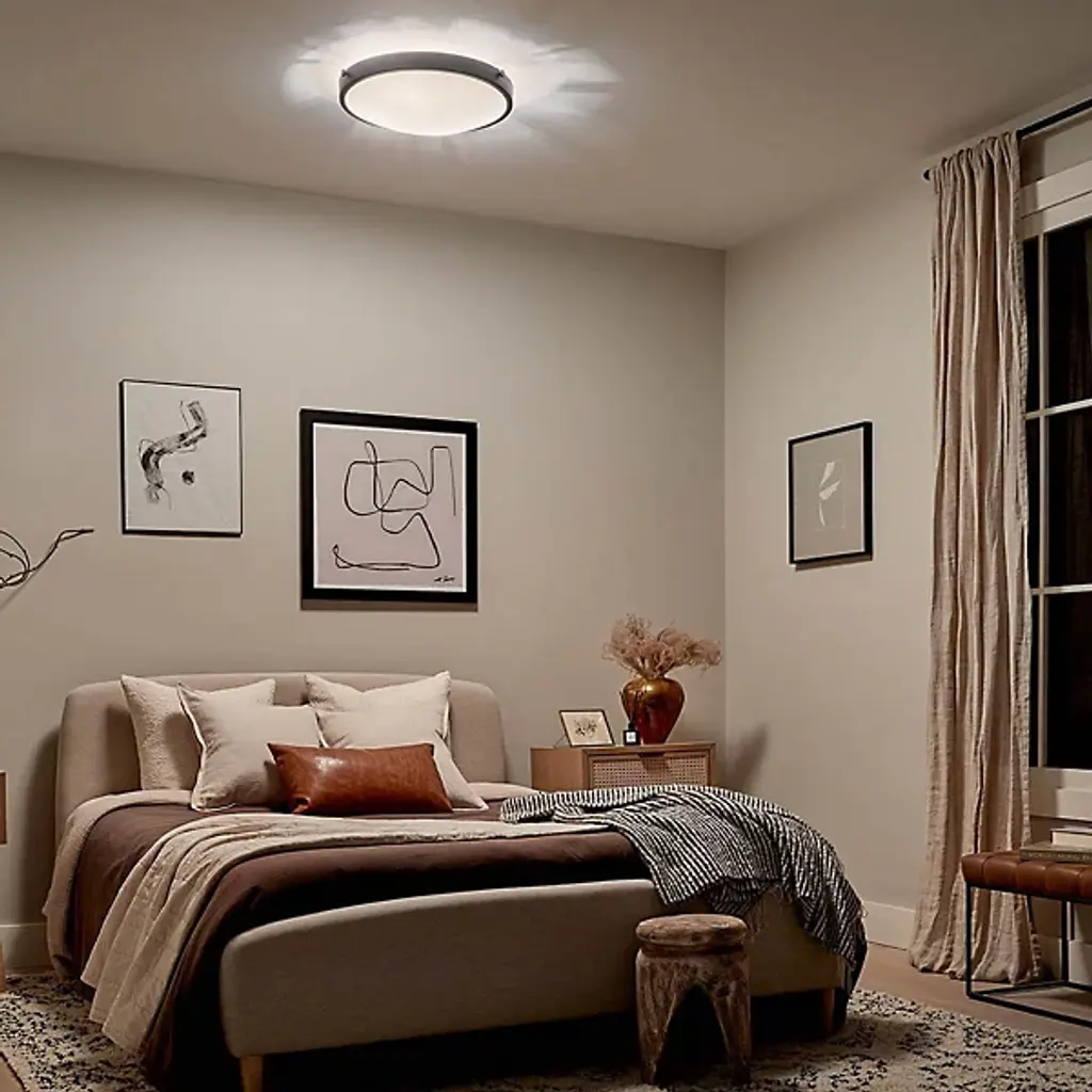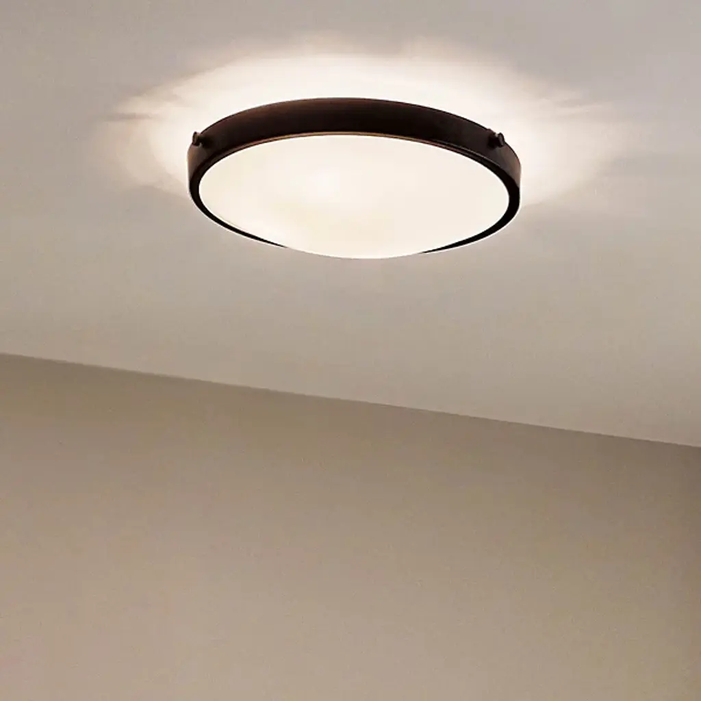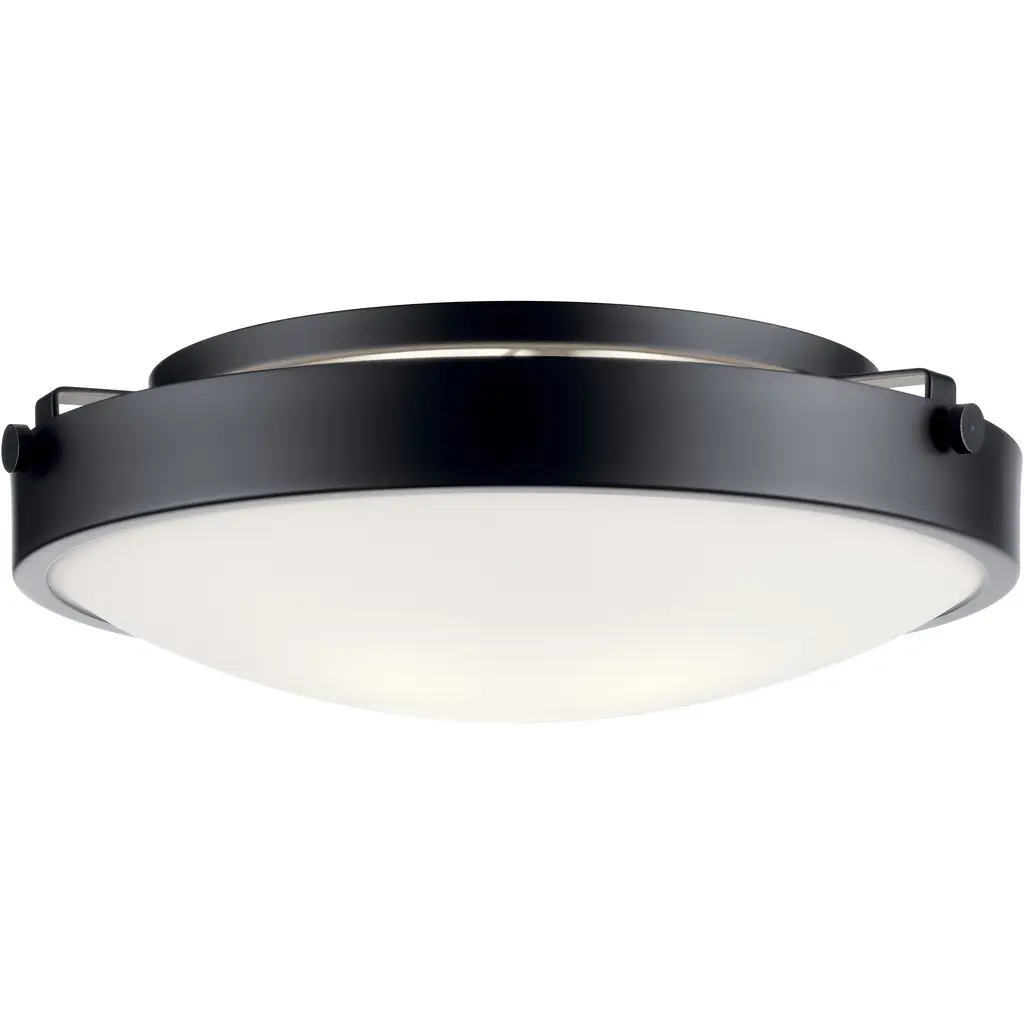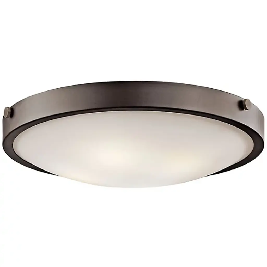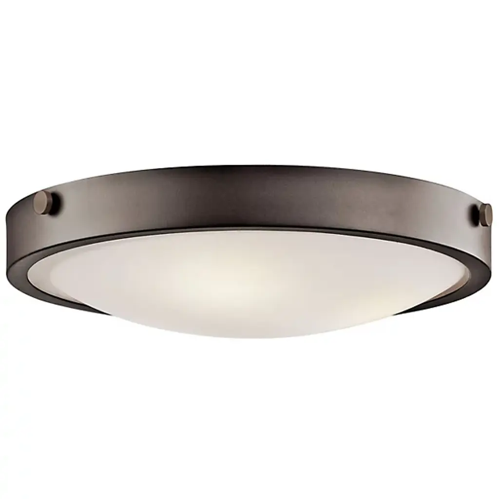 Versatile and functional, the Kichler Lytham Flushmount features a glass shade accented with steel banding and exposed hardware. Practical and streamlined, the illumination diffuses through the opaque glass shade to create a lit ambient atmosphere. Great for lighting a hallway or utility space without distracting from the existing decor.